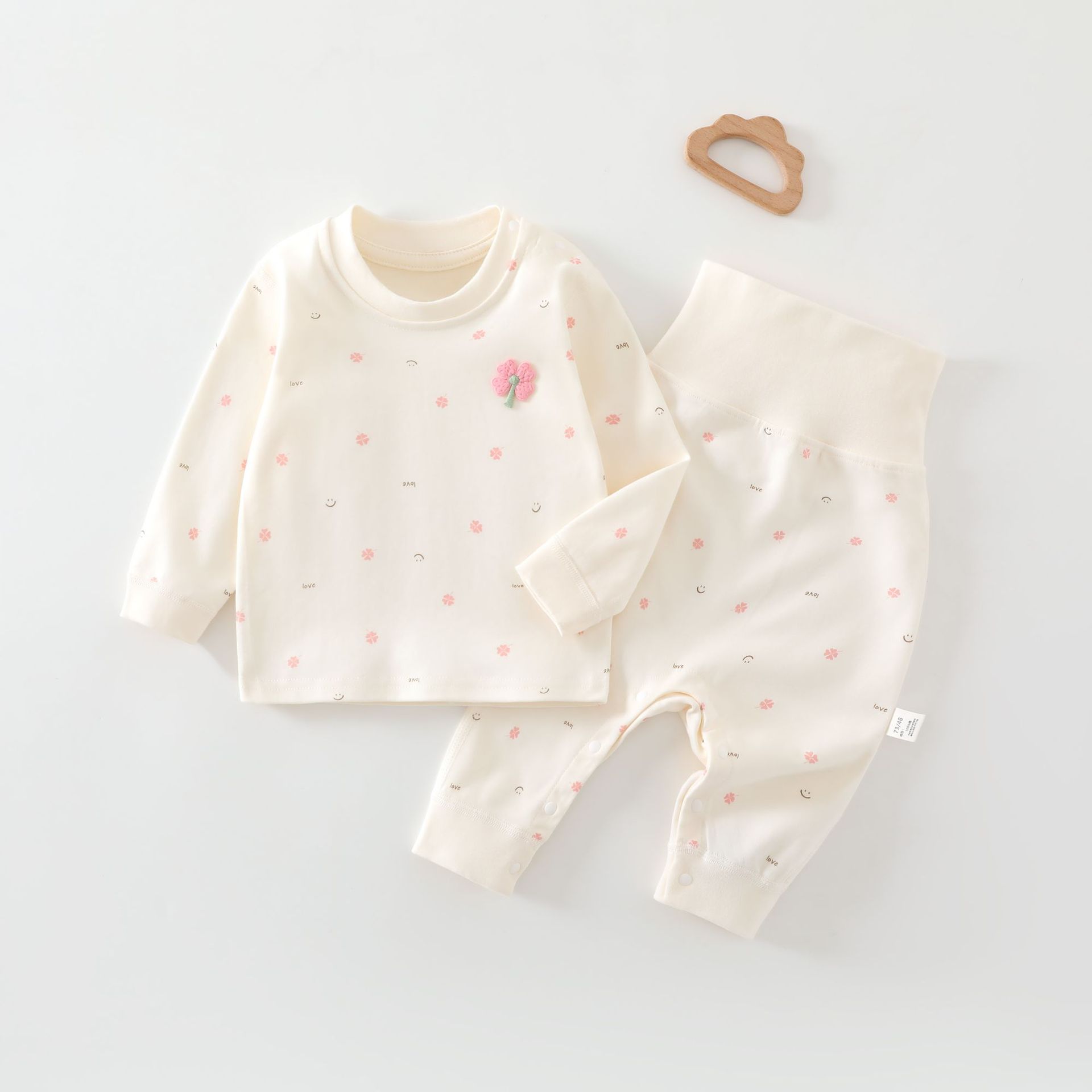 아기 보온 속옷 세트, 가을 옷과 긴 바지, 순면 유아용 하이웨이스트 배 보호복, 아동용 스플릿 베이스 레이어, 봄, 가을