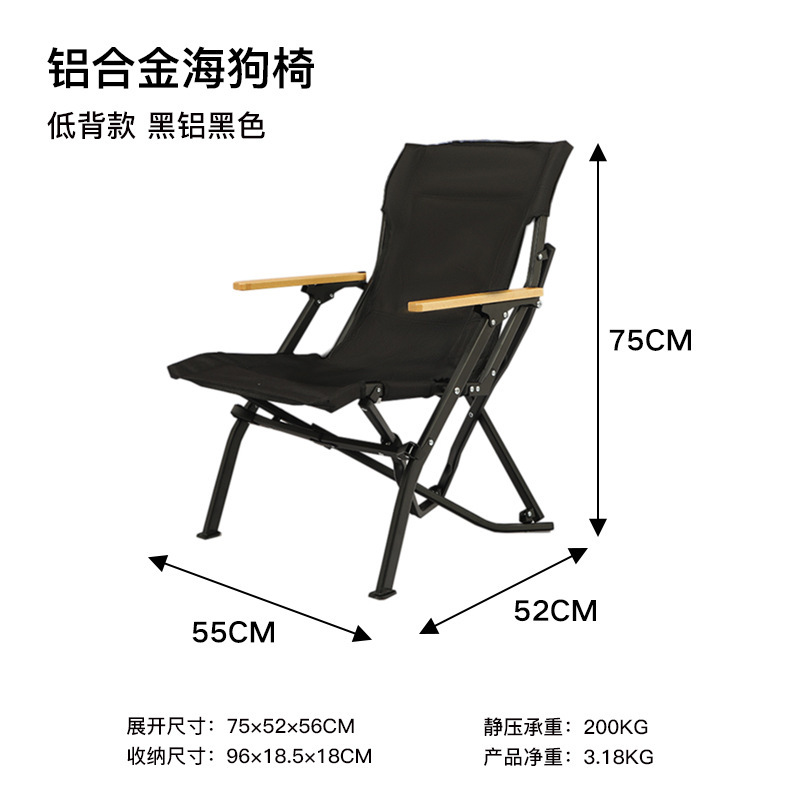 • [넓어진 좌석 표면 - 찢어짐 방지 패브릭] (블랙 알루미늄) 블랙 천 로우백 바다개 의자