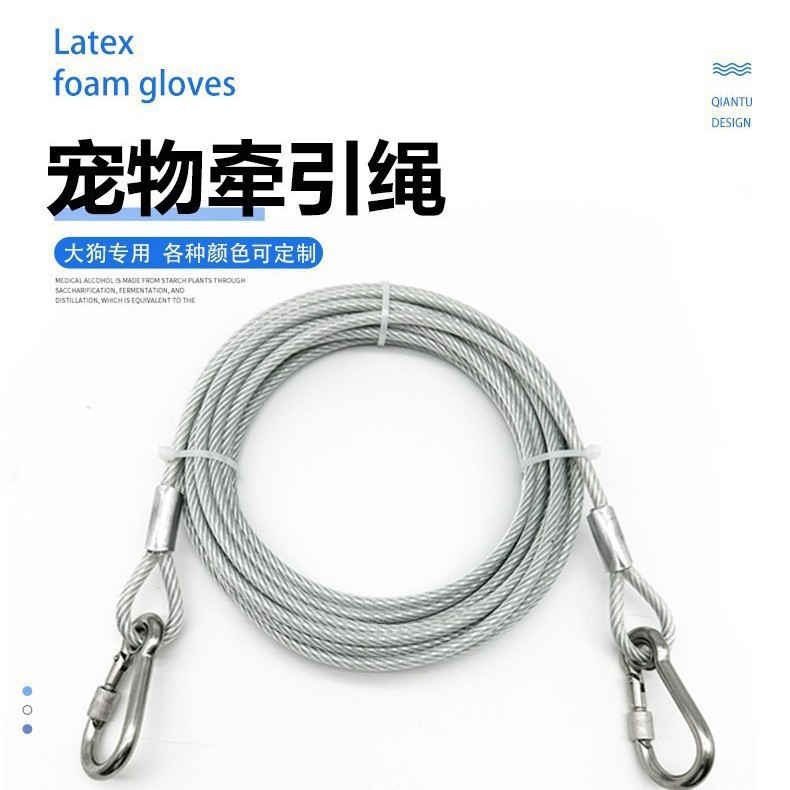 아연 도금 고무 코팅 강철 와이어 로프 개 목줄 애완 동물 견인 로프 개 로프 대형 및 중형 개 물림 방지 두꺼운 강한 볼트 개 목줄
