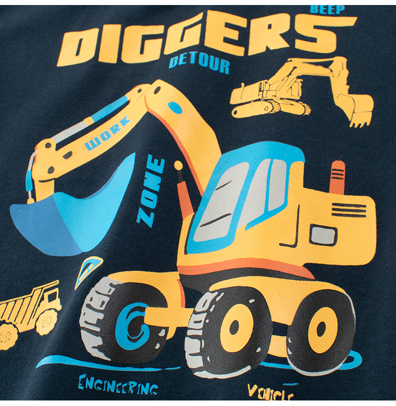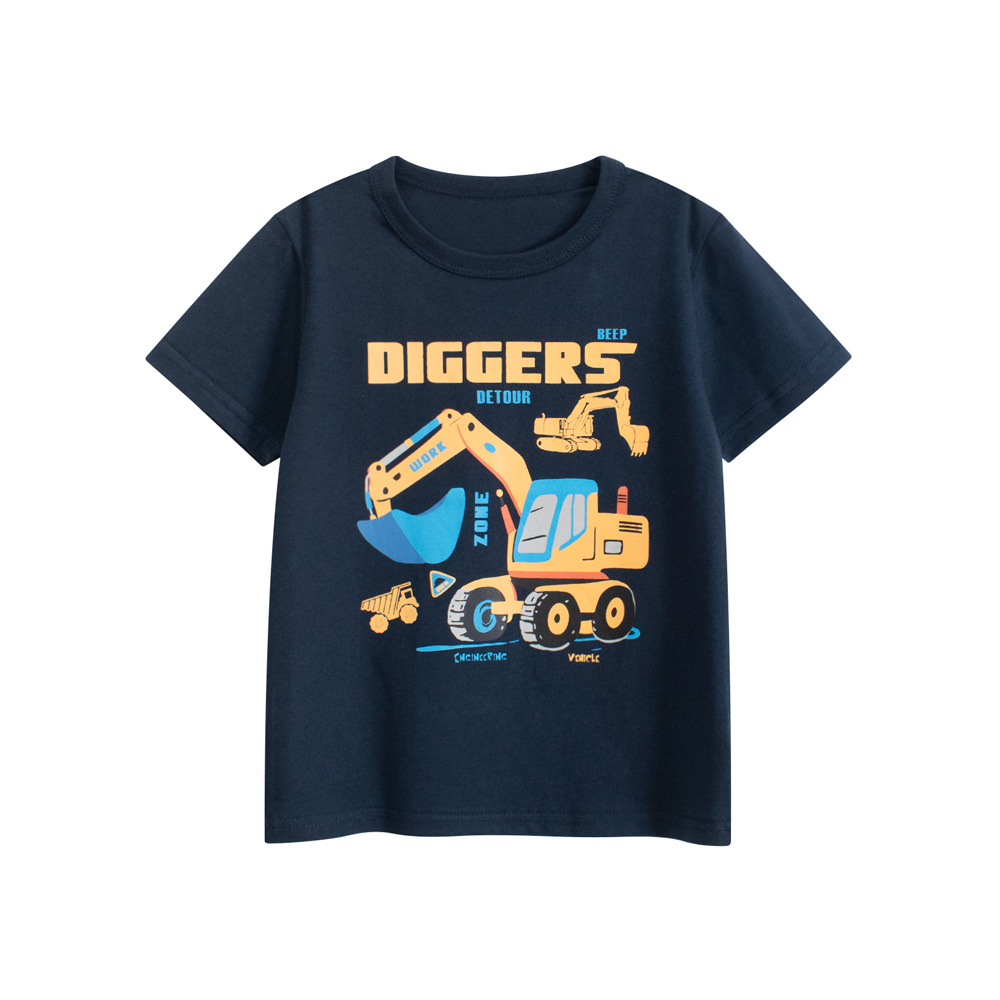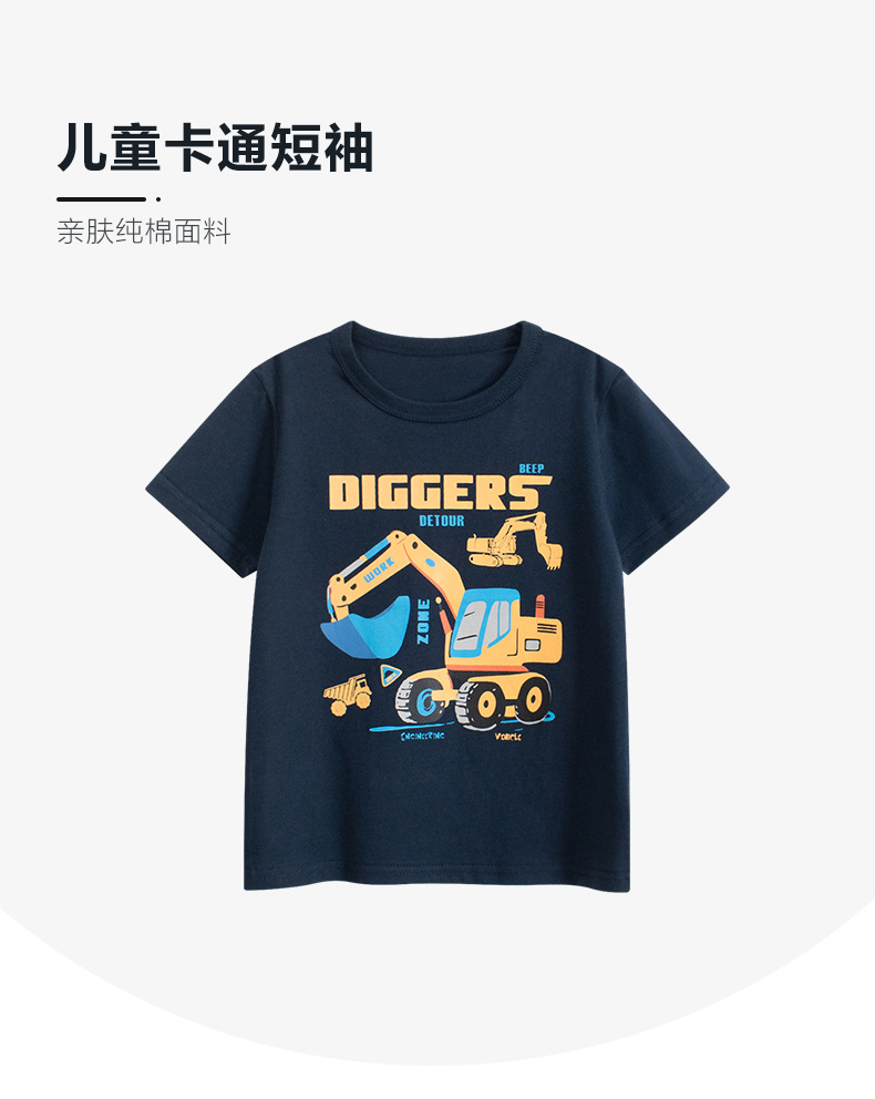 27kids 한국 아동복 트렌디 브랜드 아동 엔지니어링 차량 반팔 티셔츠 2025 여름 새 아기 소년 옷스토어 가기