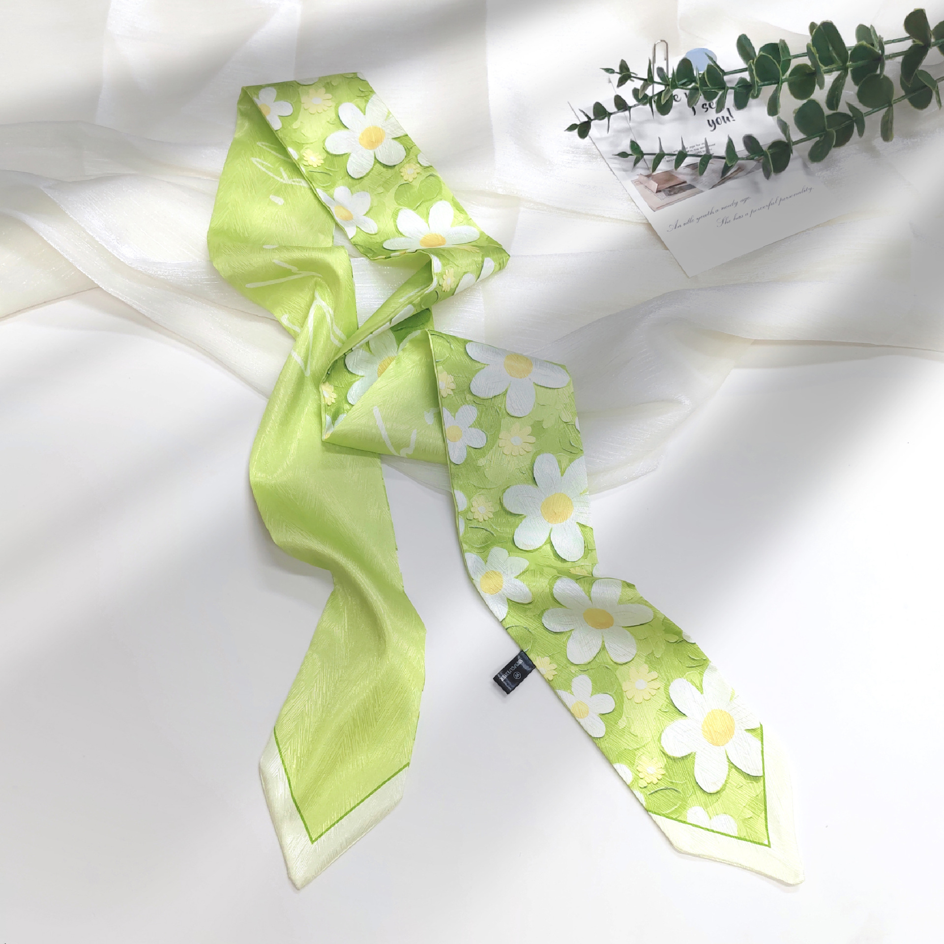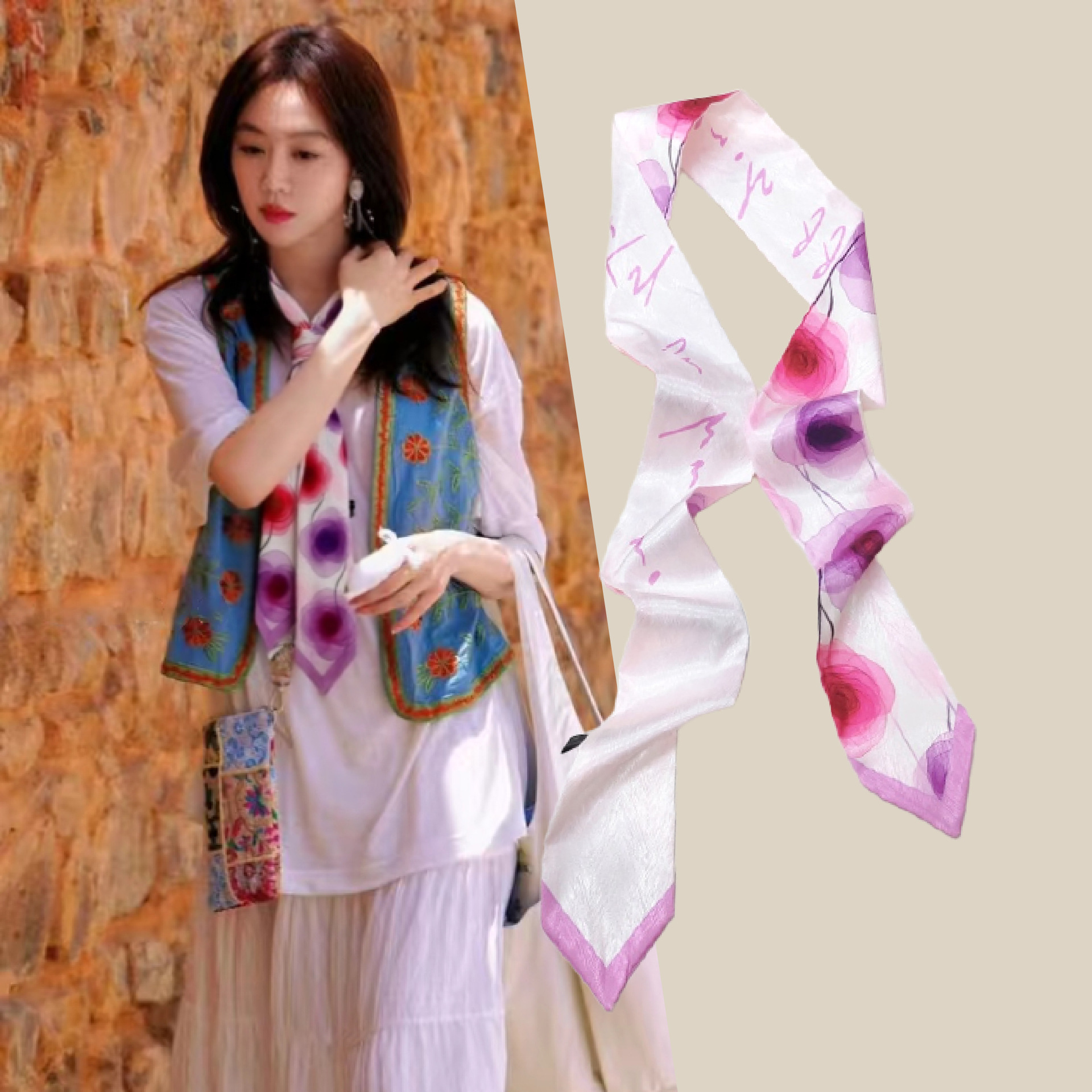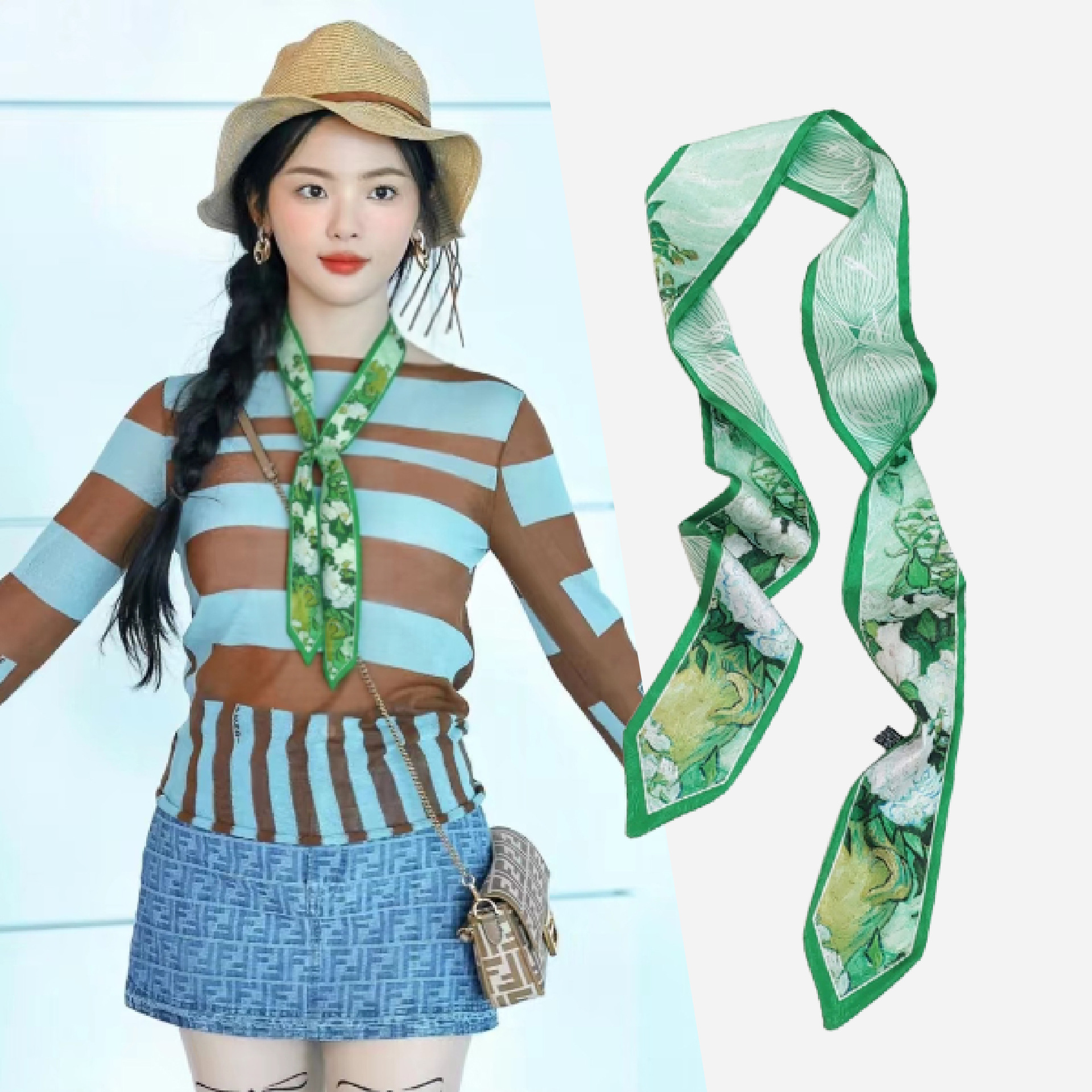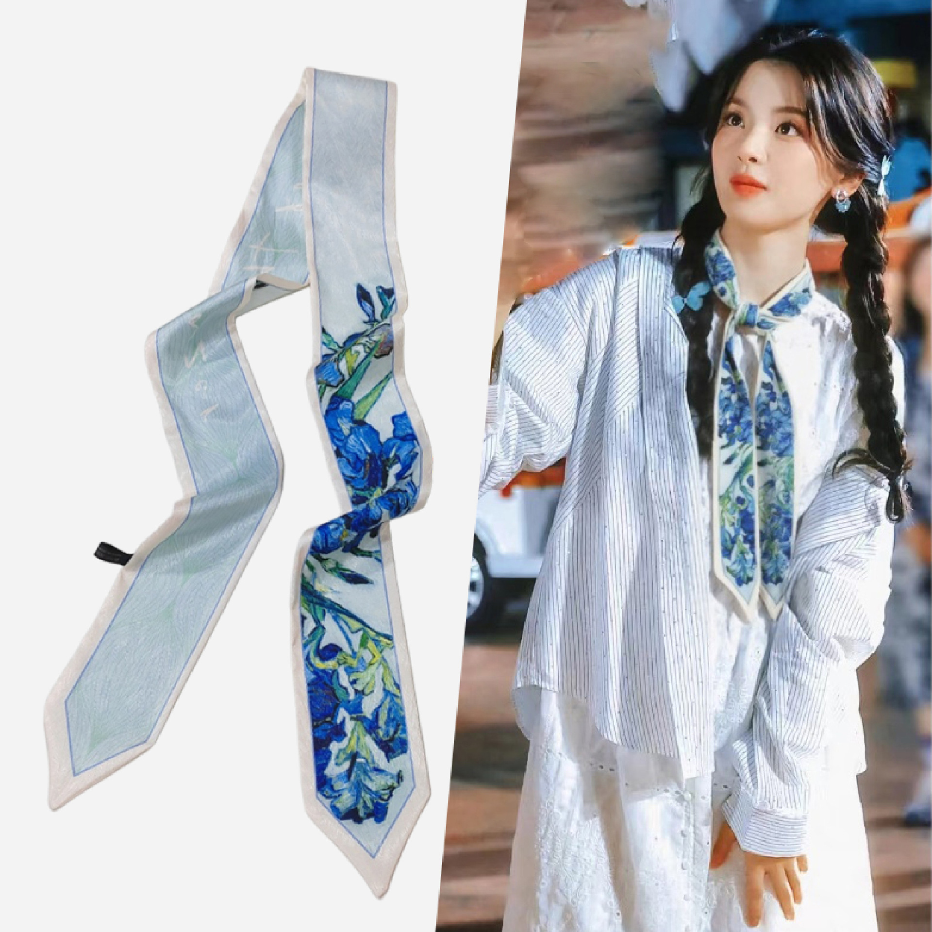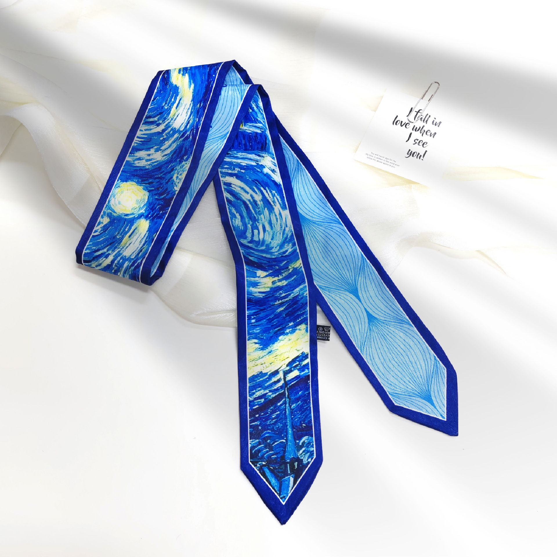반 고흐의 흰색 아이리스 유화 실크 스카프 여성용 패턴 다용도 긴 머리끈과 가방 리본 뾰족한 작은 스카프