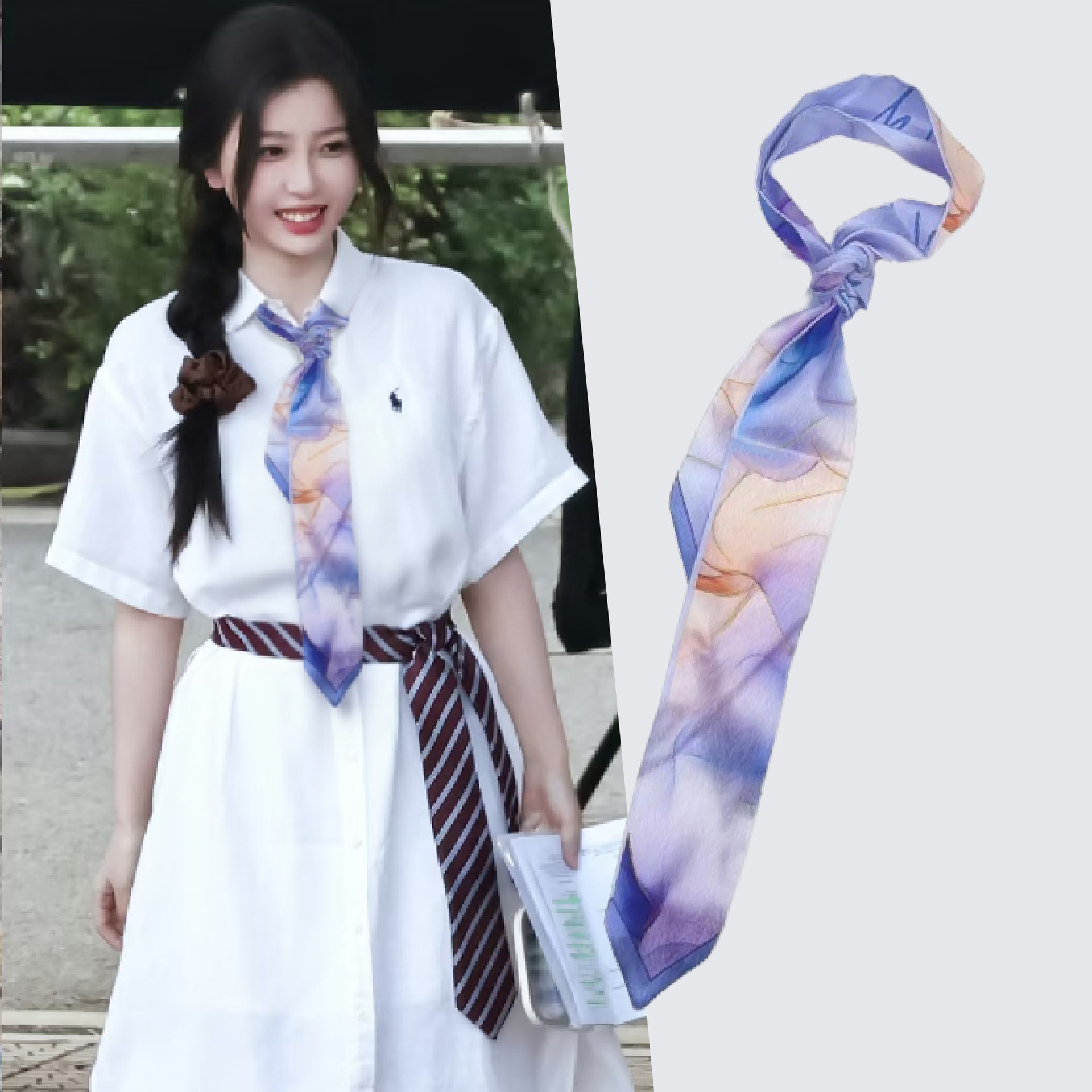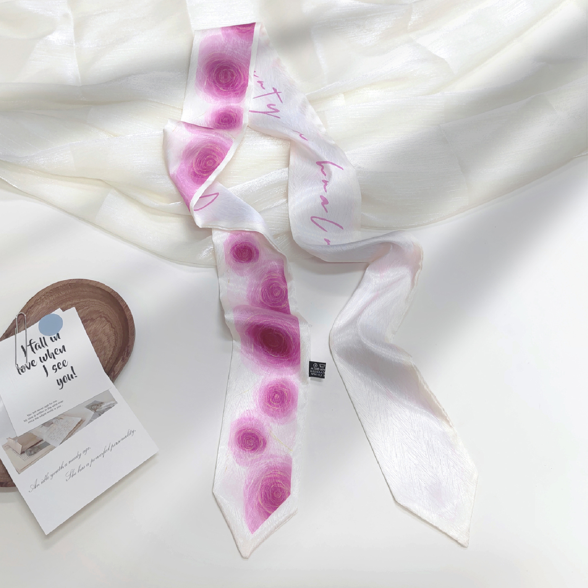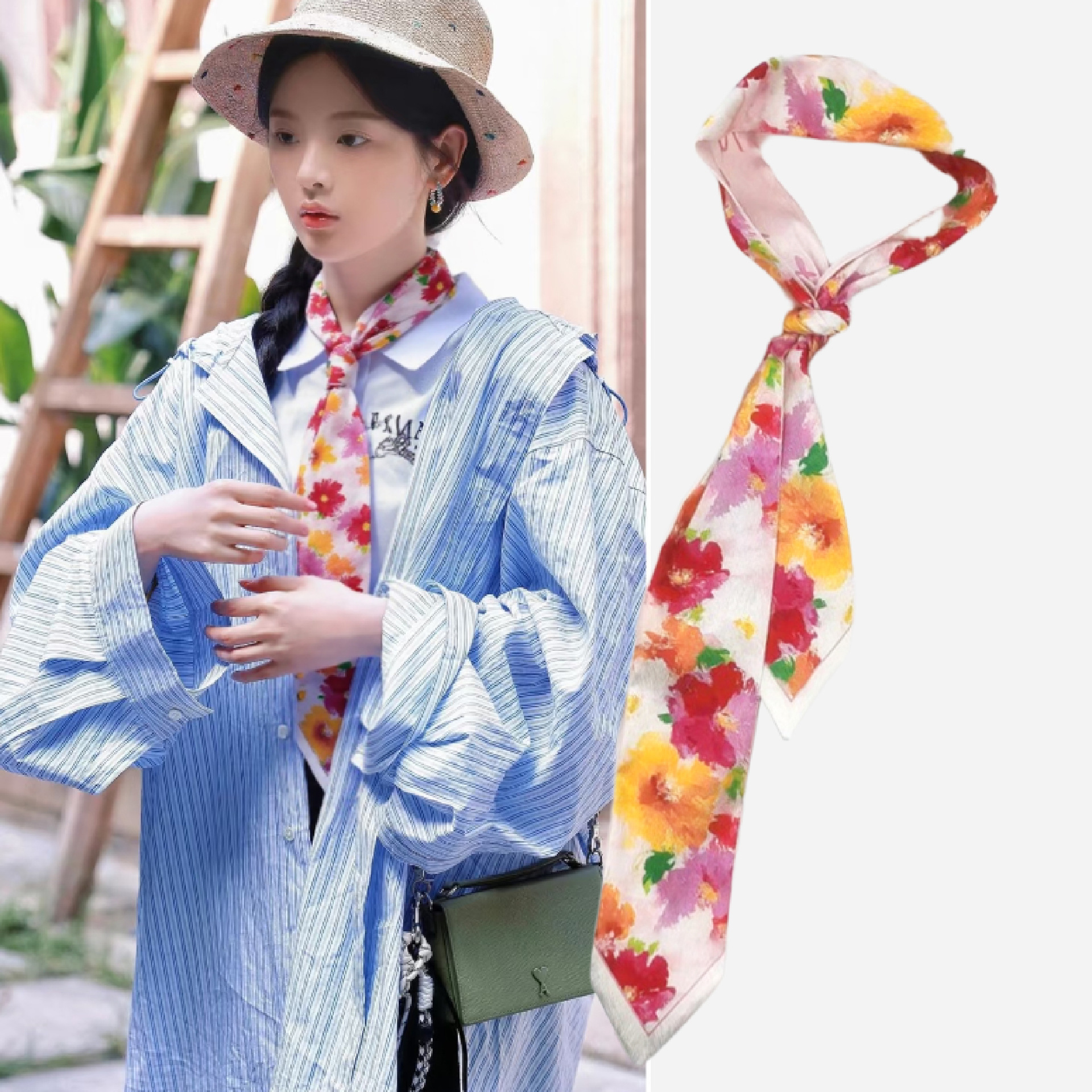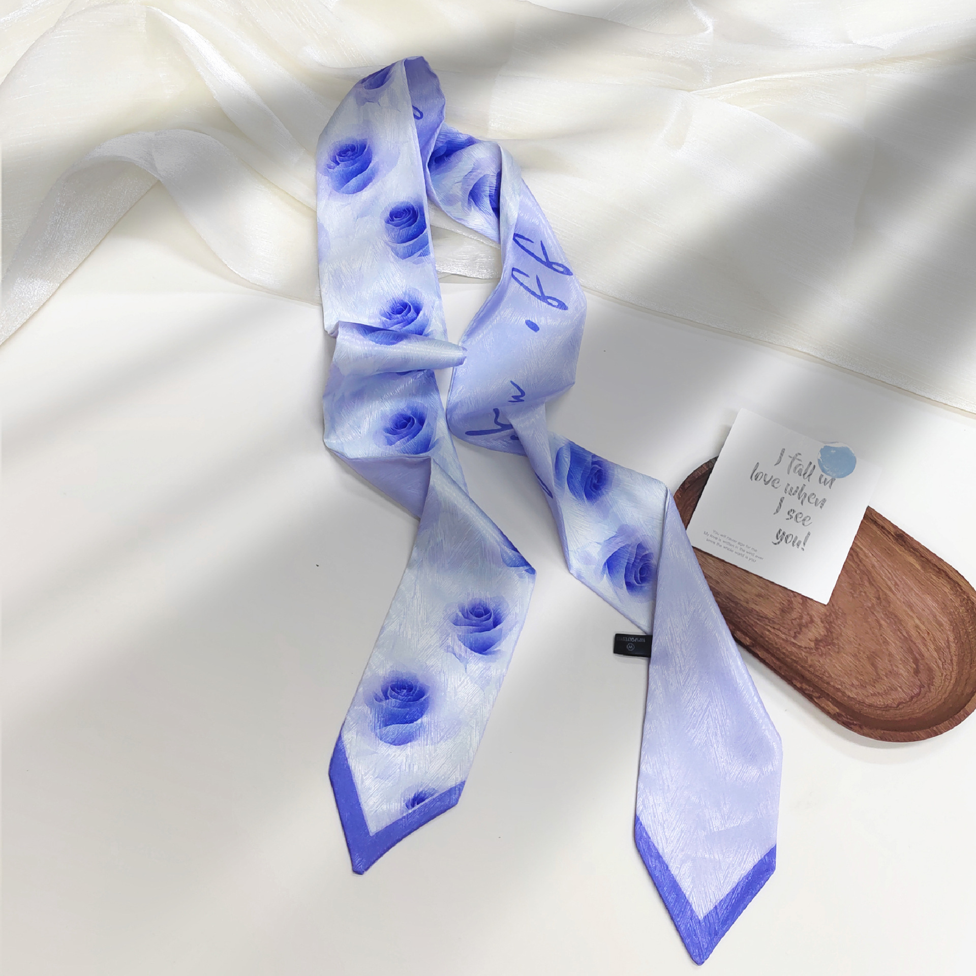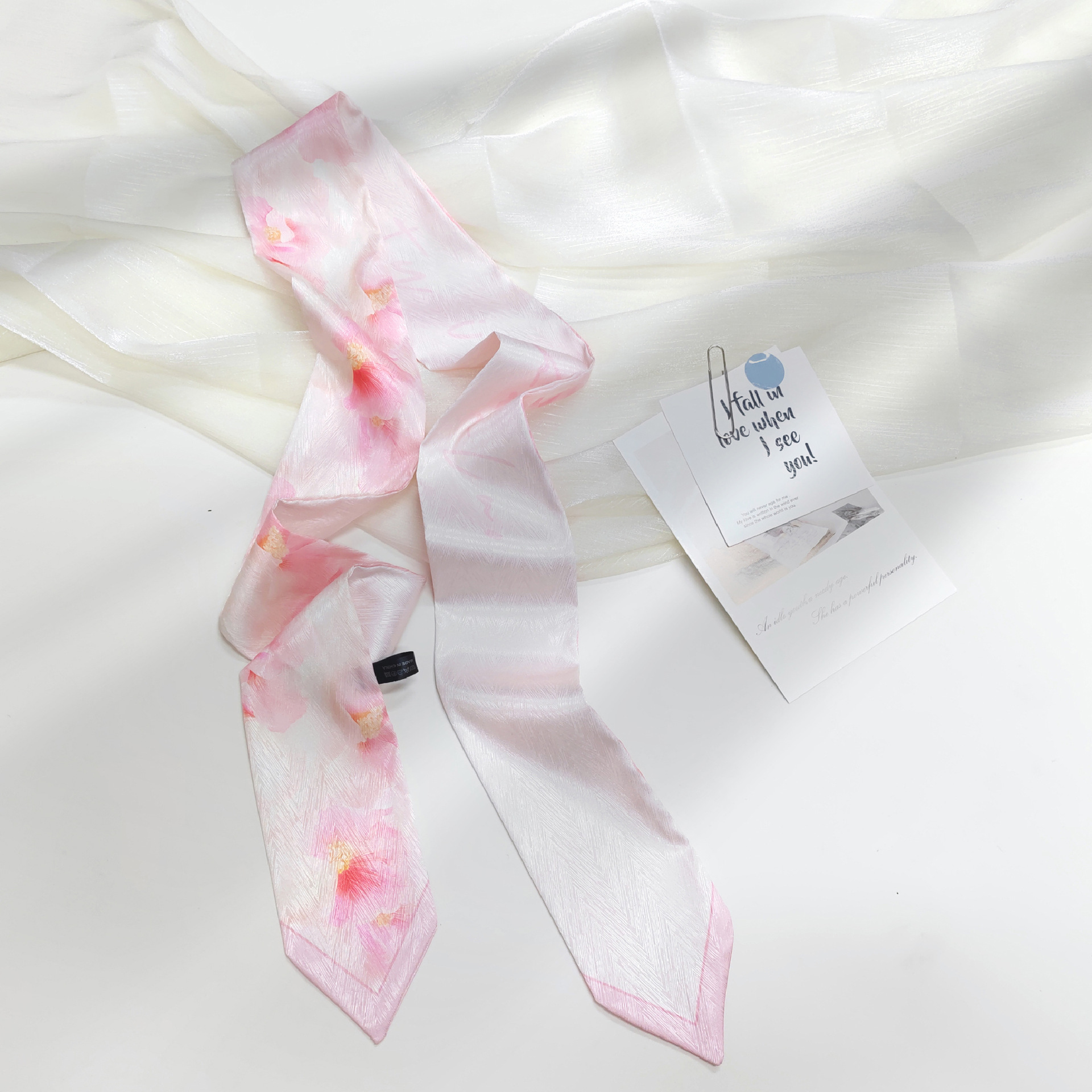 반 고흐의 흰색 아이리스 유화 실크 스카프 여성용 패턴 다용도 긴 머리끈과 가방 리본 뾰족한 작은 스카프
