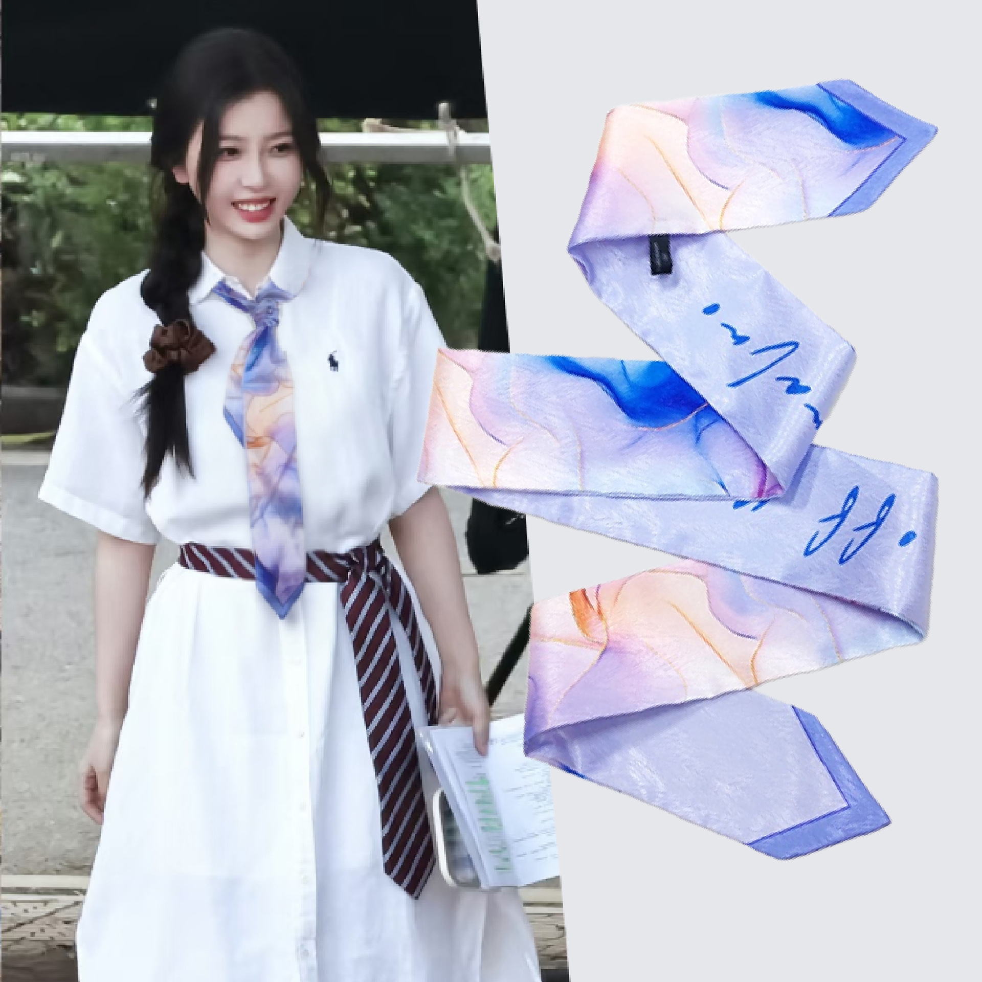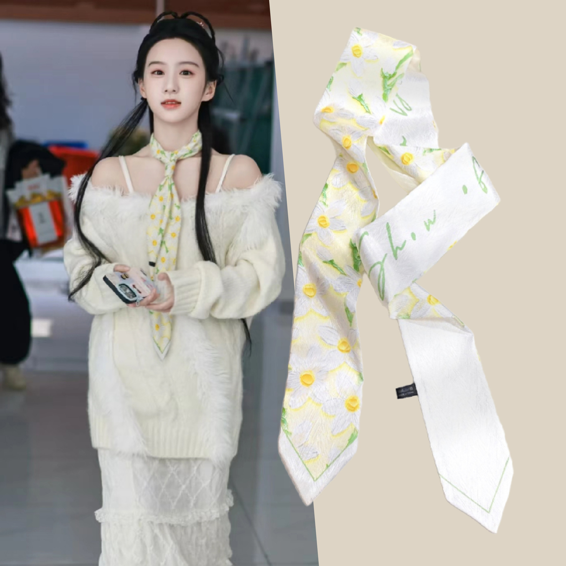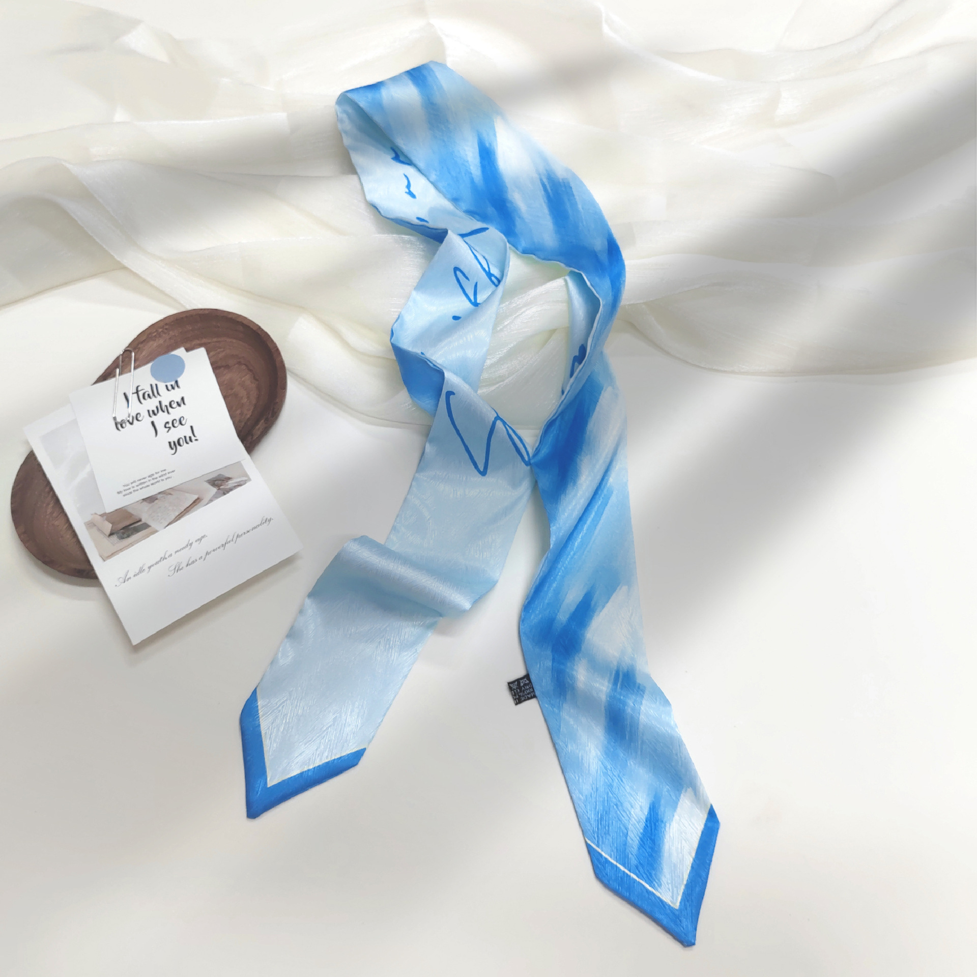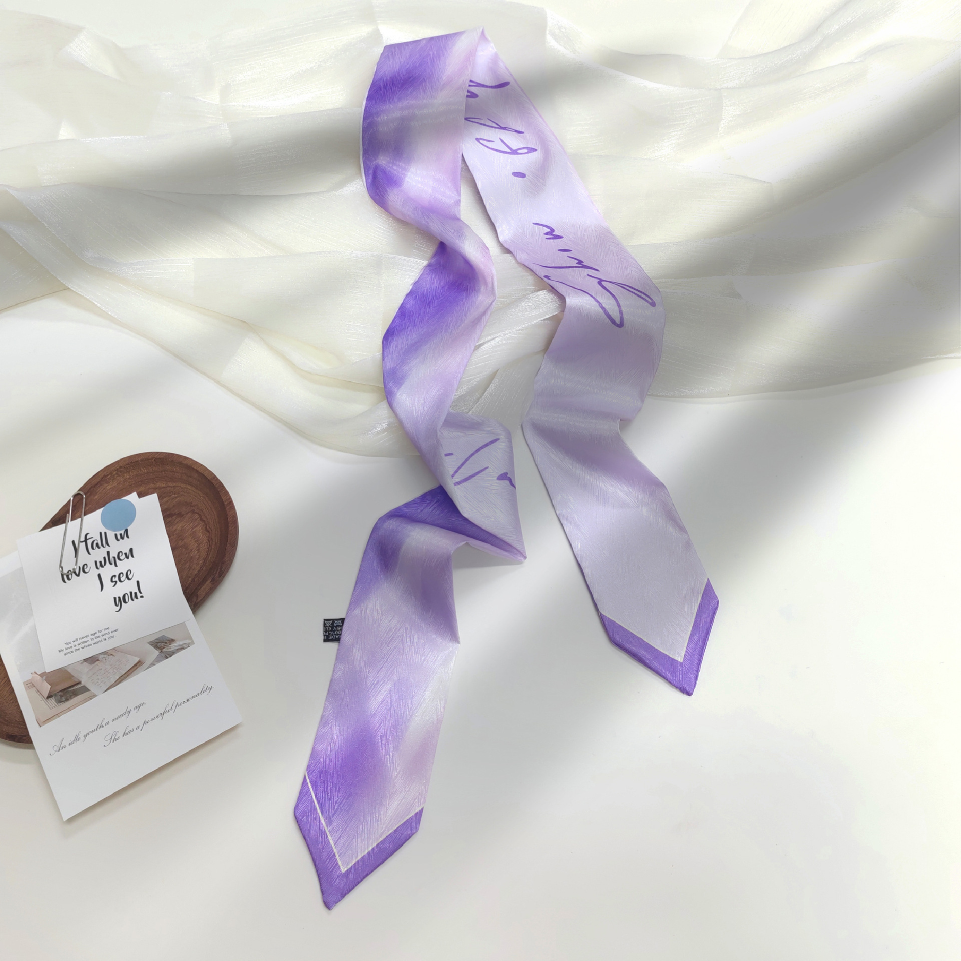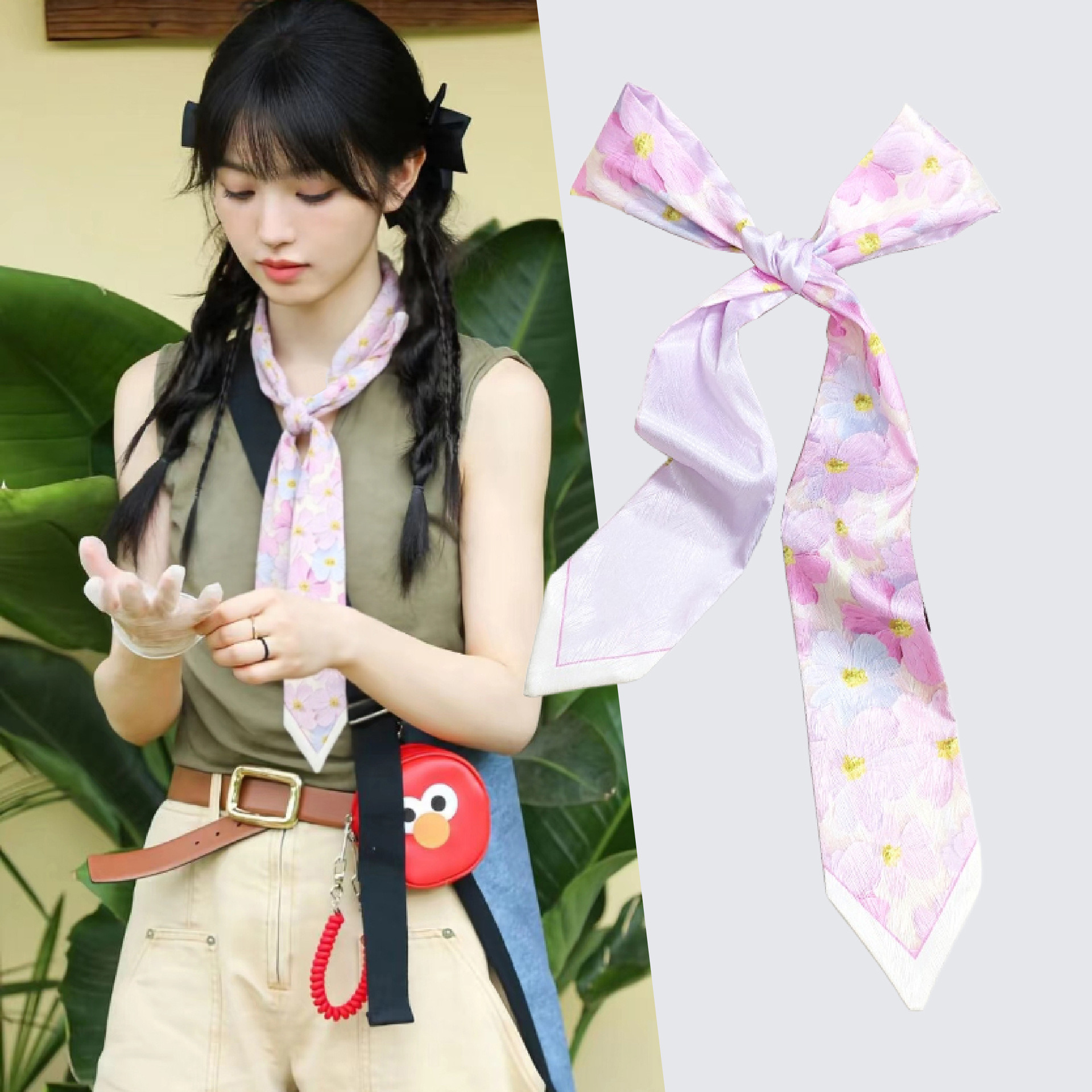 반 고흐의 흰색 아이리스 유화 실크 스카프 여성용 패턴 다용도 긴 머리끈과 가방 리본 뾰족한 작은 스카프