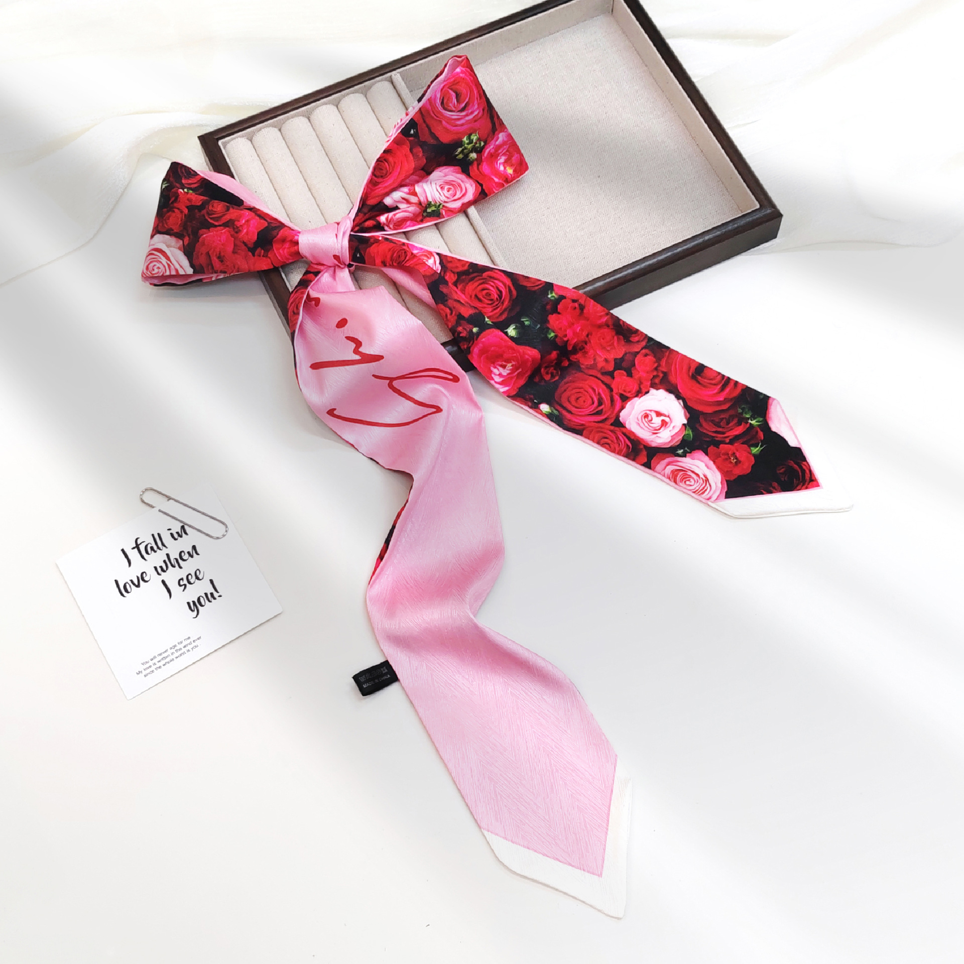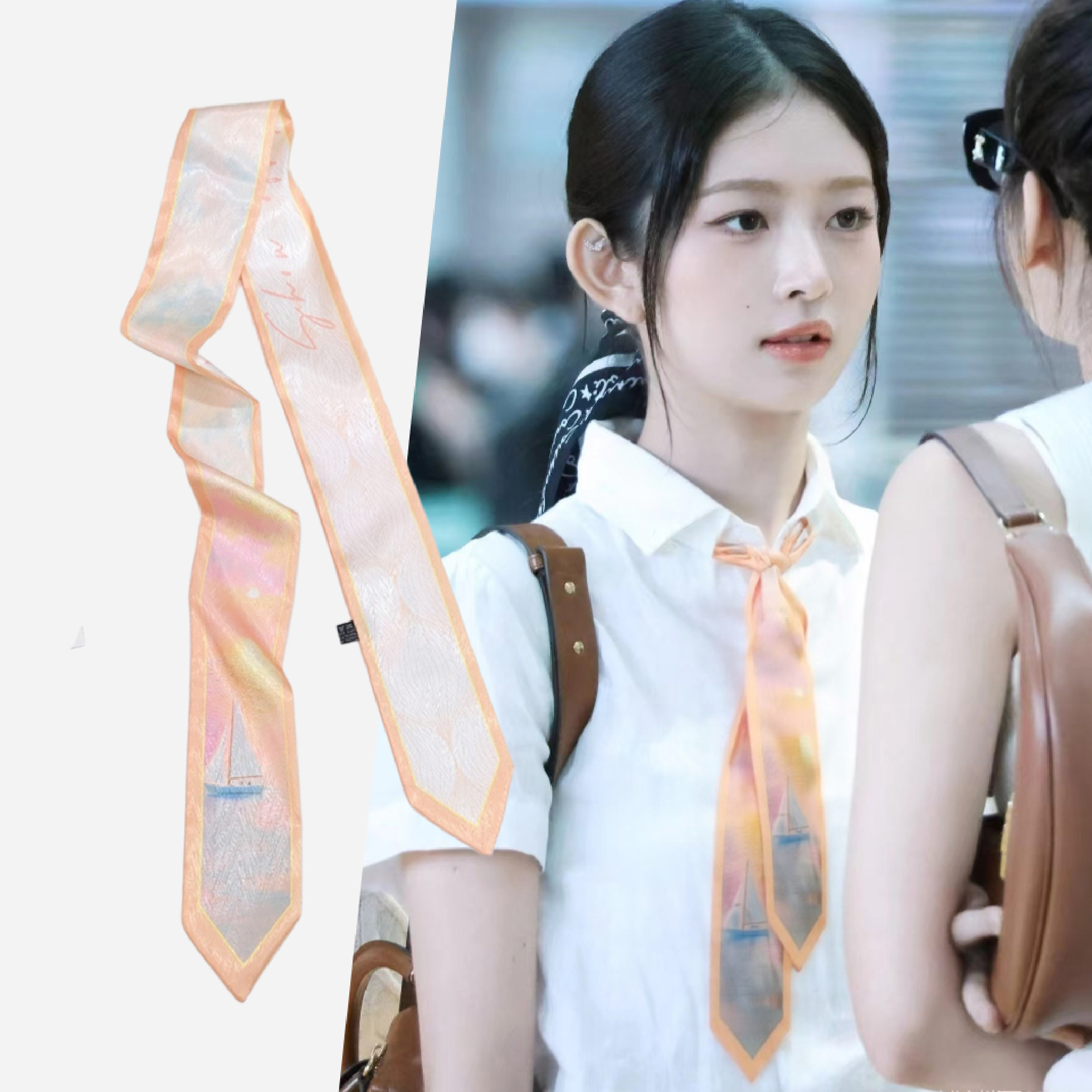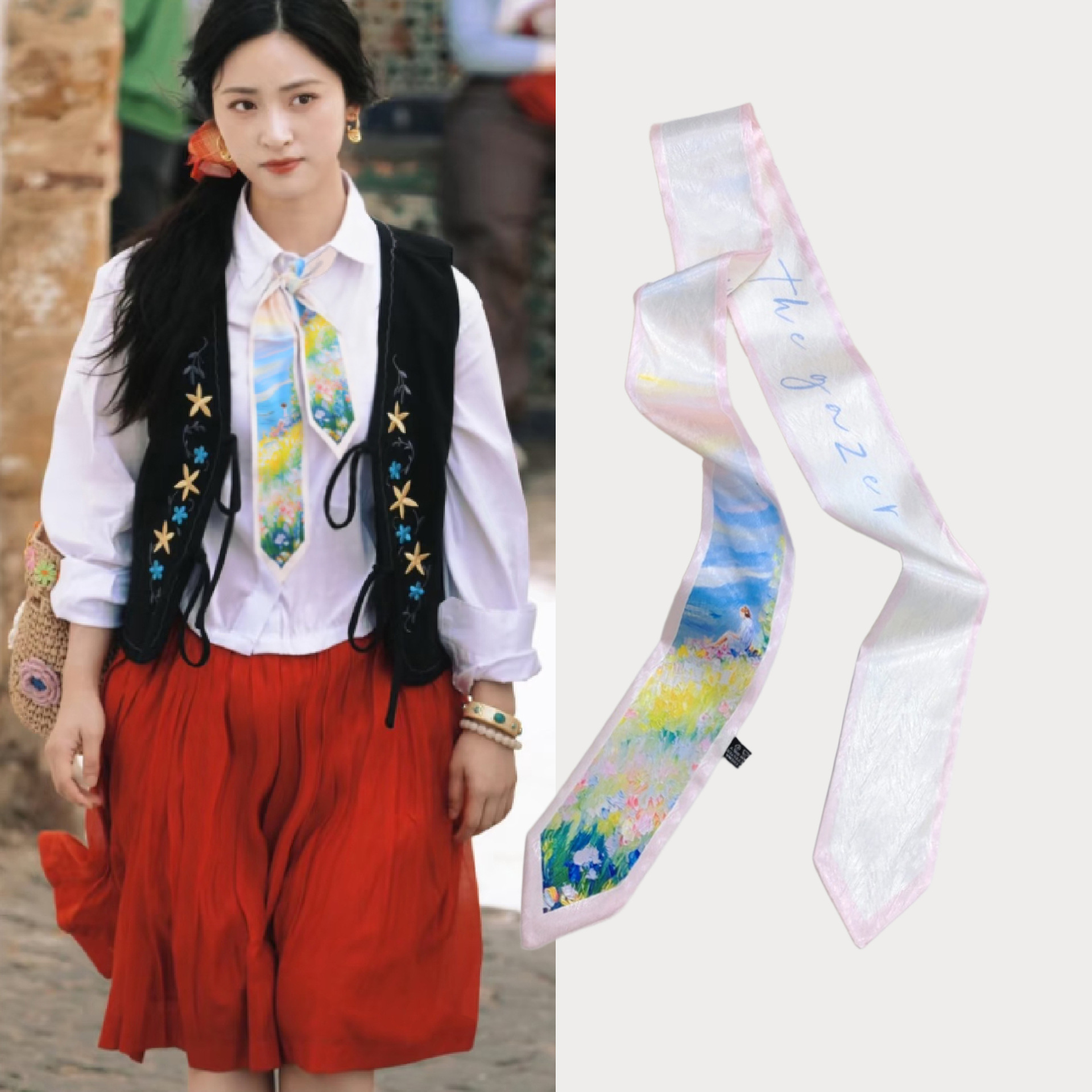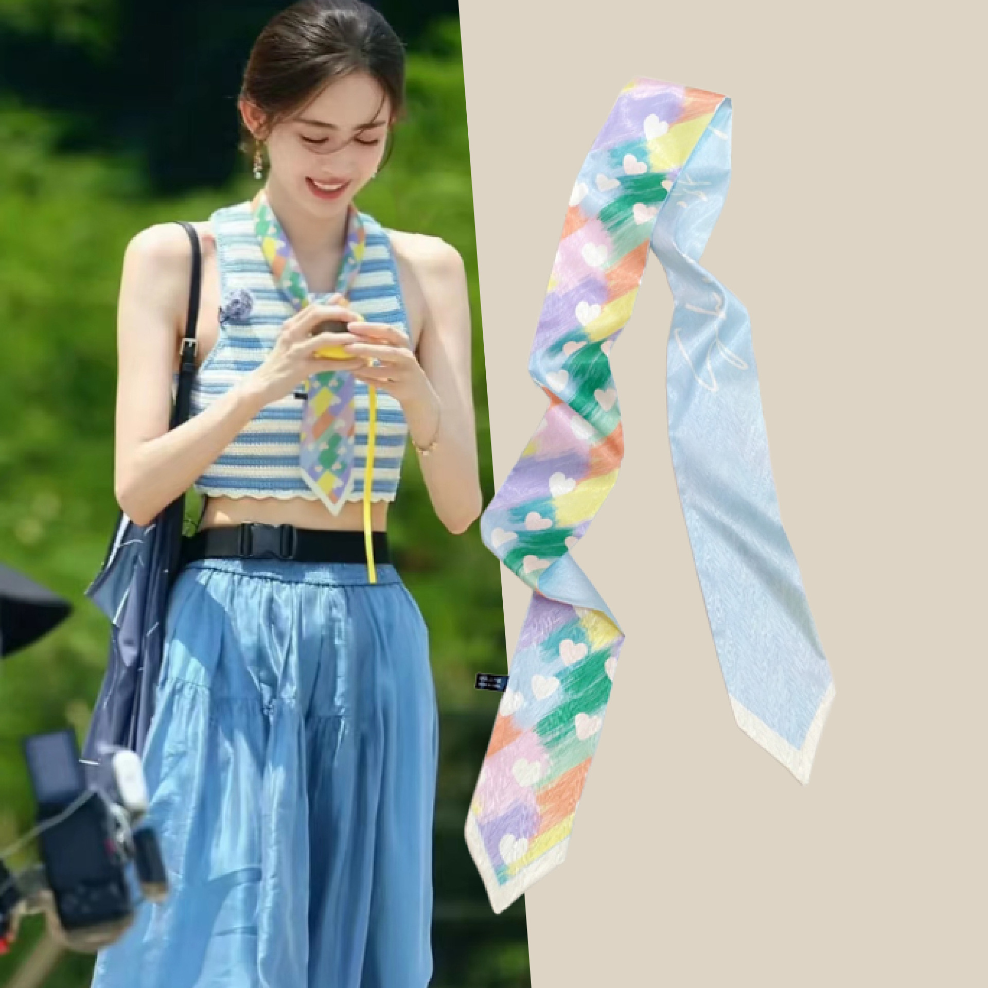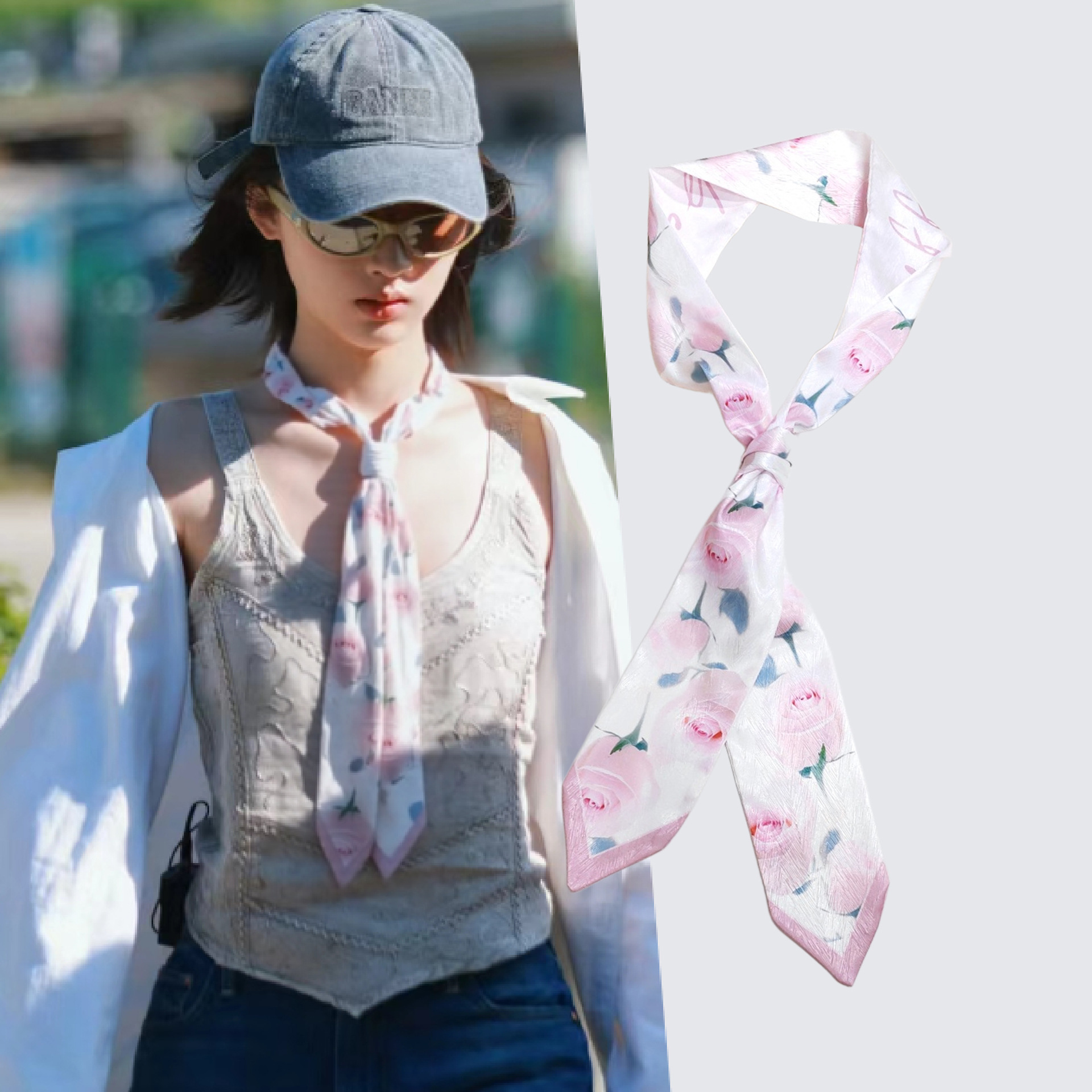 반 고흐의 흰색 아이리스 유화 실크 스카프 여성용 패턴 다용도 긴 머리끈과 가방 리본 뾰족한 작은 스카프