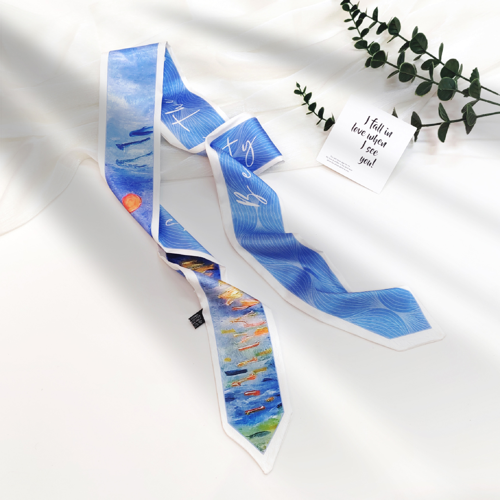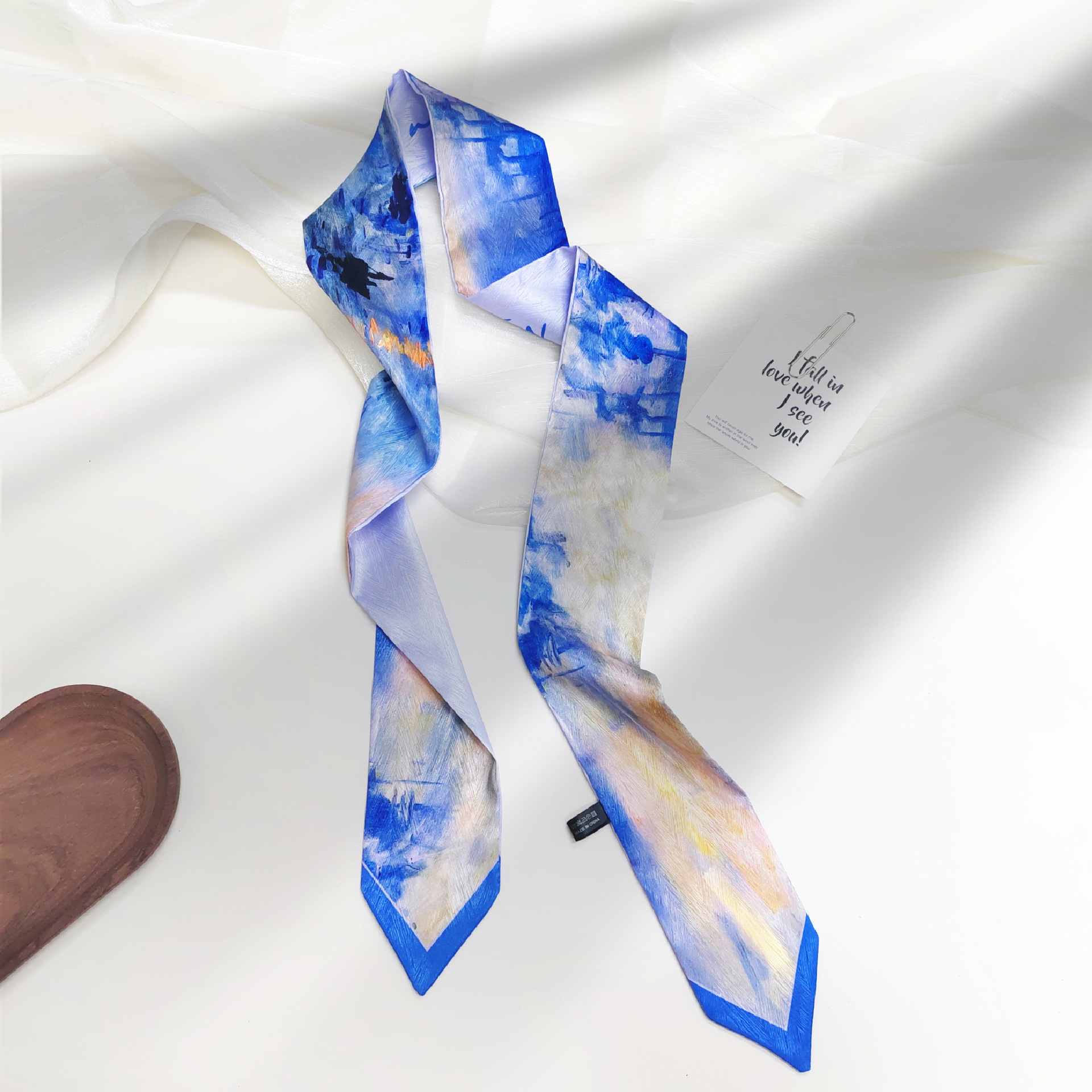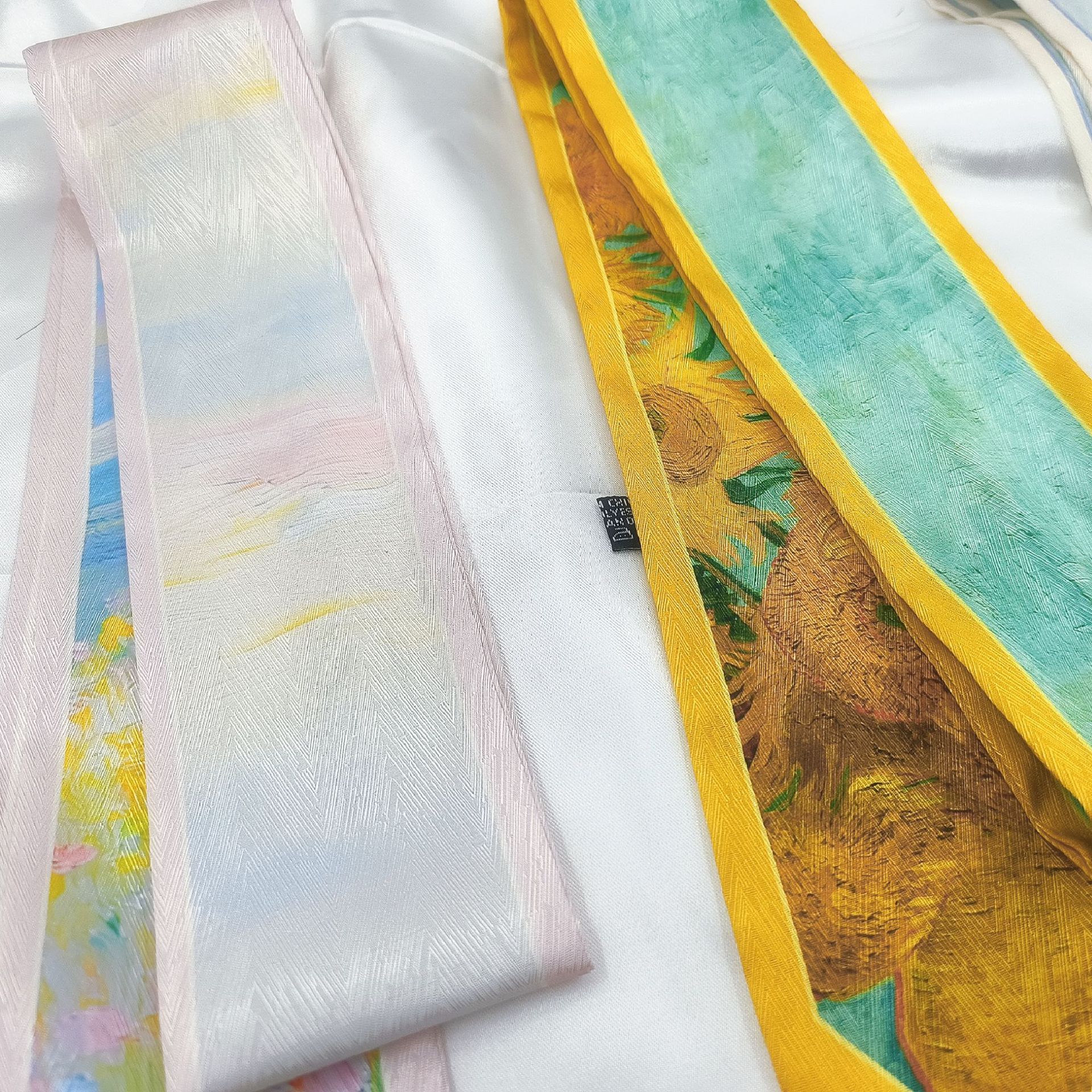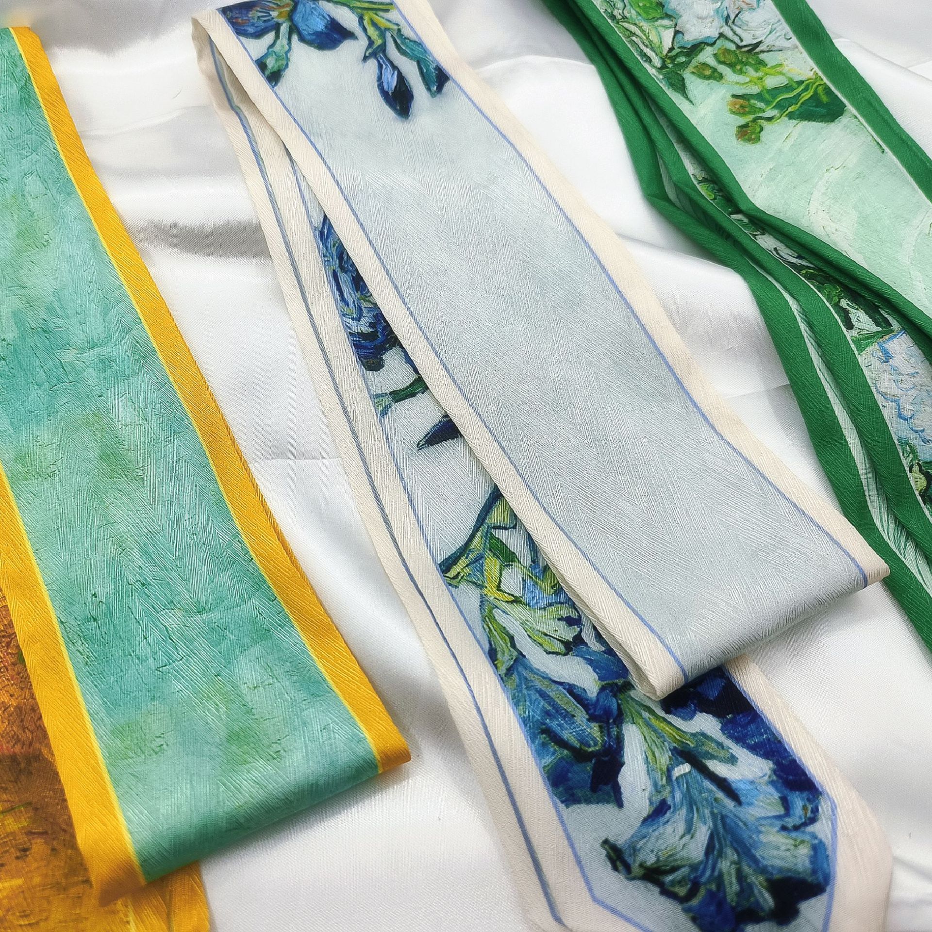 반 고흐의 흰색 아이리스 유화 실크 스카프 여성용 패턴 다용도 긴 머리끈과 가방 리본 뾰족한 작은 스카프스토어 가기