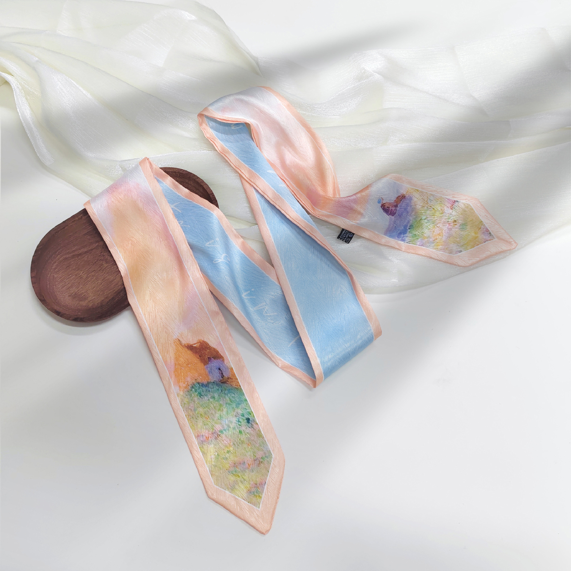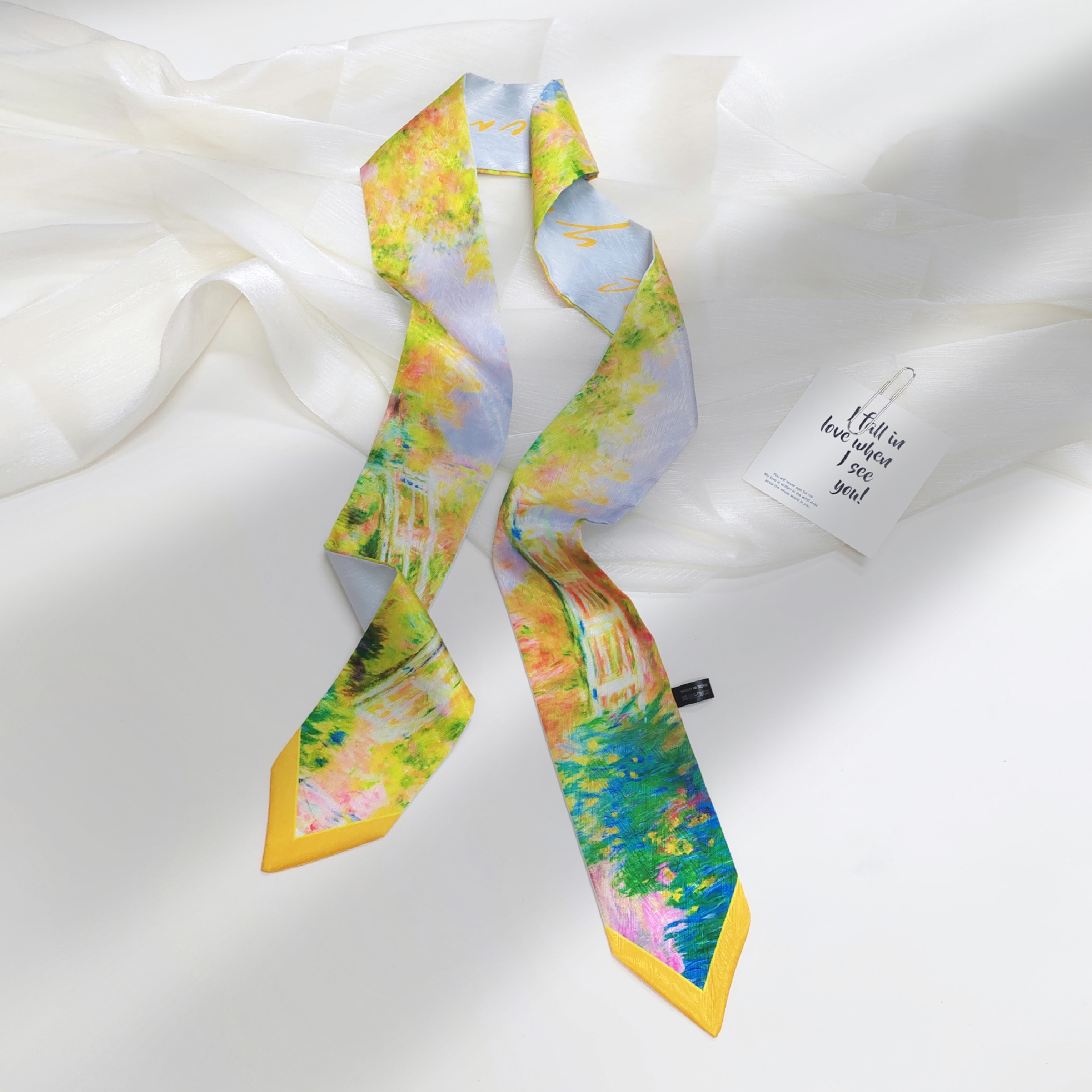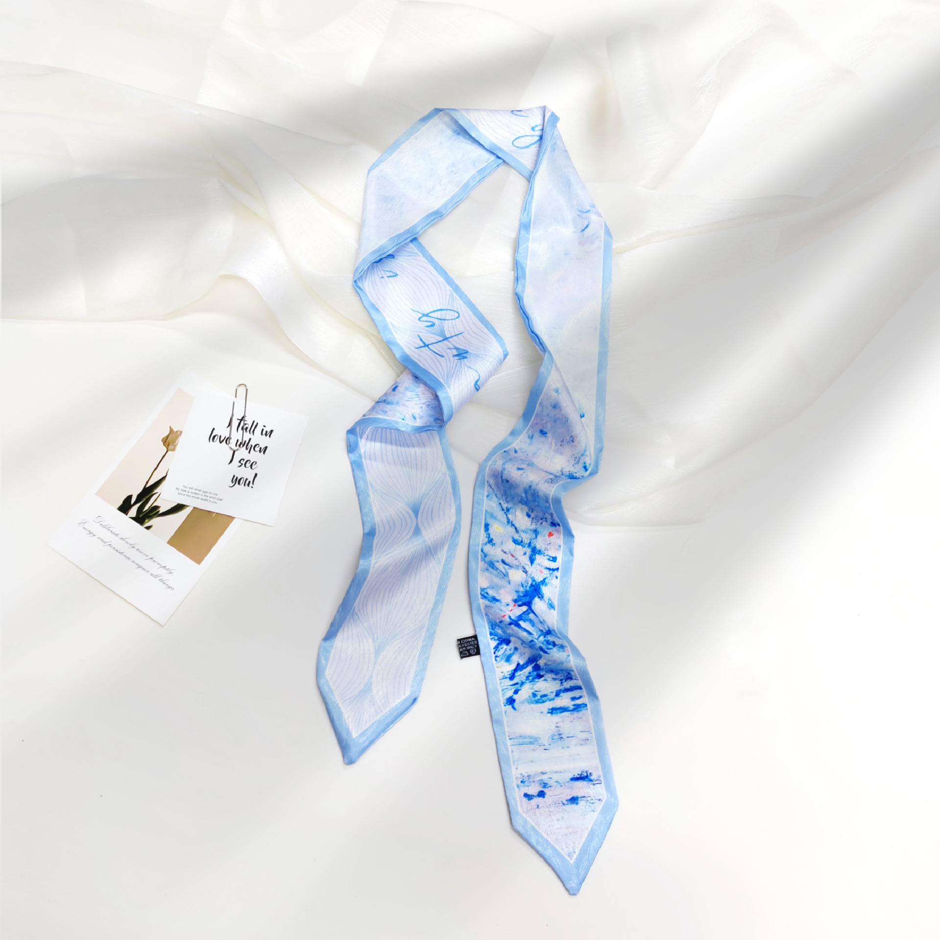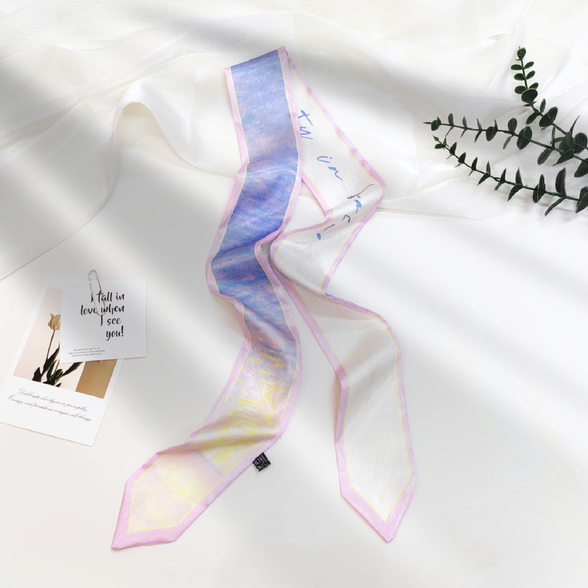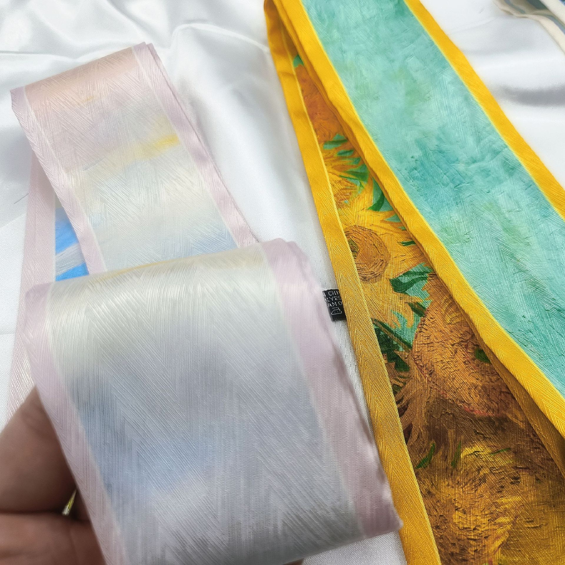 반 고흐의 흰색 아이리스 유화 실크 스카프 여성용 패턴 다용도 긴 머리끈과 가방 리본 뾰족한 작은 스카프스토어 가기