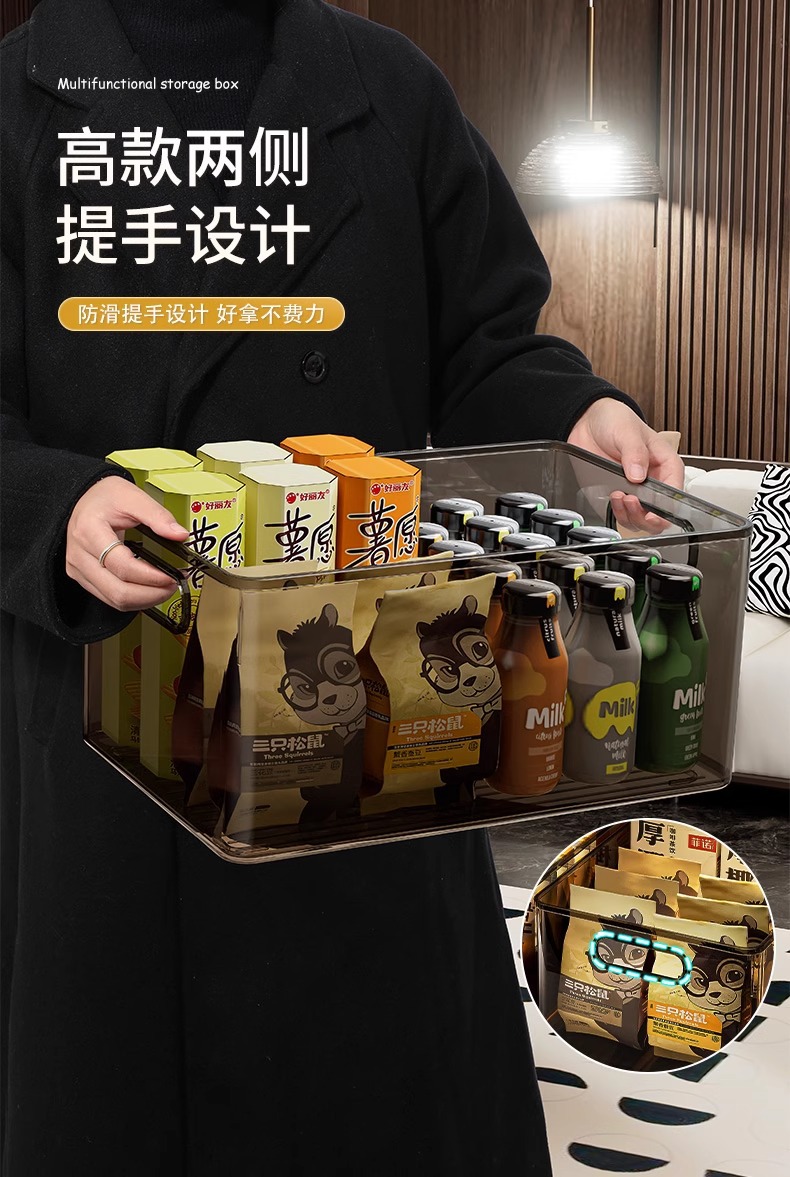 데스크탑 보관함, 스낵 및 잡화 보관함, 직사각형 플라스틱 거실 보관 바구니, 투명 서랍형 보관함