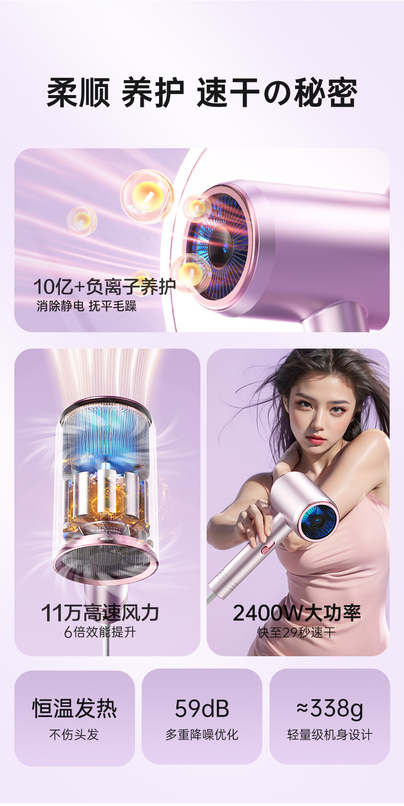 가정용 고속 헤어드라이어, 강력한 바람, 빠른 건조, 음이온 헤어케어, 일정 온도, 냉온 헤어드라이어, 지능형 온도 조절