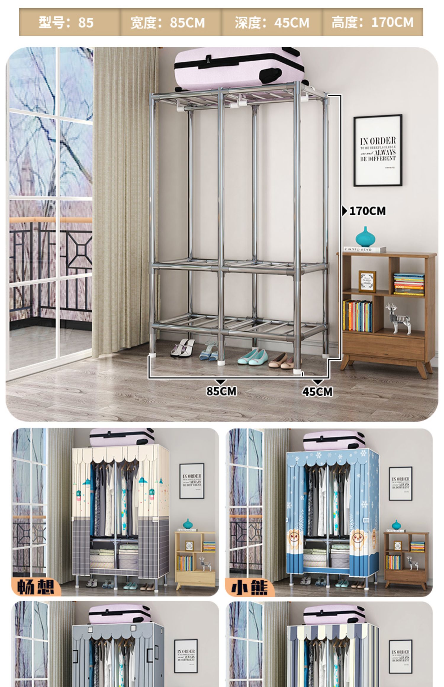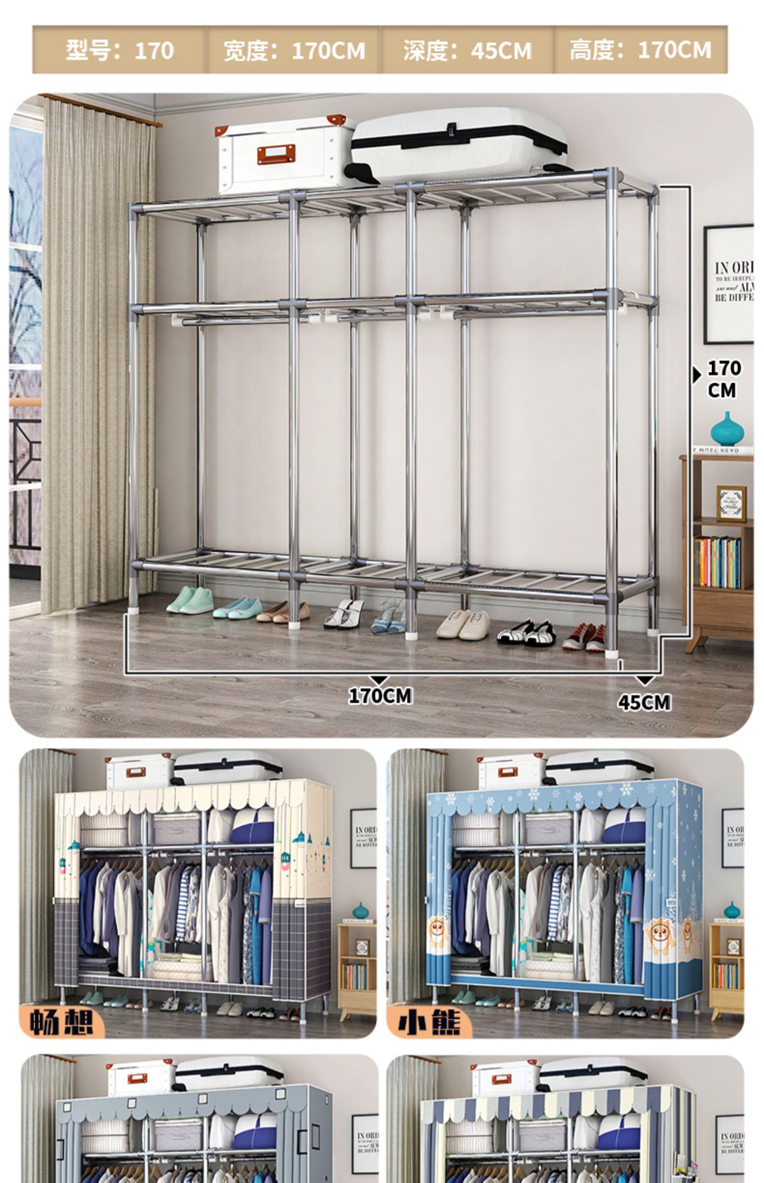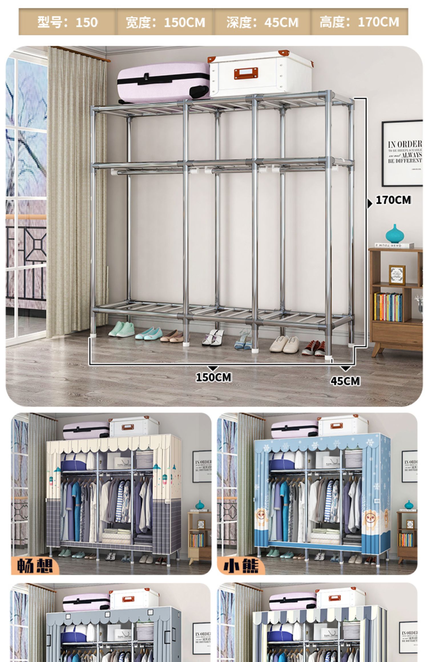 옷장 홈 침실 간단한 조립 옷장 전체 강철 프레임 두꺼운 두꺼운 튼튼하고 내구성이 뛰어난 임대 주택 천 옷장