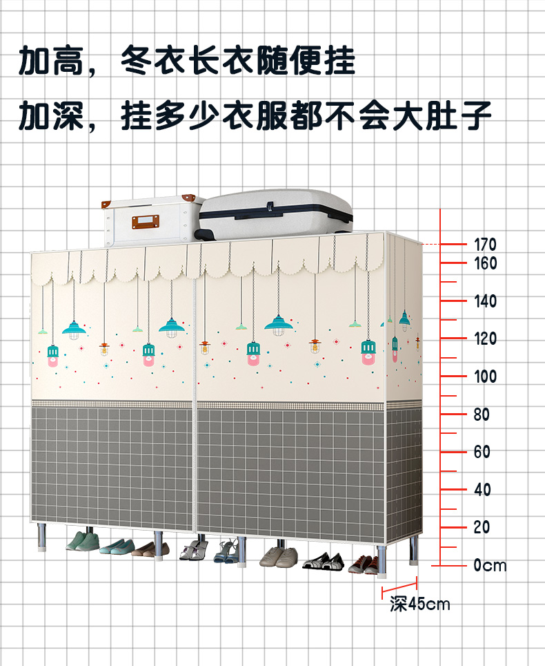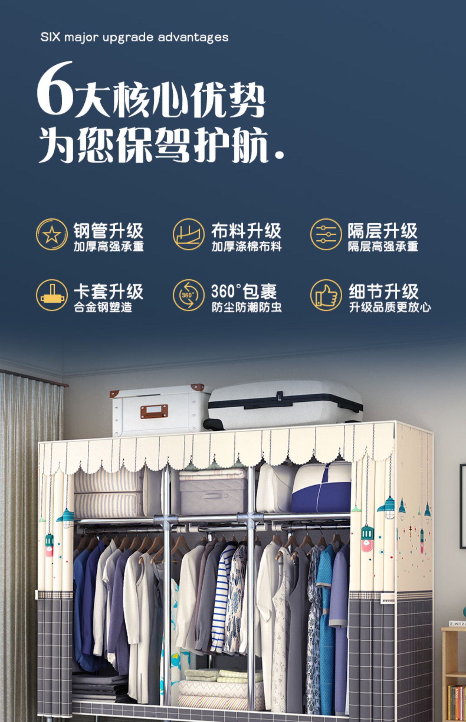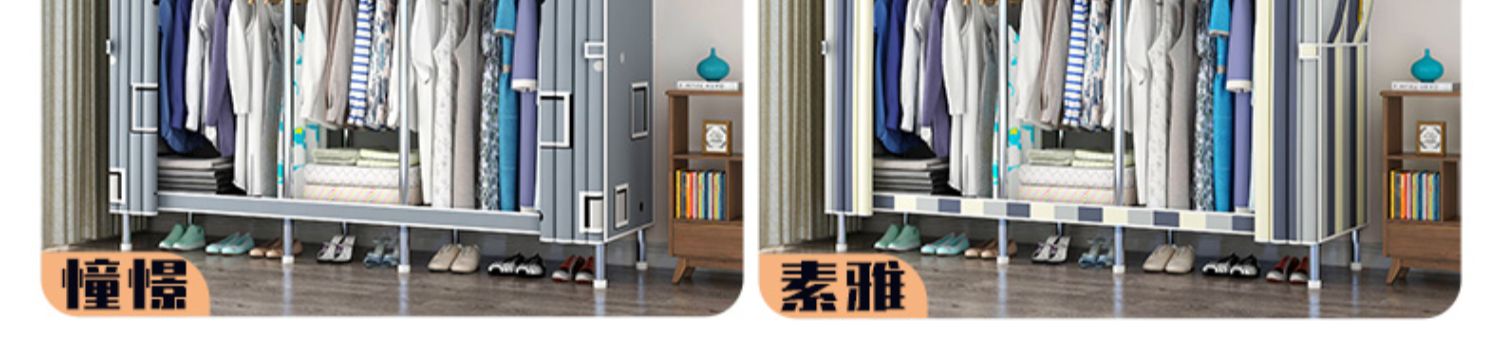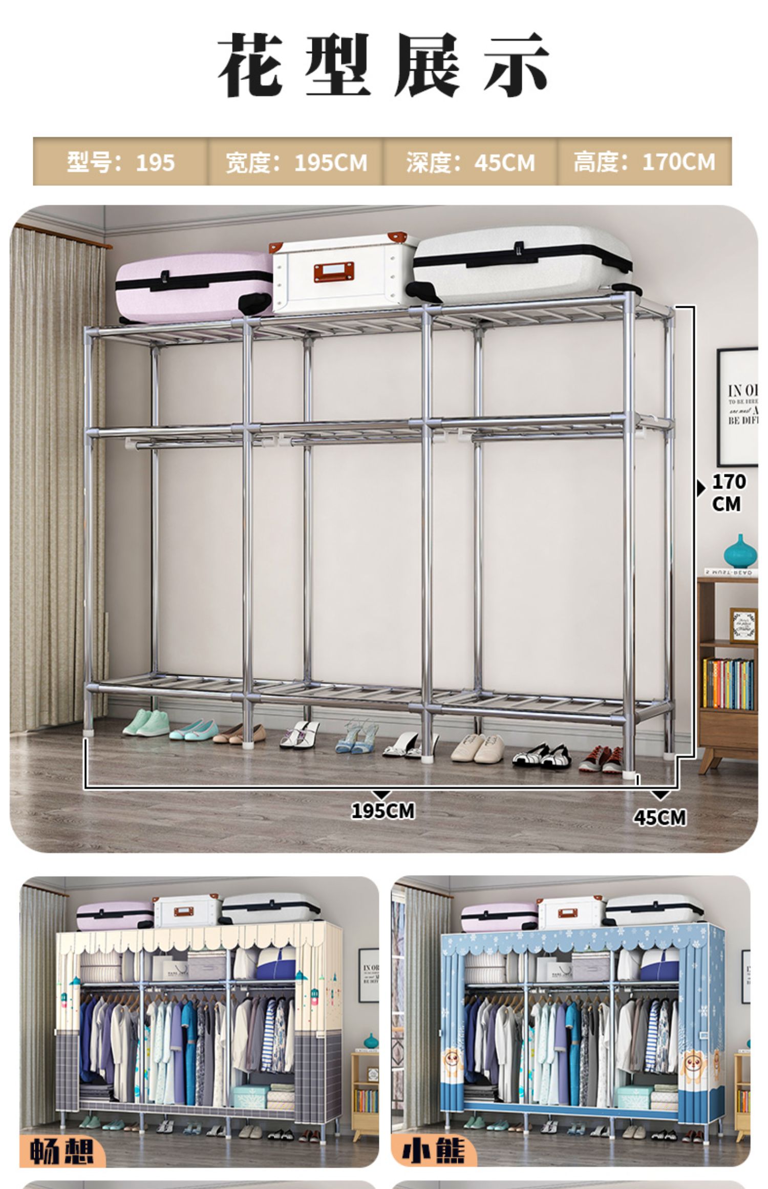 옷장 홈 침실 간단한 조립 옷장 전체 강철 프레임 두꺼운 두꺼운 튼튼하고 내구성이 뛰어난 임대 주택 천 옷장