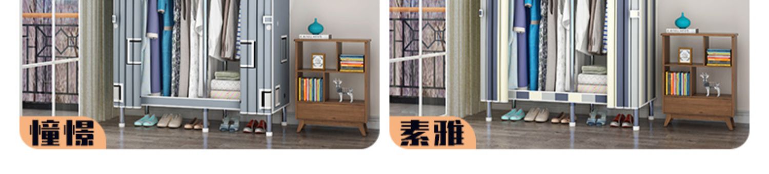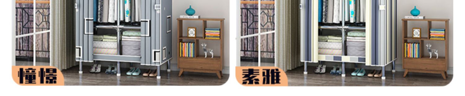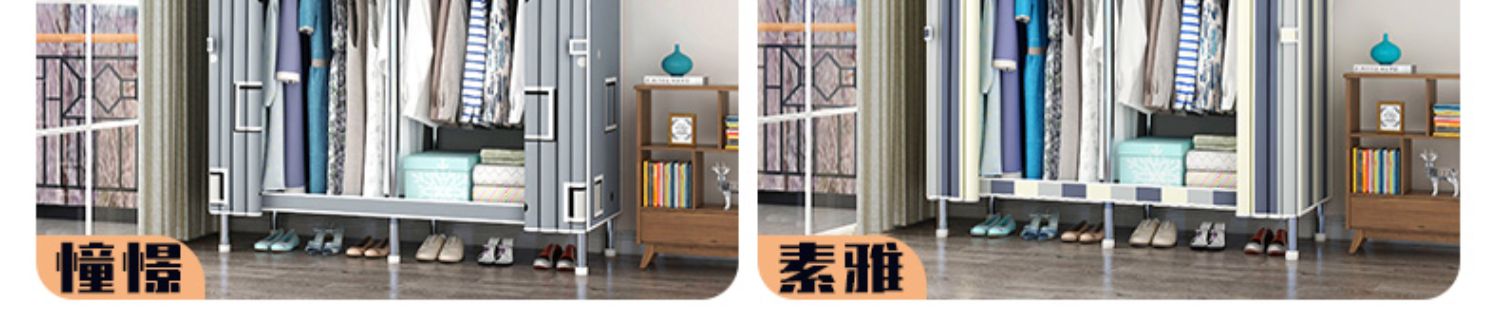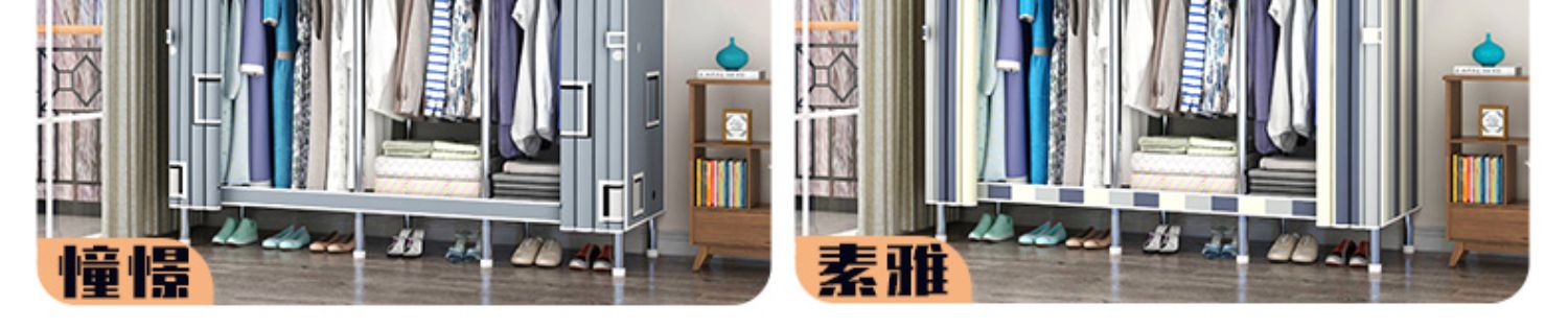 옷장 홈 침실 간단한 조립 옷장 전체 강철 프레임 두꺼운 두꺼운 튼튼하고 내구성이 뛰어난 임대 주택 천 옷장스토어 가기