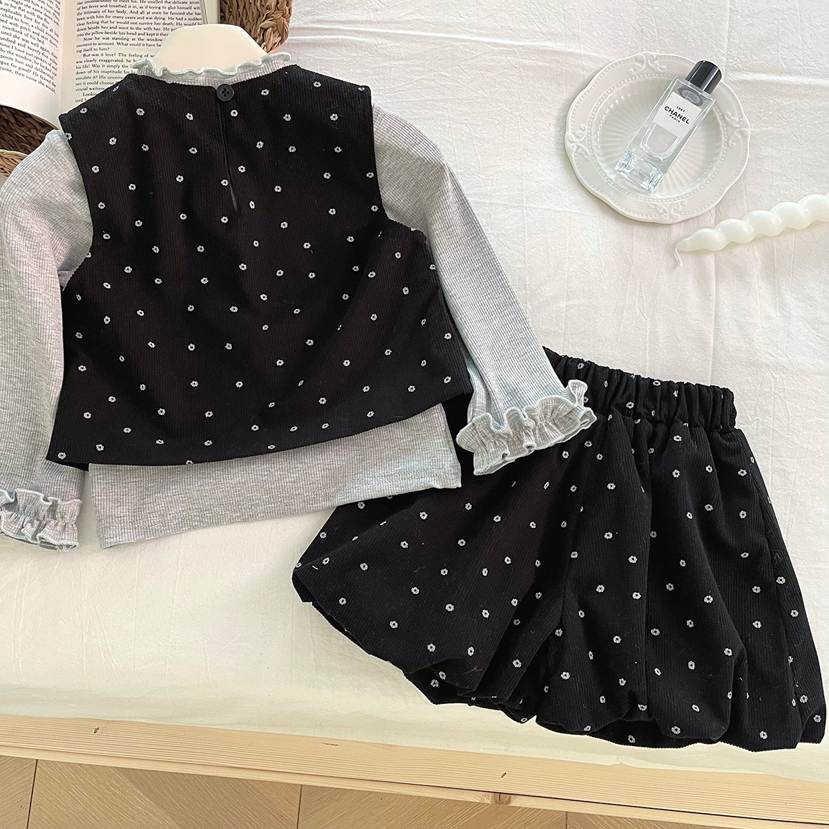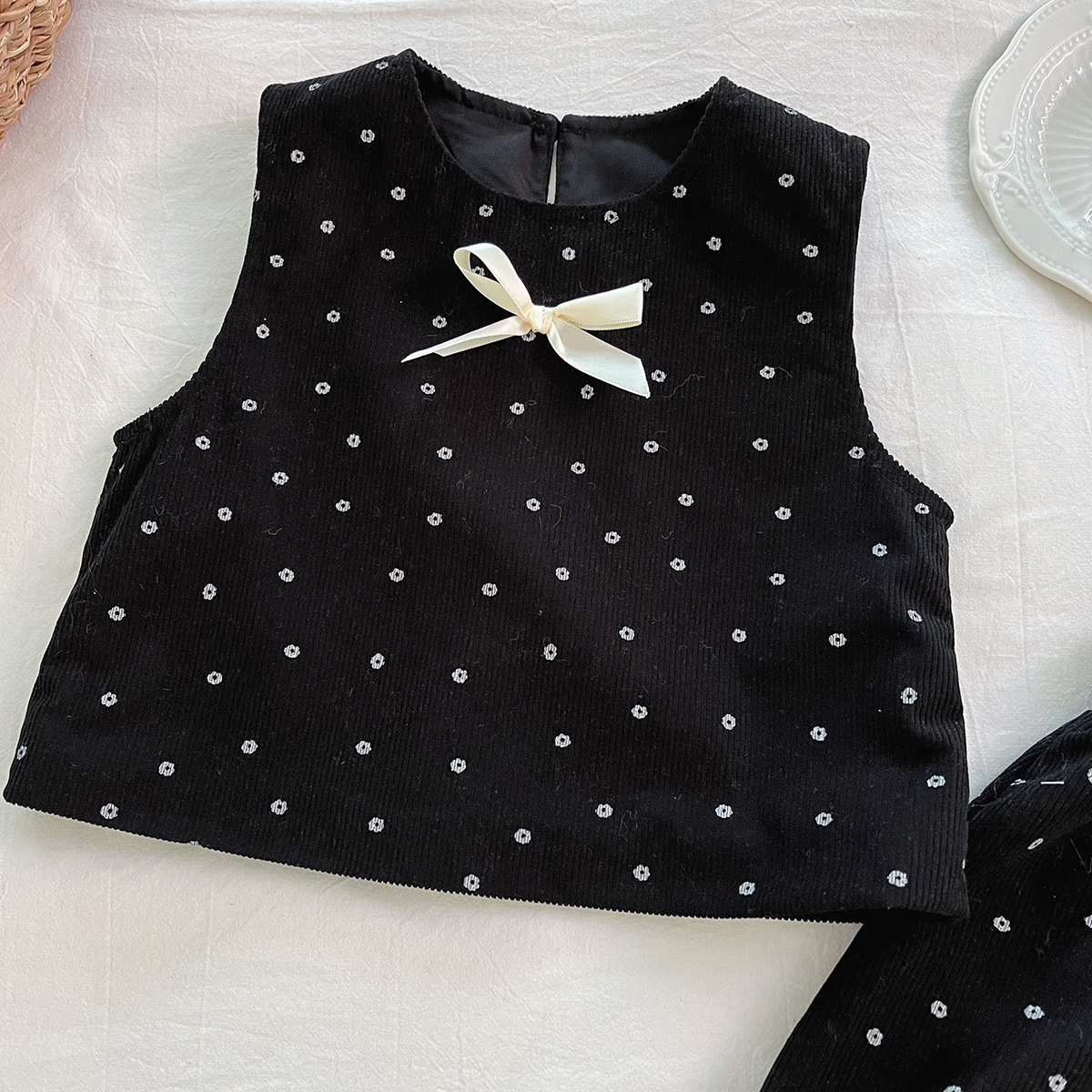 2025 봄 새로운 한국 스타일 소녀 폴카 도트 보우 긴팔 셔츠 아기 스커트 귀여운 스타일스토어 가기
