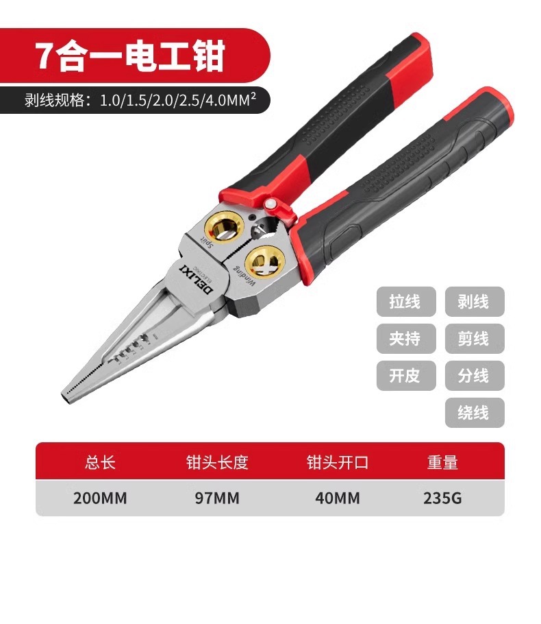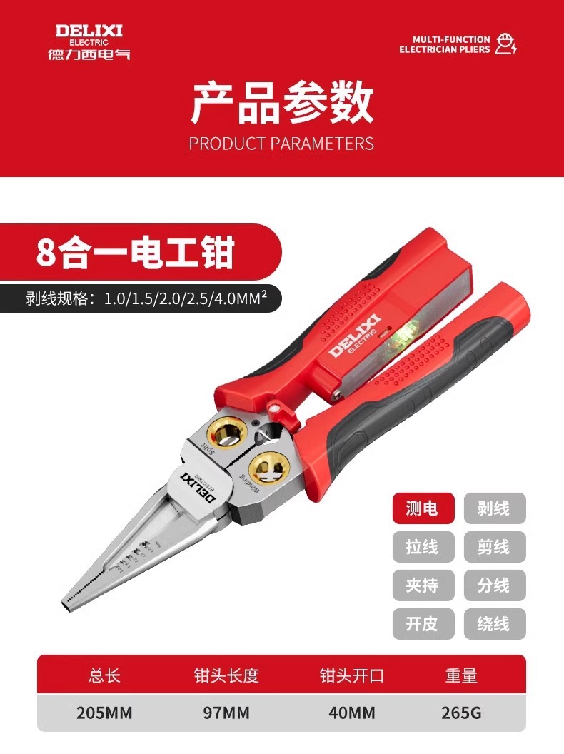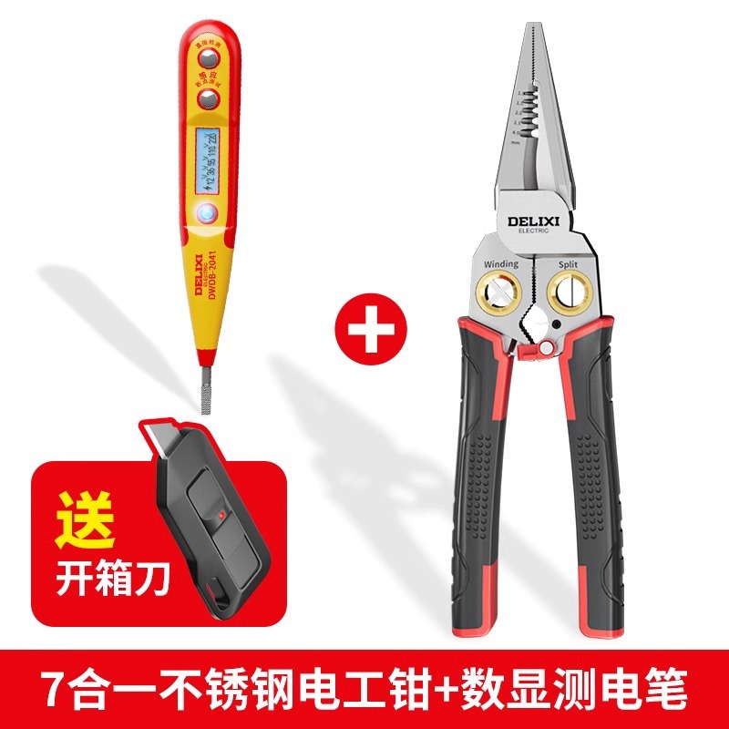 Delixi 다기능 전기 테스트 펜, 와이어 스트리퍼, 전기 기술자를 위한 특수 도구, 스테인레스 스틸 와이어 커터, 전기 기술자 펜치, 와인딩 펜치