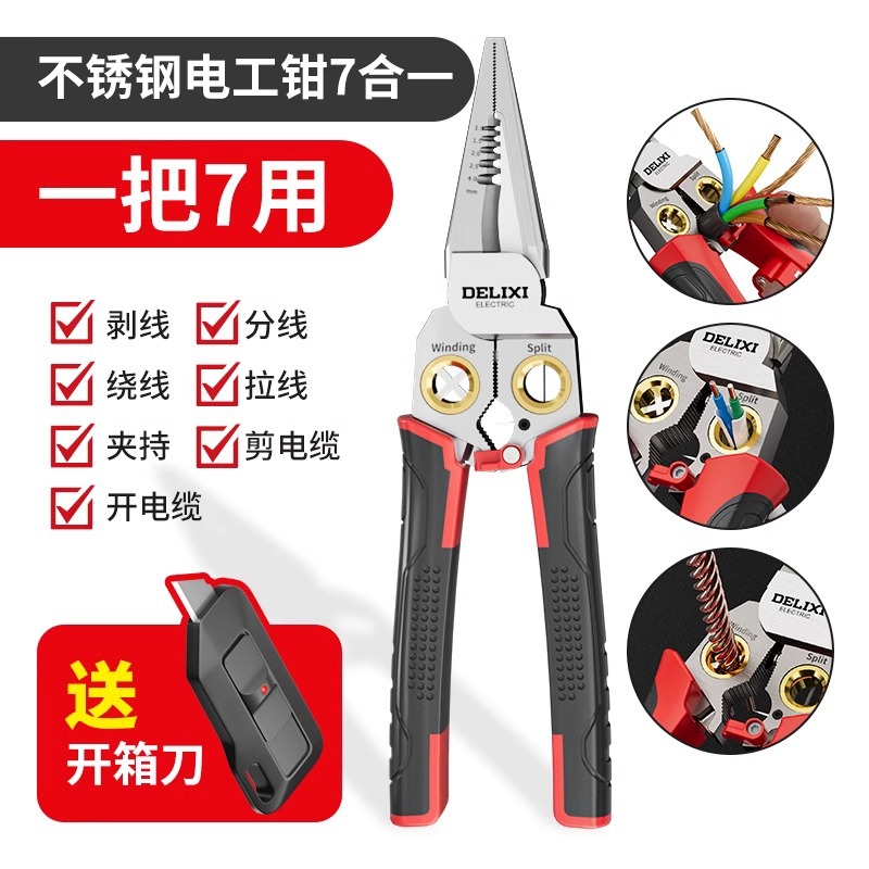 • [단조 모델] 새로운 7-in-1 스테인레스 스틸 전기공 펜치 + 작은 사각형 가방 + 무료 언박싱 칼