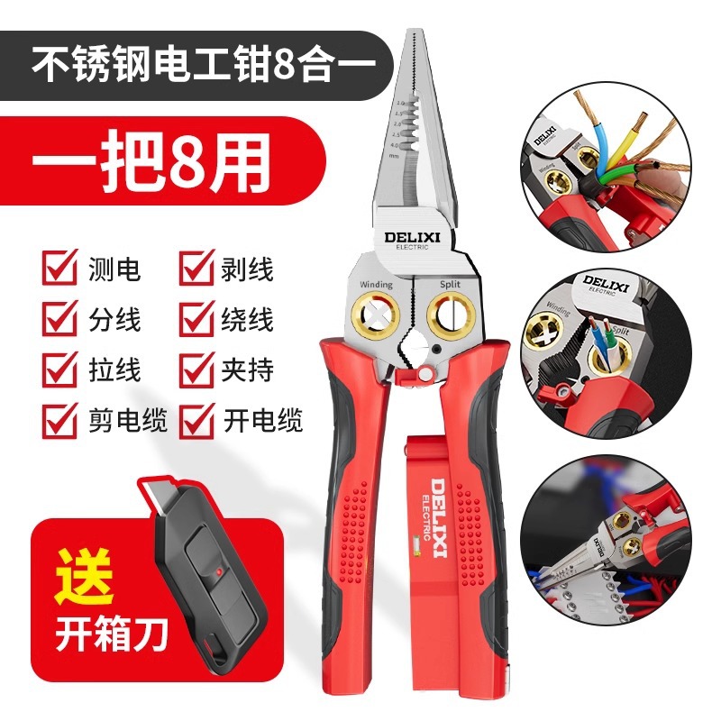 • [단조 모델] 새로운 8-in-1 스테인레스 스틸 전기공 펜치(전기 테스트 알림 포함) + 작은 사각형 가방 + 무료 박스 오프너