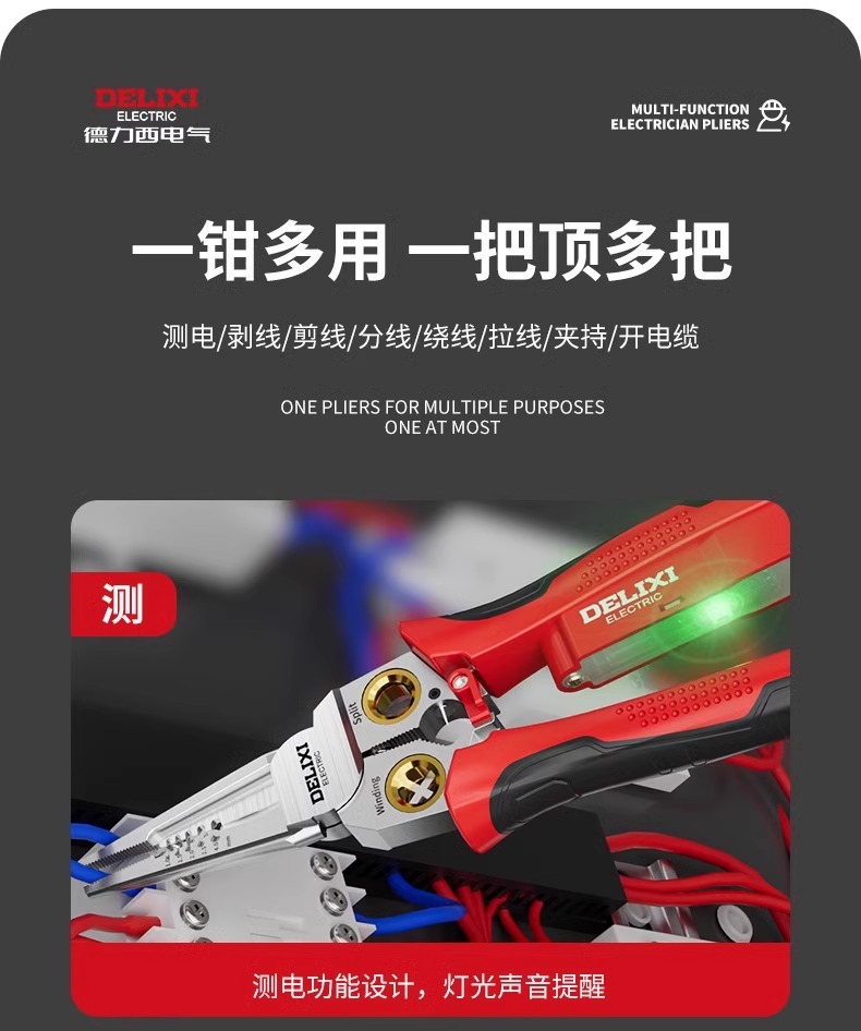 Delixi 다기능 전기 테스트 펜, 와이어 스트리퍼, 전기 기술자를 위한 특수 도구, 스테인레스 스틸 와이어 커터, 전기 기술자 펜치, 와인딩 펜치스토어 가기