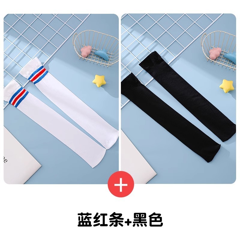 • 파란색과 빨간색 줄무늬 + 검은색 줄무늬 [벨벳 종아리 양말] # 모기 구충제 및 자외선 차단제