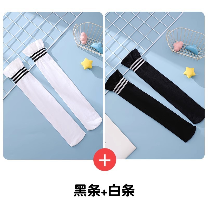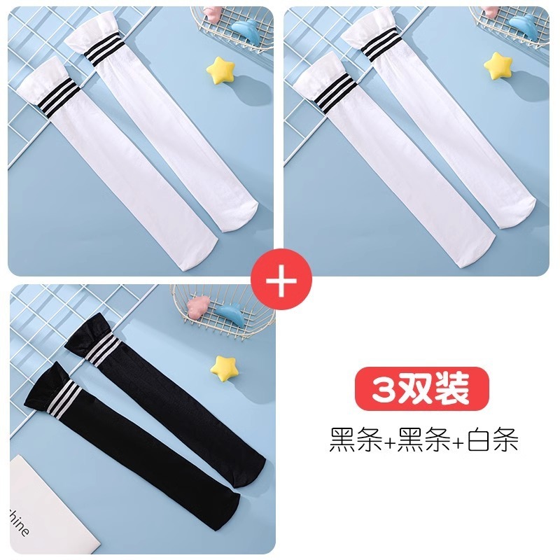 • 블랙 스트라이프 + 블랙 스트라이프 + 화이트 스트라이프 [벨벳 미드 종아리 양말] # 모기 구충제 및 자외선 차단제