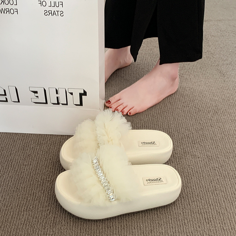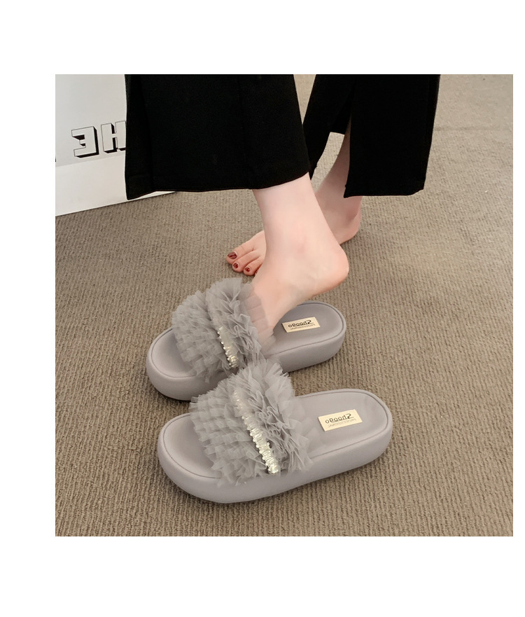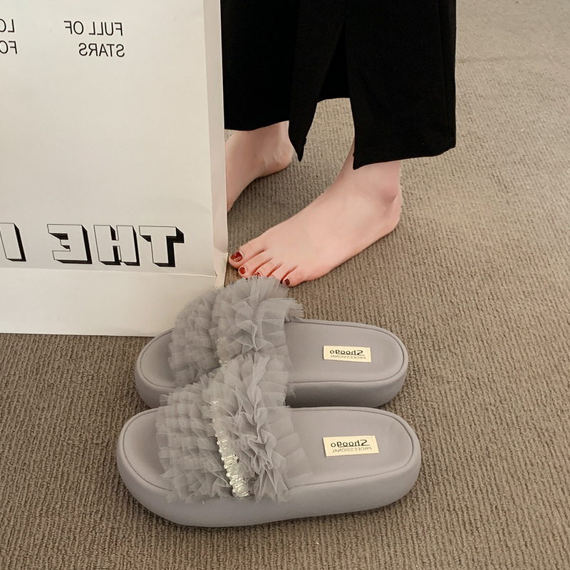 2025 여름 얇은 원사 두꺼운 밑창 경량 부드러운 밑창 캐주얼 새로운 슬리퍼 통기성 요정 스타일 레이스 메쉬 샌들