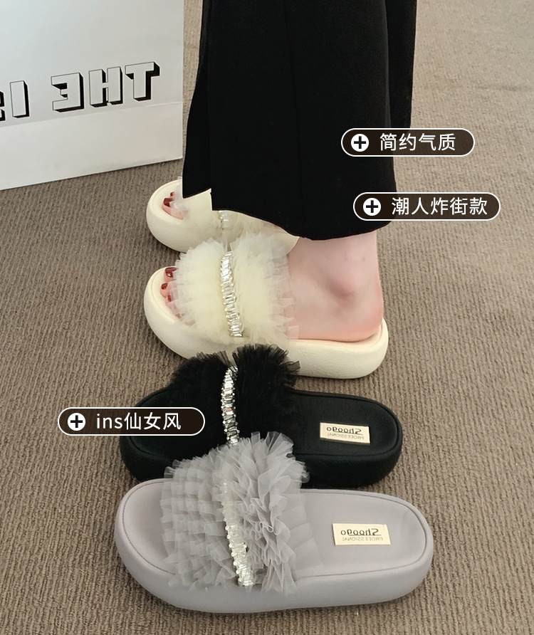 2025 여름 얇은 원사 두꺼운 밑창 경량 부드러운 밑창 캐주얼 새로운 슬리퍼 통기성 요정 스타일 레이스 메쉬 샌들스토어 가기