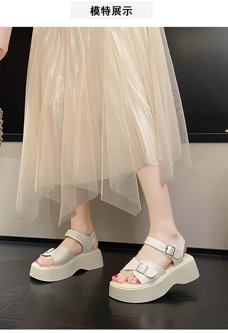 여성을위한 두꺼운 밑창 샌들 2025 여름 새로운 한국 스타일 패션 라운드 발가락 오픈 발가락 벨트 버클 캐주얼 비치 로마 샌들