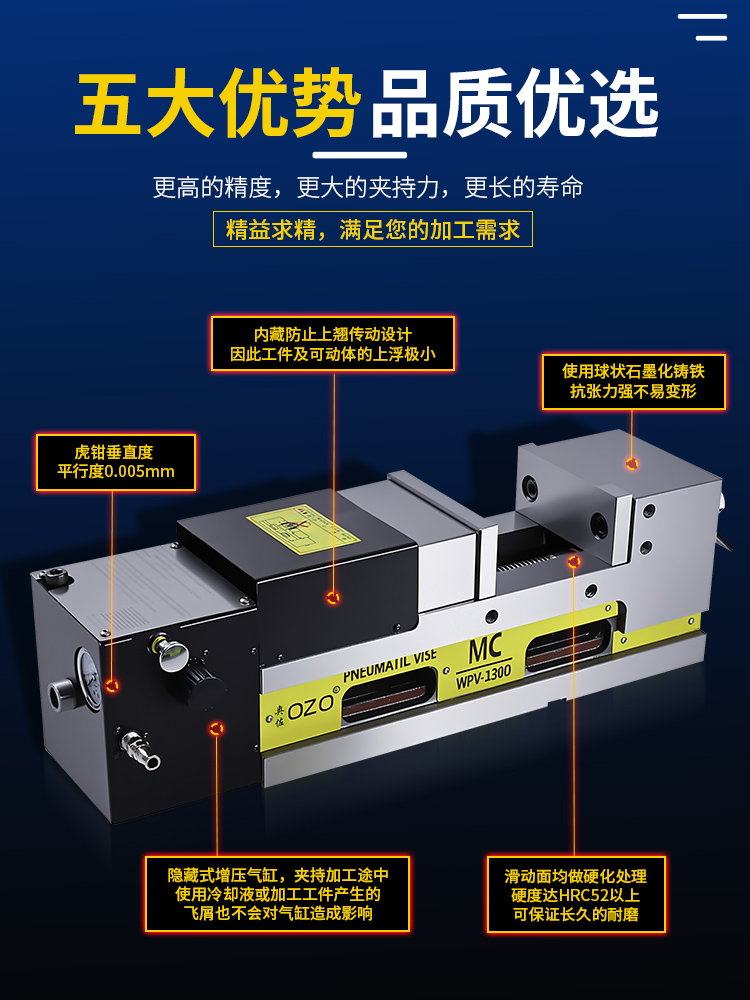 OZOmc 이중 부스트 바이스 오일 압력 플랫 플라이어 CNC 가공 공압 유압 바이스스토어 가기