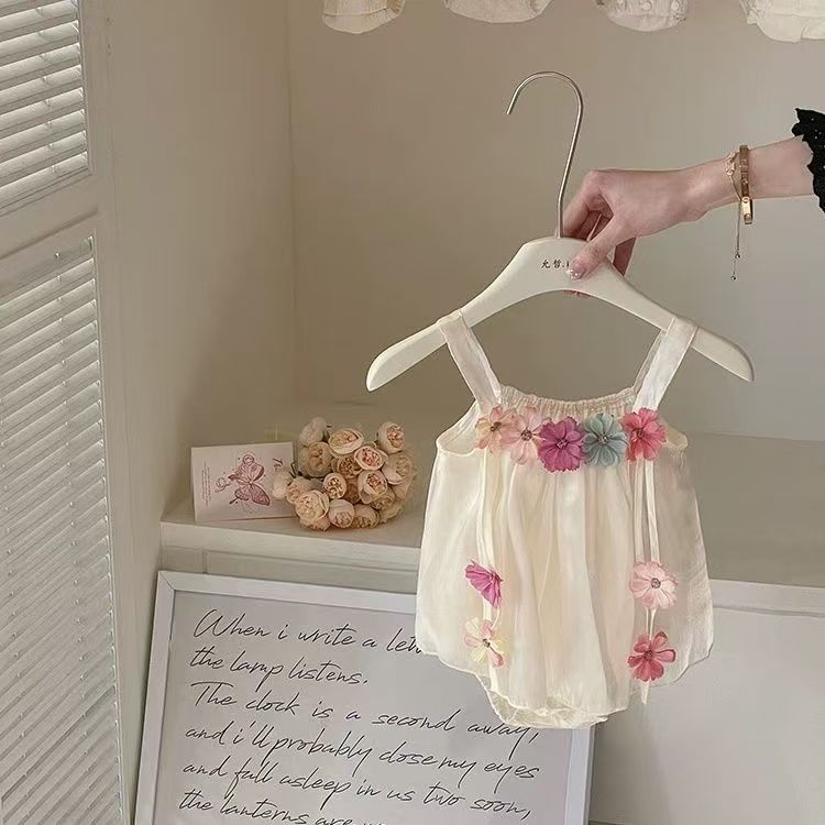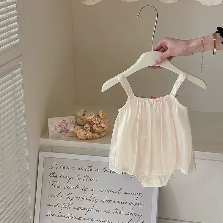 영유아를 위한 새로운 스타일의 꽃무늬 요정 가운, 얇은 민소매 멜빵, 세련된 여아 삼각형 가방 거즈 스커트스토어 가기