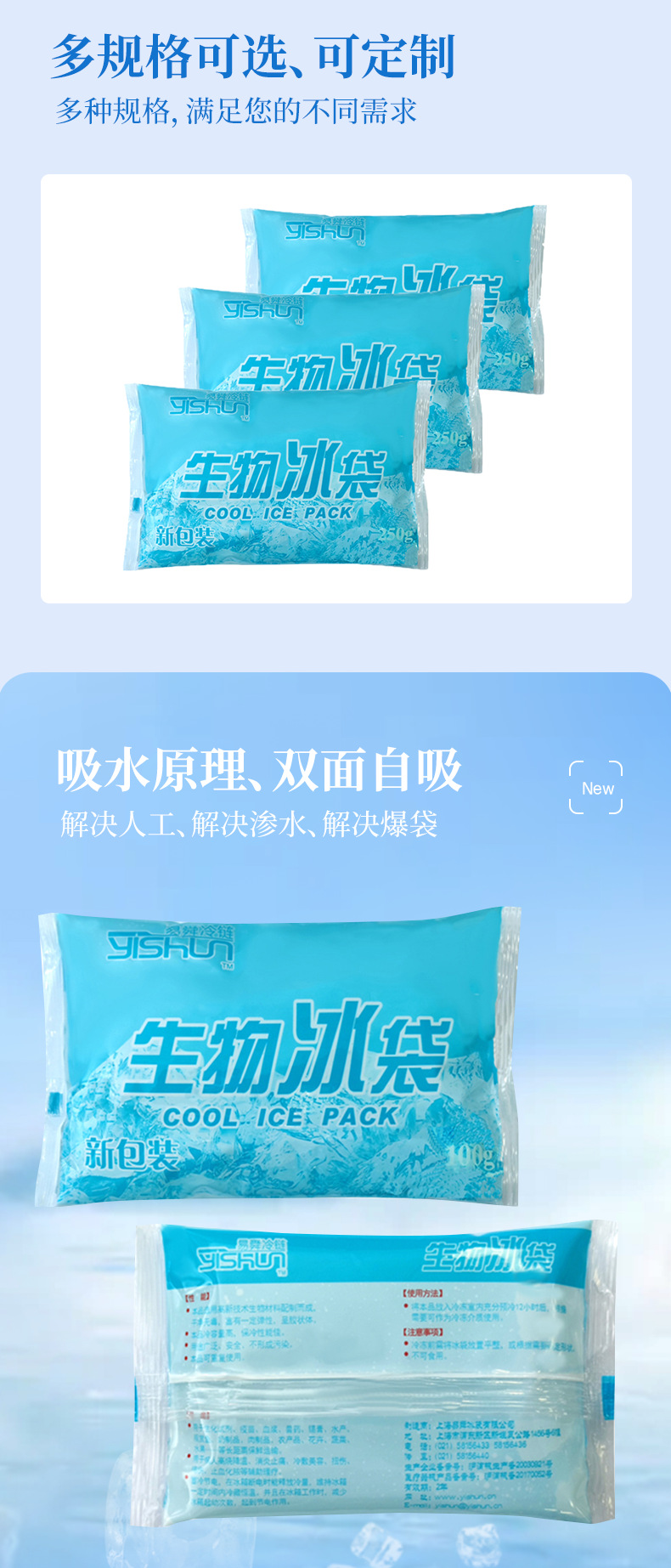 바이오 아이스백, 테이크아웃 아이스백, 특수 냉동, 재사용 가능, 야외 신선도 유지, 물을 넣을 필요 없음