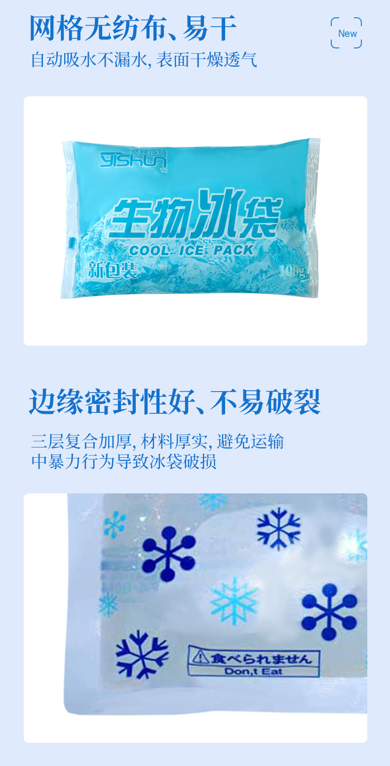 바이오 아이스백, 테이크아웃 아이스백, 특수 냉동, 재사용 가능, 야외 신선도 유지, 물을 넣을 필요 없음스토어 가기