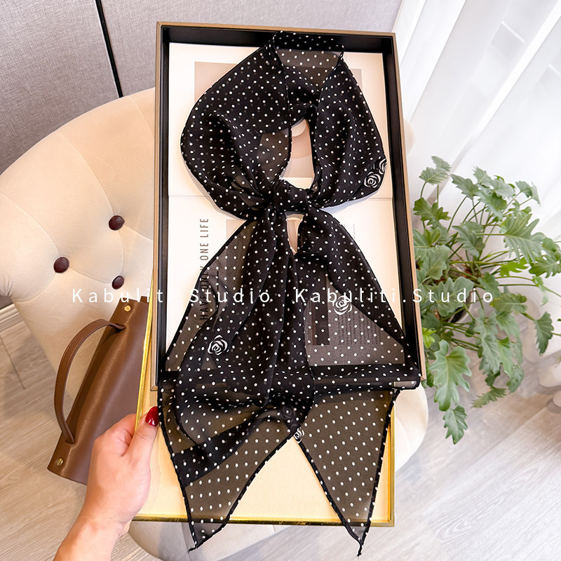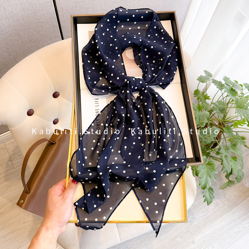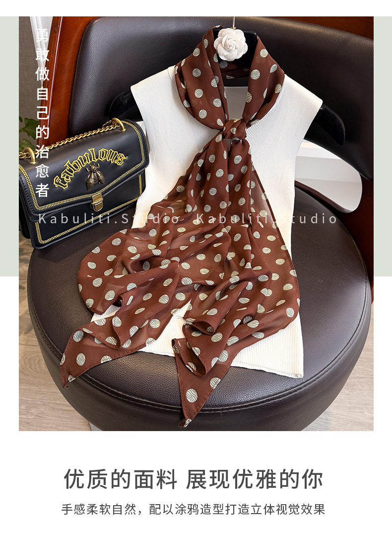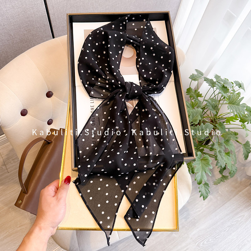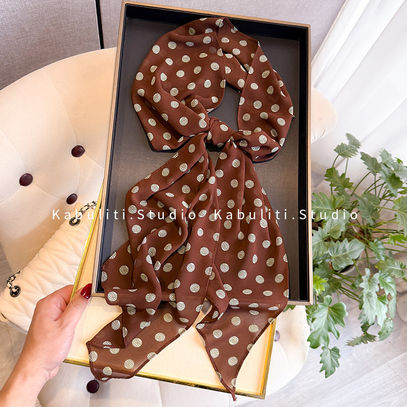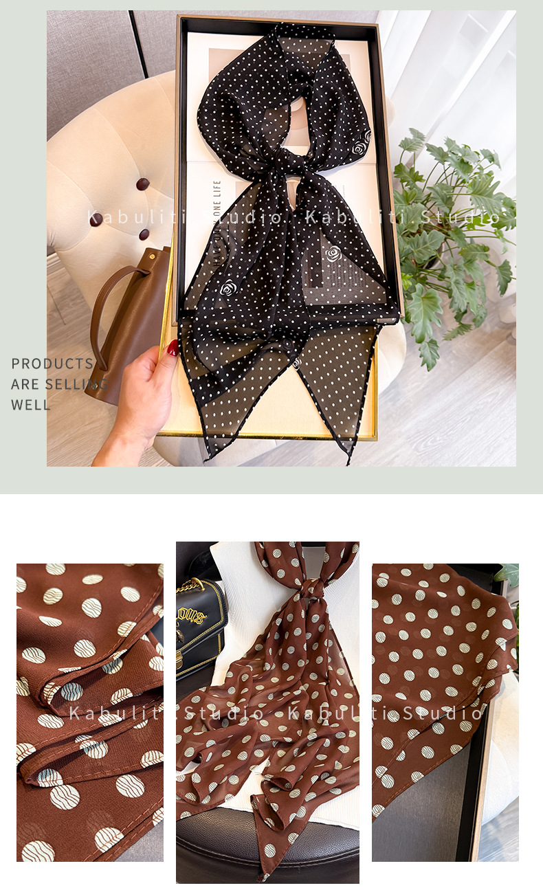 여성용 물방울무늬 작은 긴 얇은 스카프, 리본, 넥밴드, 넥타이, 벨트, 얇은 스카프스토어 가기