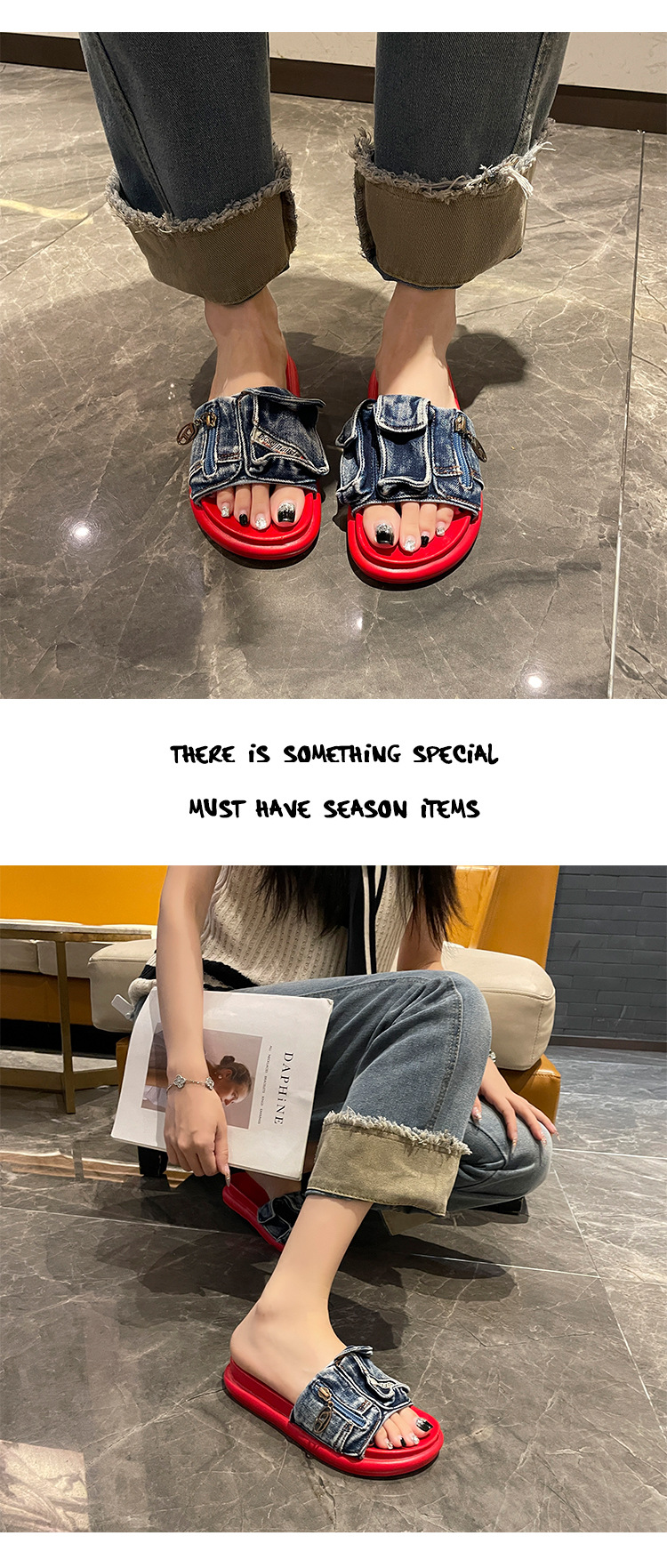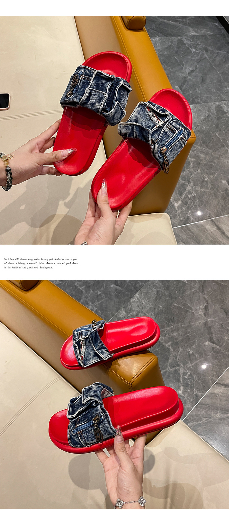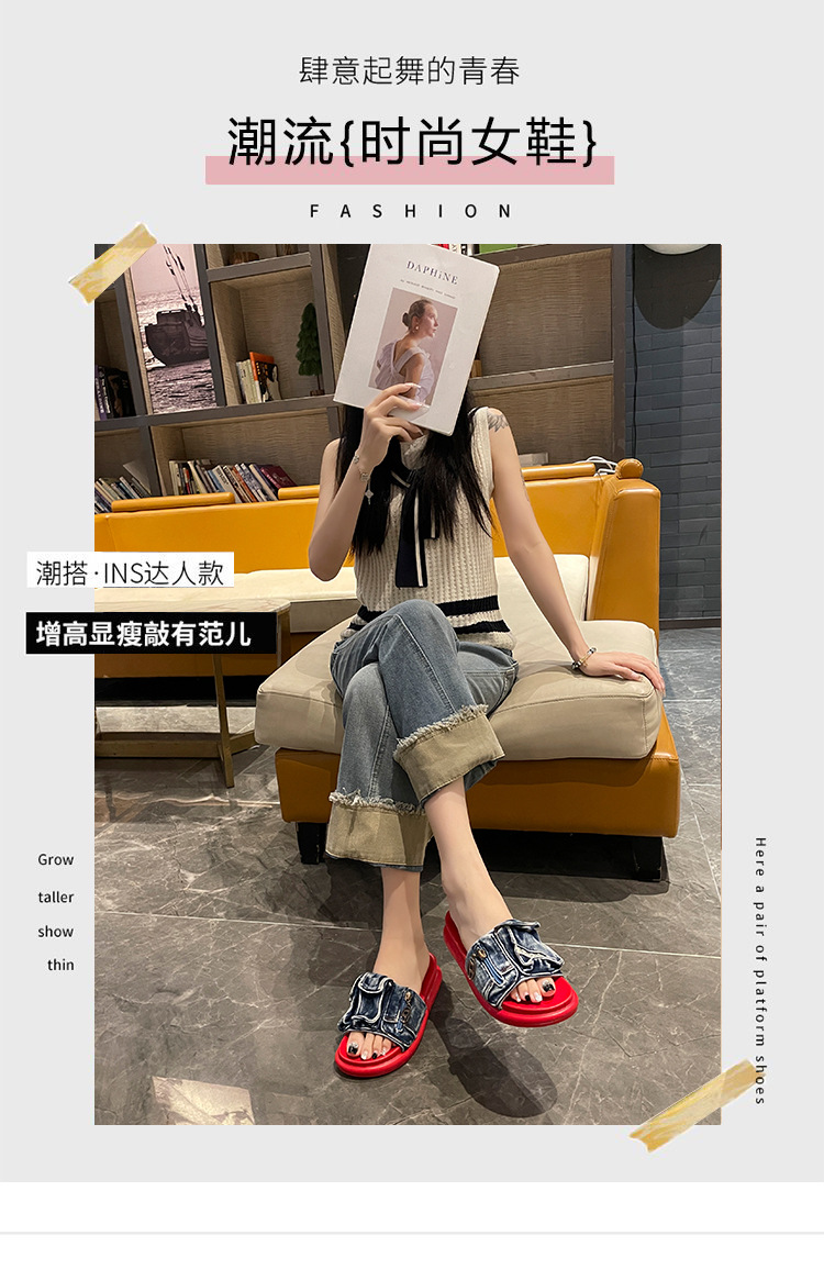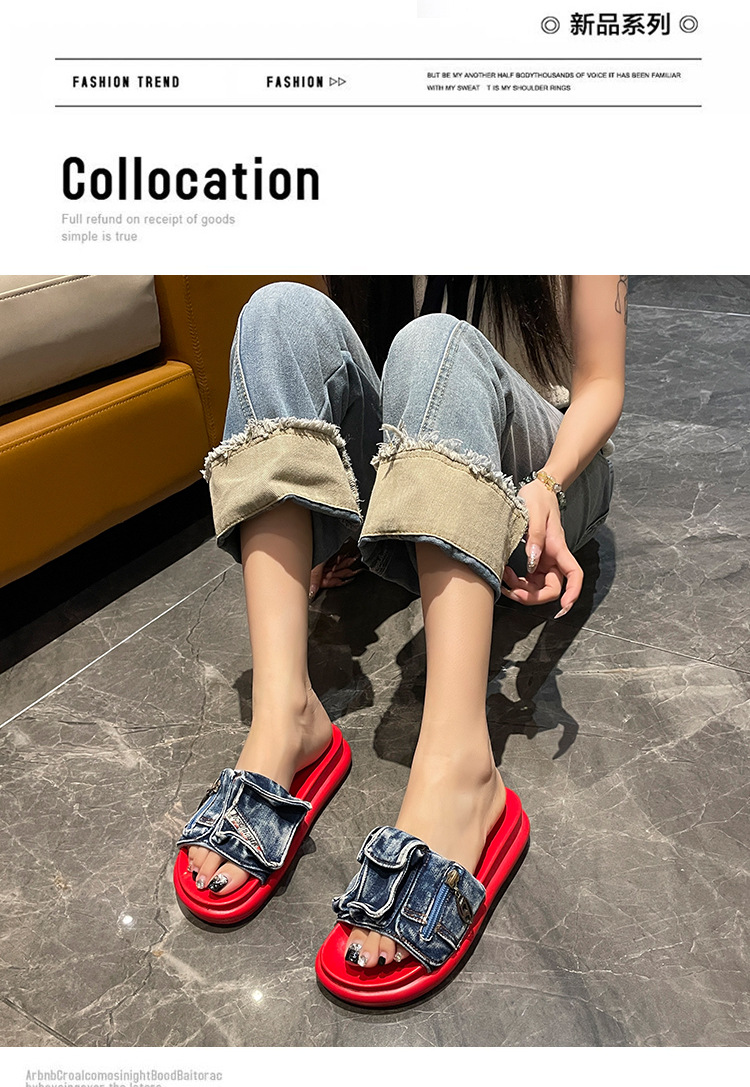 여성용 두꺼운 밑창 샌들 2025 새로운 여름 겉옷 플랫 밑창 슬리퍼 캐주얼 맞춤형 데님 작은 신발스토어 가기