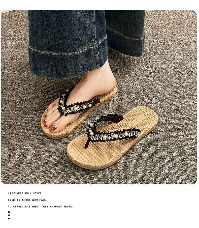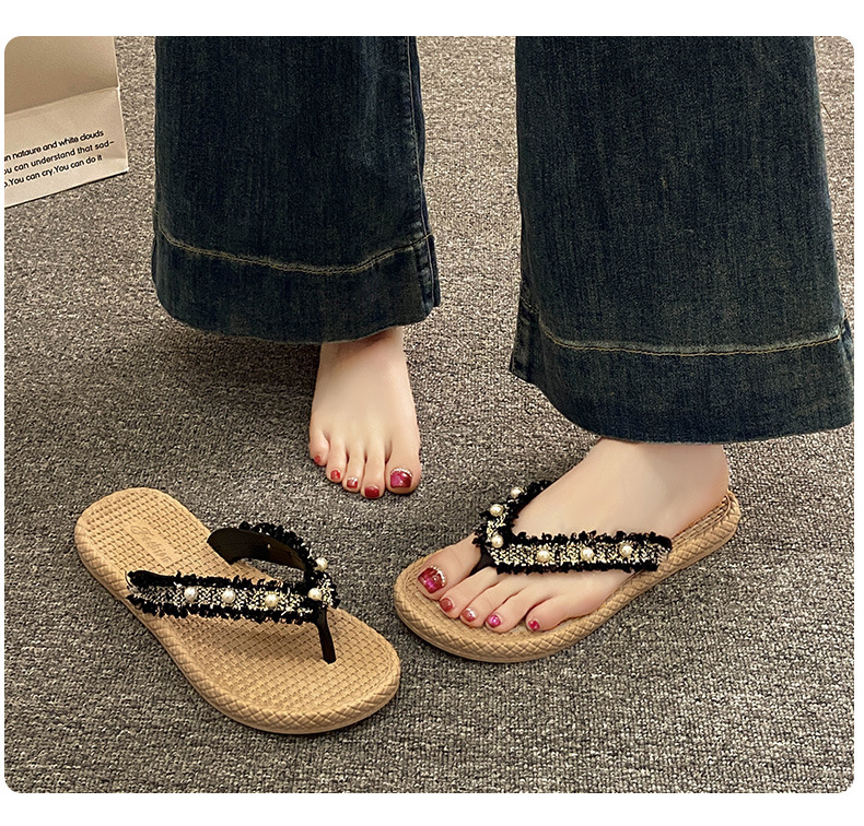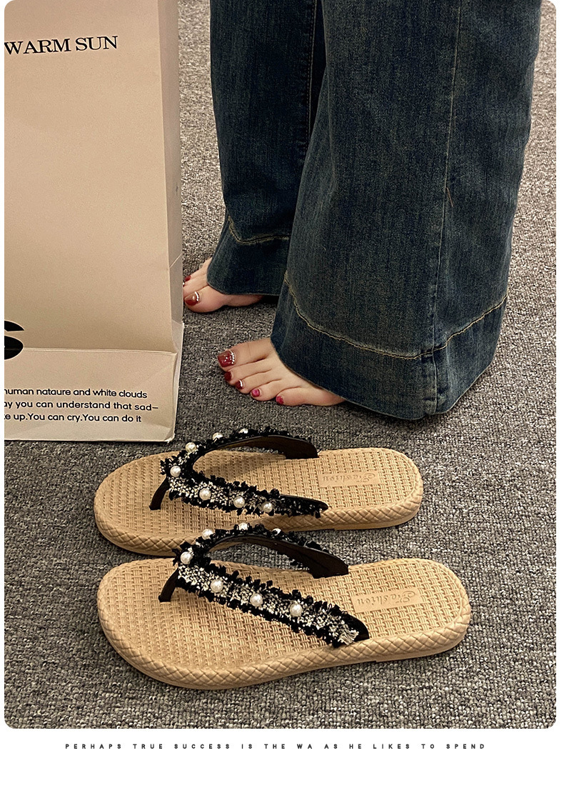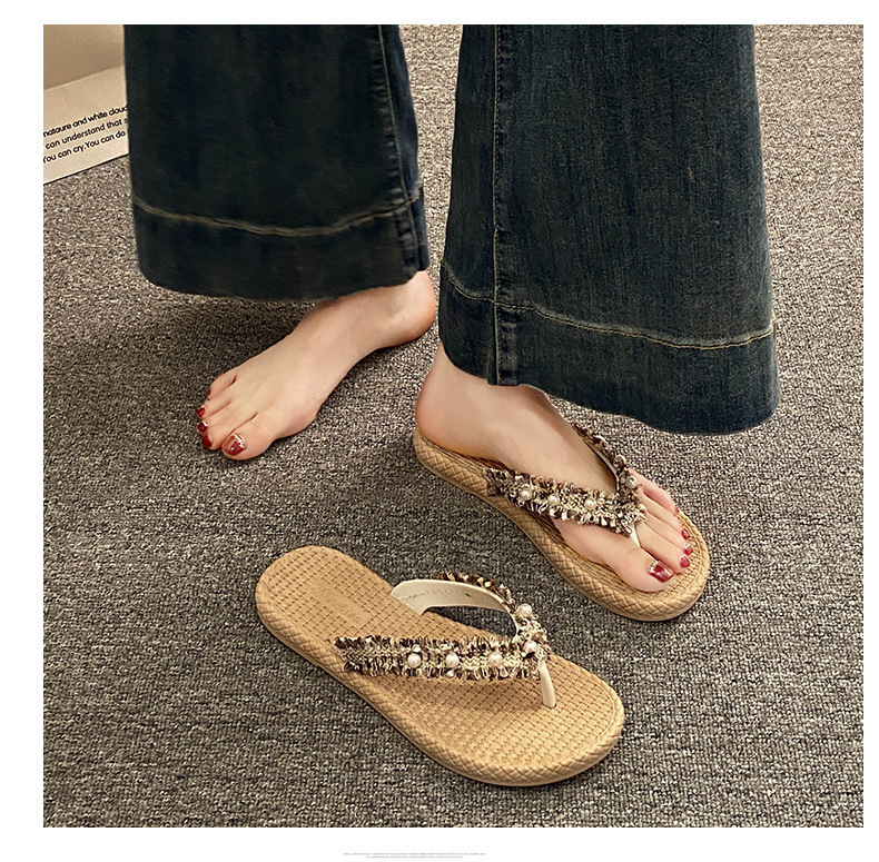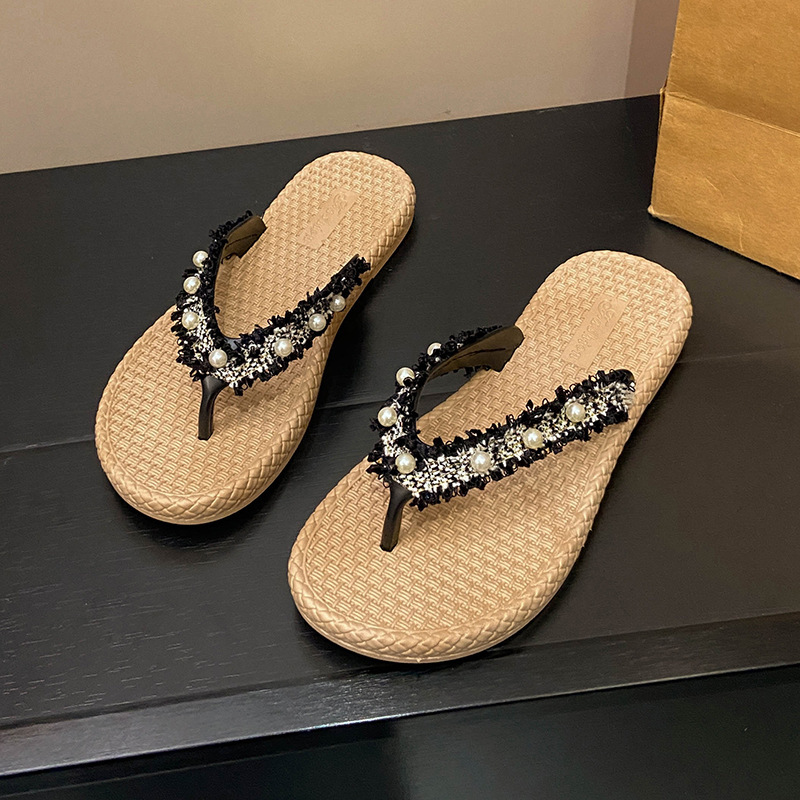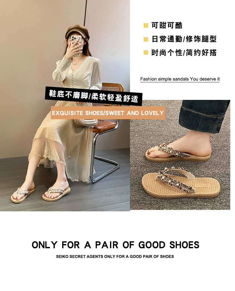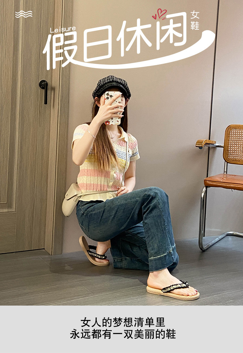 여름 새 스타일 소녀 캐주얼 플립 플롭 플랫 힐 플립 플롭 여성 패션 겉옷 비치 샌들 도매스토어 가기