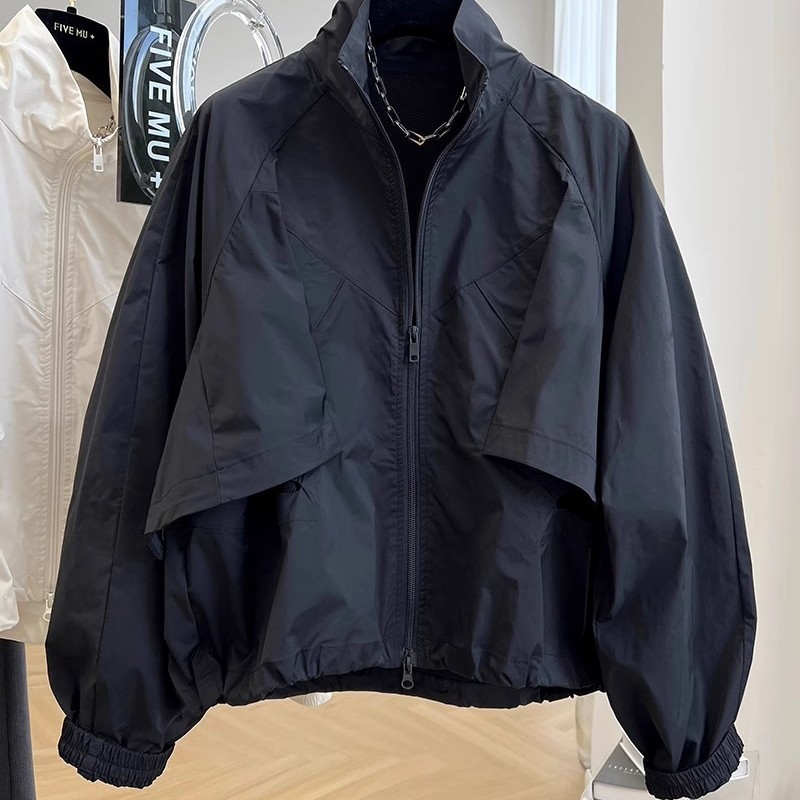 봄, 가을 여성용 디자인 틈새 하이 엔드 독특하고 시크한 스탠드 업 칼라 짧은 캐주얼 재킷 얇은 재킷