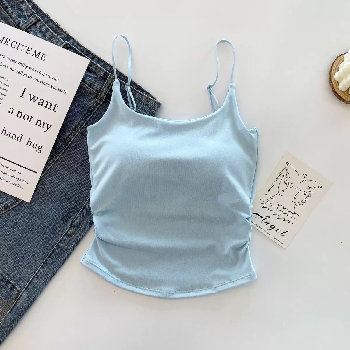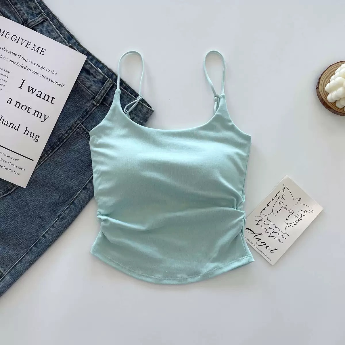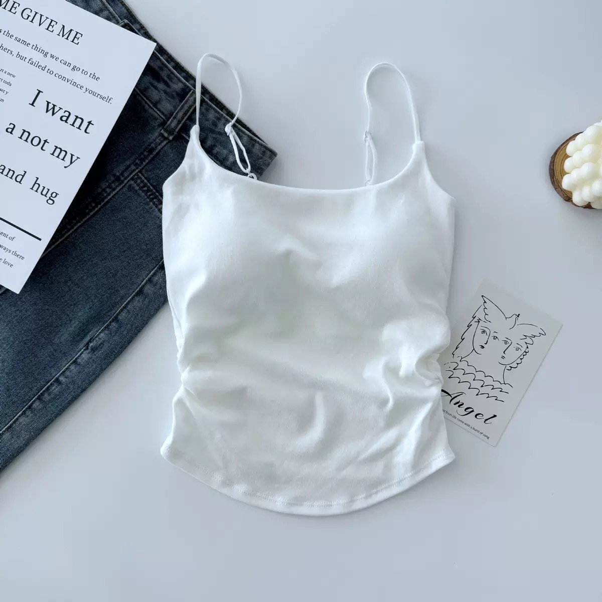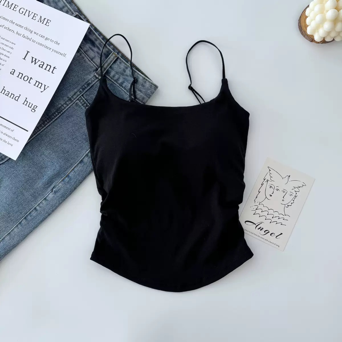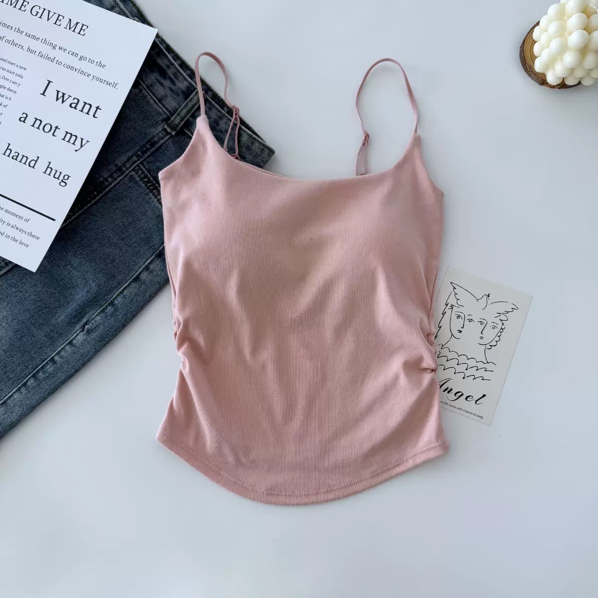여성을 위한 가슴 패드가 있는 순수한 섹시 스타일의 달콤하고 매콤한 디자인 주름 캐미솔, 여성용 올인원 컵 이너웨어 및 아우터웨어, 아름다운 백탑스토어 가기