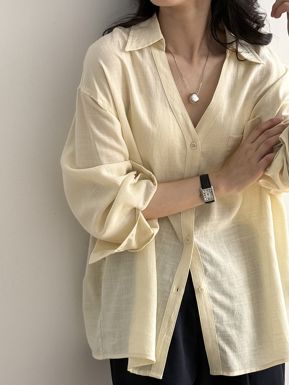 여름 여성을 위한 텐셀 린넨 긴팔 솔리드 컬러 셔츠 새로운 디자인, 캐주얼하고 다재다능한 자외선 차단 카디건 탑