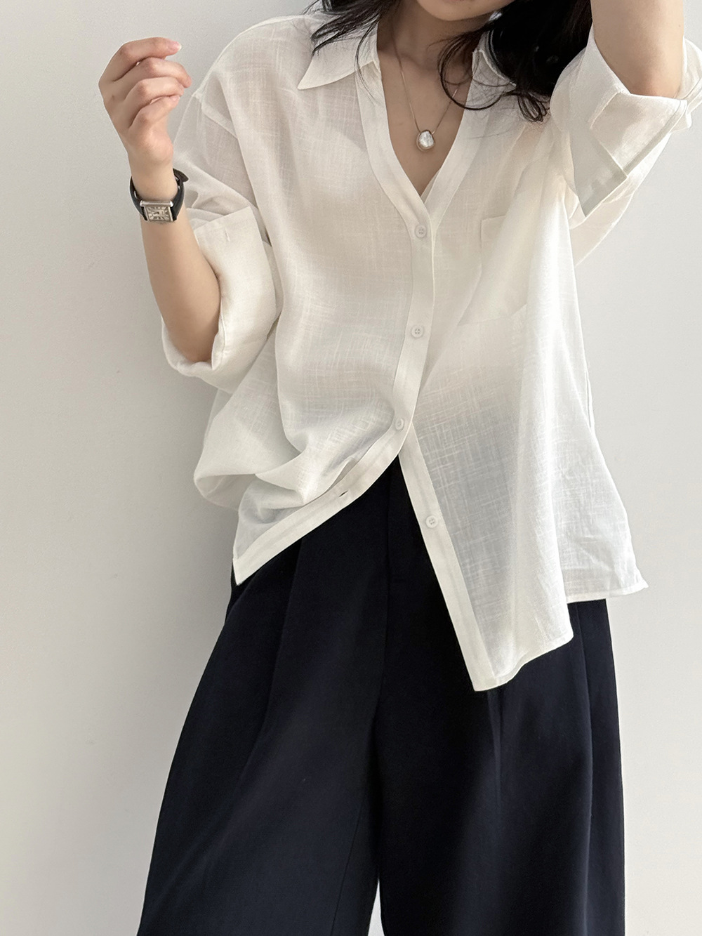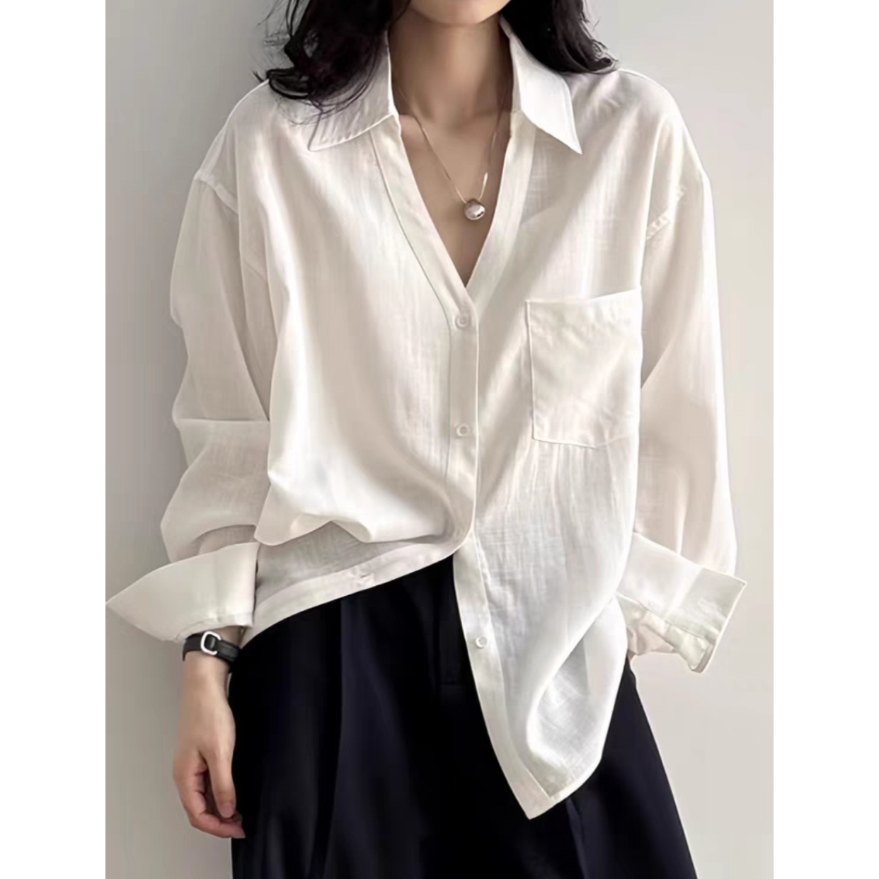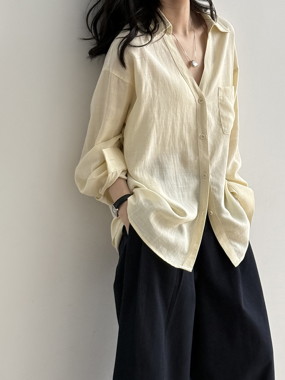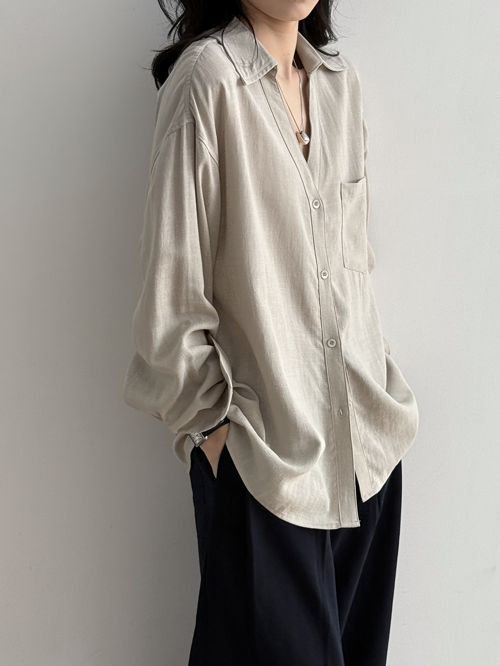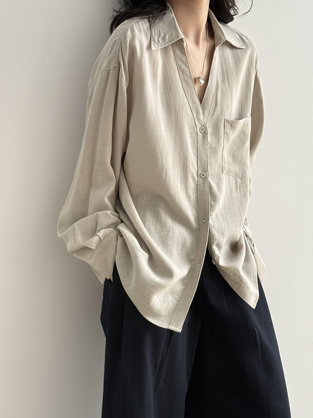 여름 여성을 위한 텐셀 린넨 긴팔 솔리드 컬러 셔츠 새로운 디자인, 캐주얼하고 다재다능한 자외선 차단 카디건 탑스토어 가기