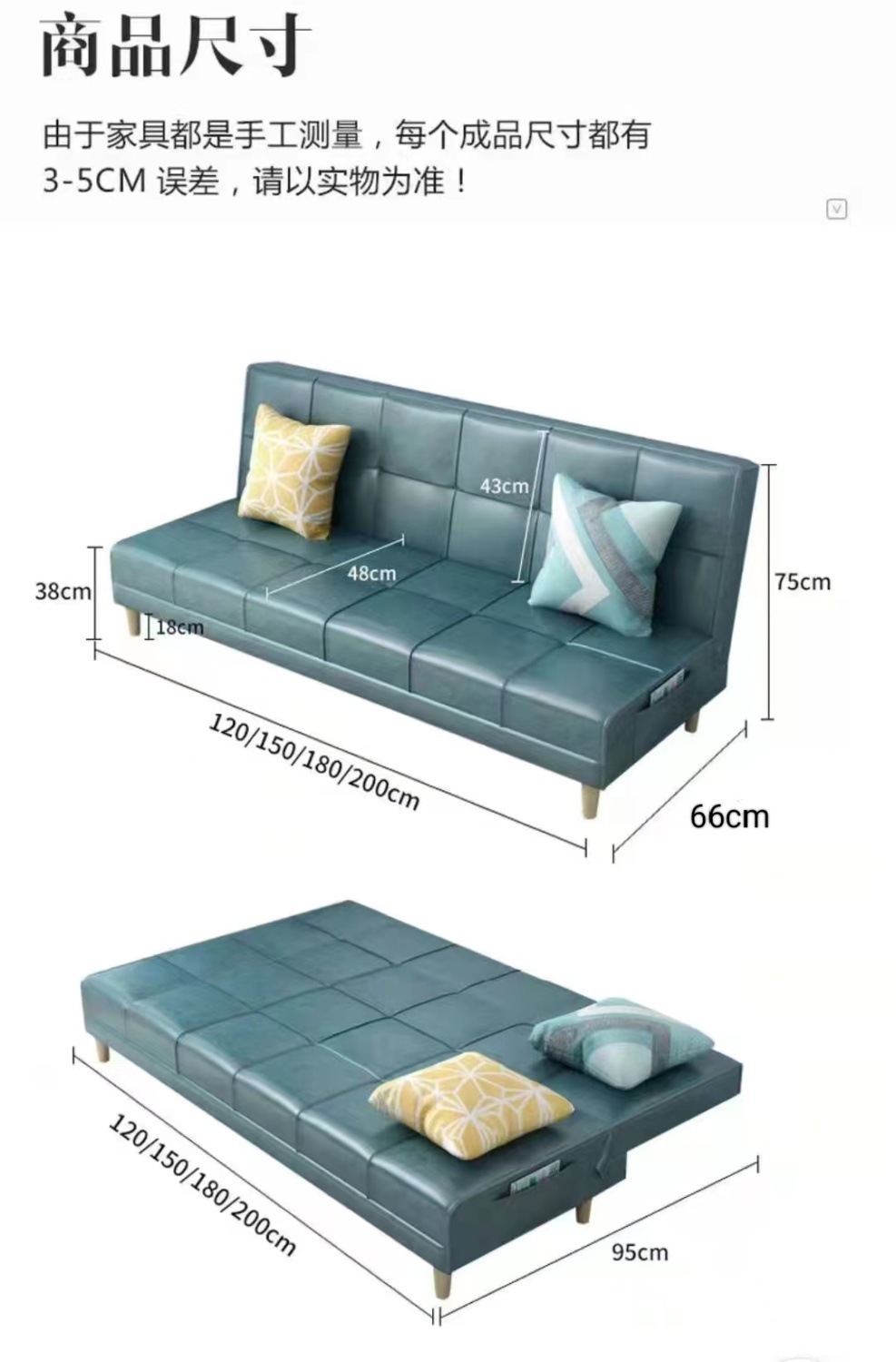 • 3인용 전체 길이 1.5m (베개 제외)