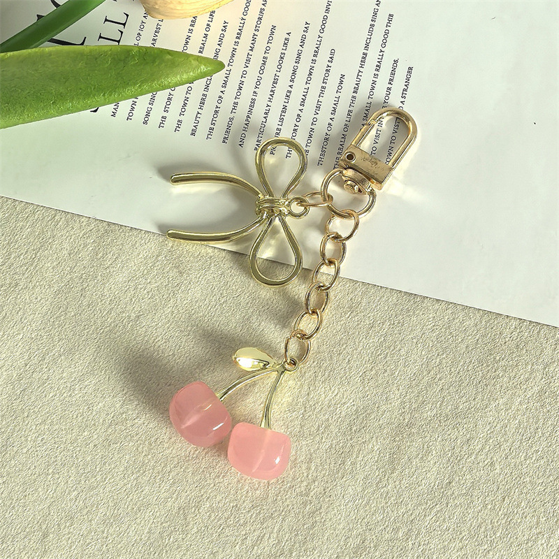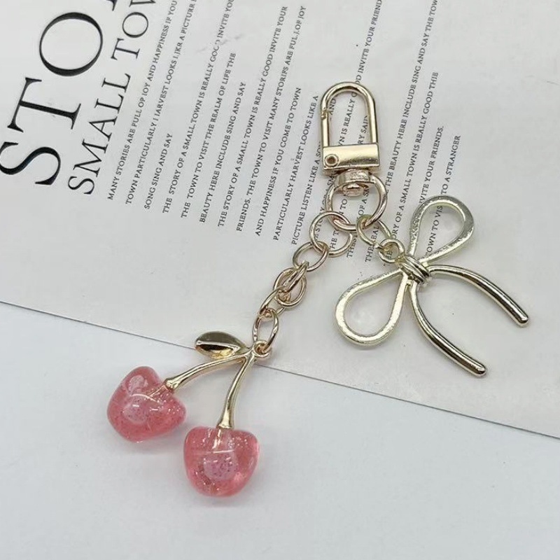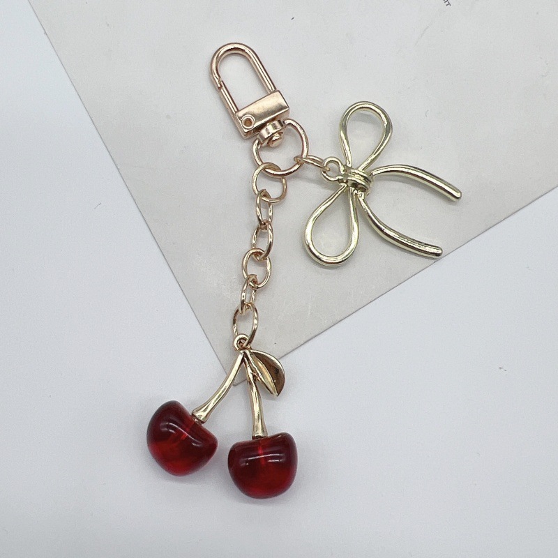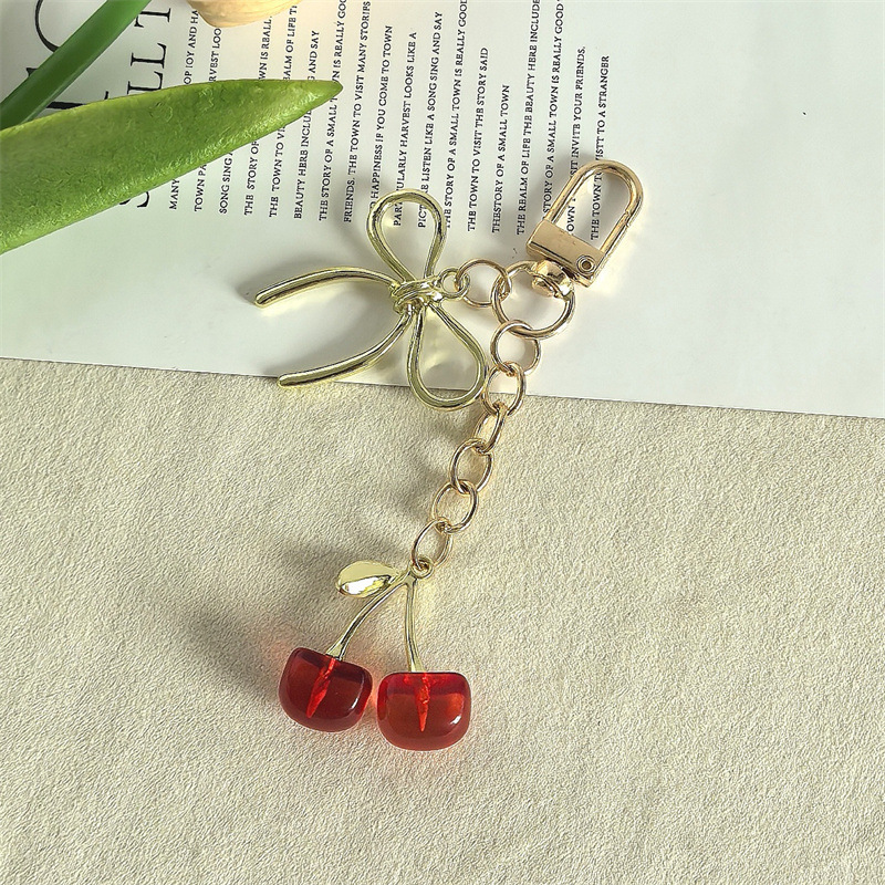 국경을 넘는 반짝이는 시뮬레이션 체리 열쇠 고리, 귀엽고 절묘한 입체 과일 체리 가방 열쇠 고리 작은 펜던트
