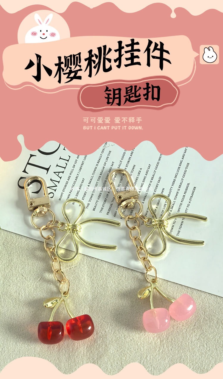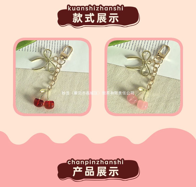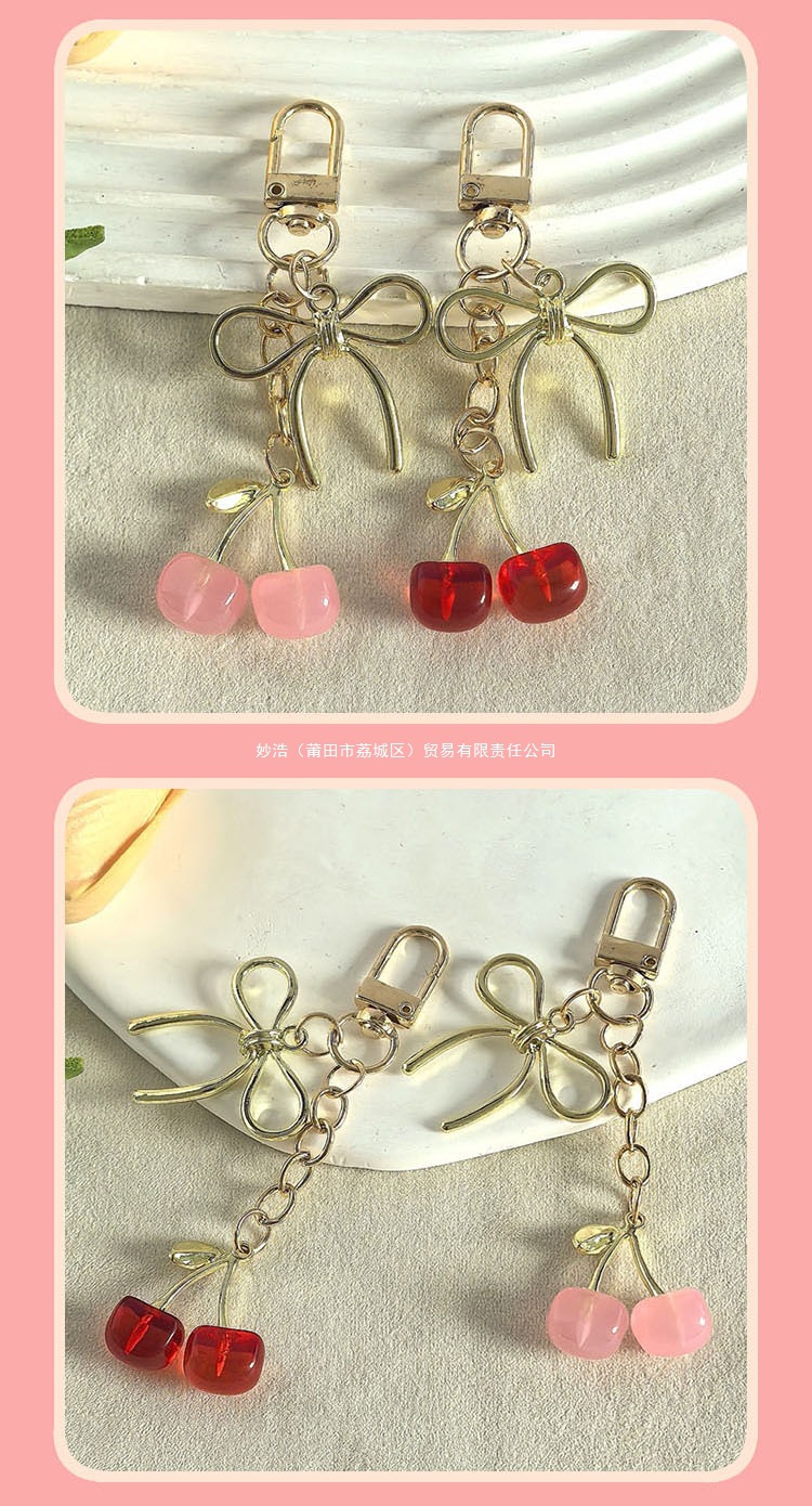 국경을 넘는 반짝이는 시뮬레이션 체리 열쇠 고리, 귀엽고 절묘한 입체 과일 체리 가방 열쇠 고리 작은 펜던트스토어 가기