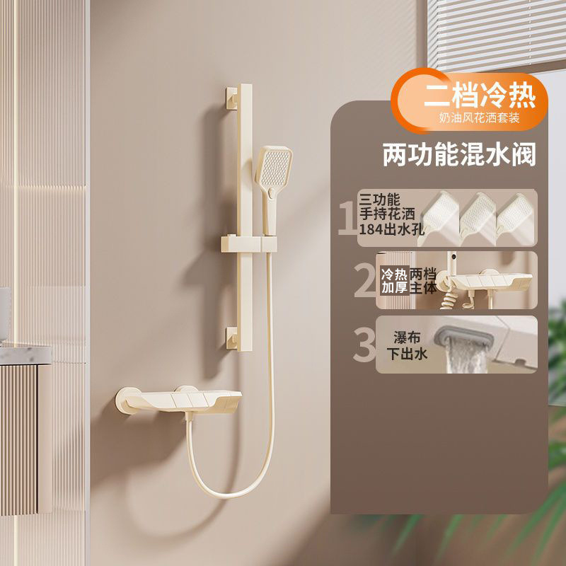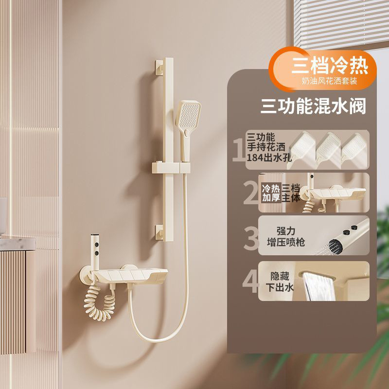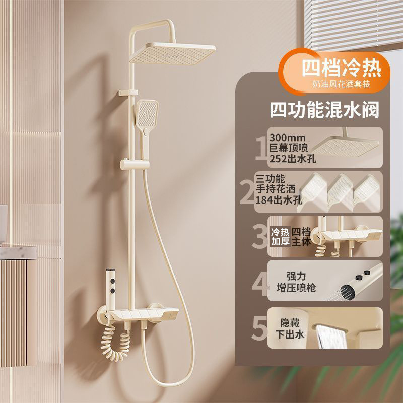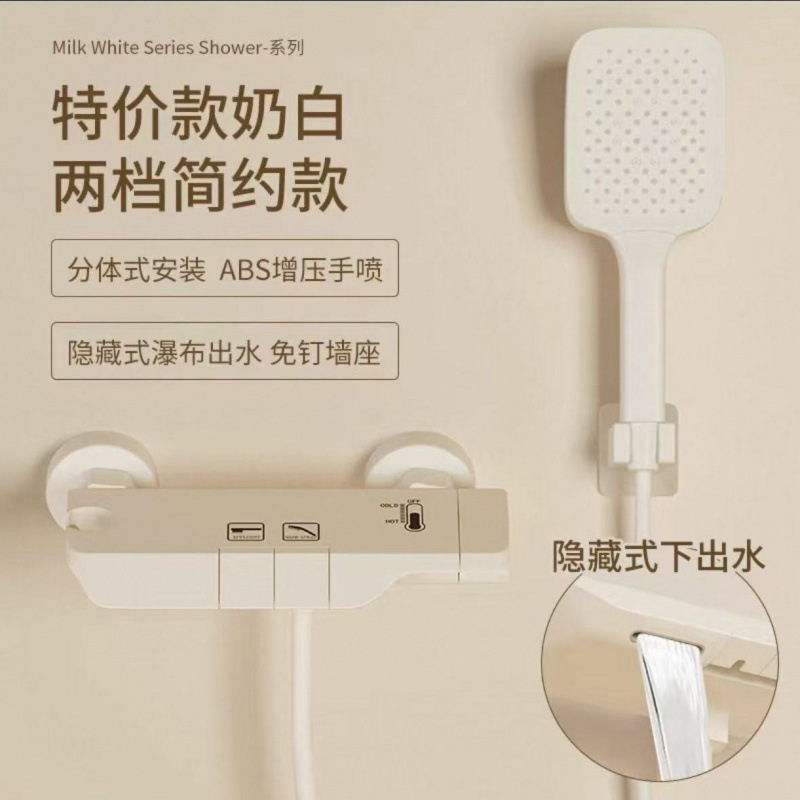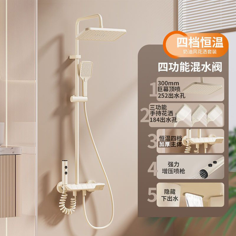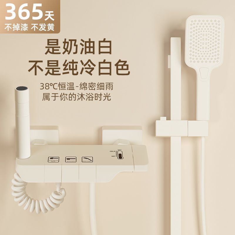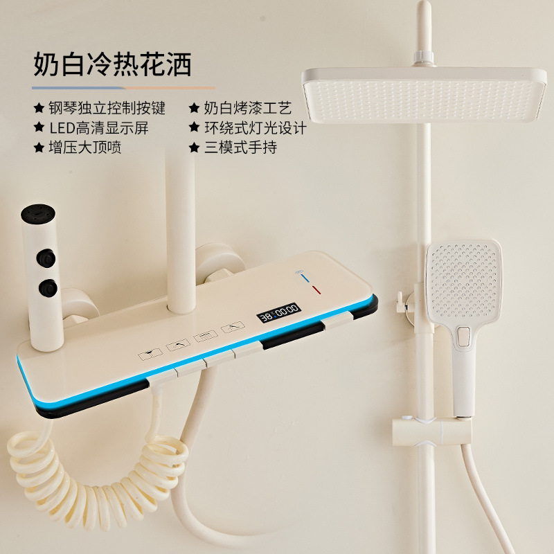 가정용 욕실 욕실 소형 샤워기용 밀키 화이트 샤워 세트, 항온 디지털 디스플레이, 가압 노즐 조절 가능