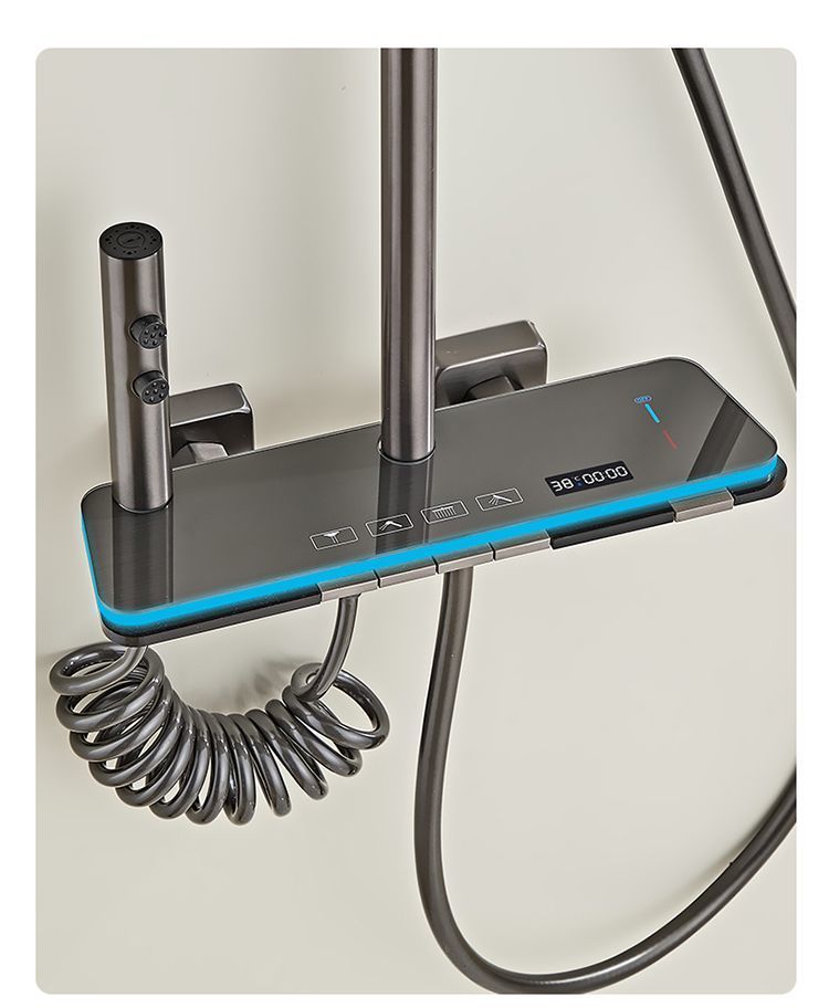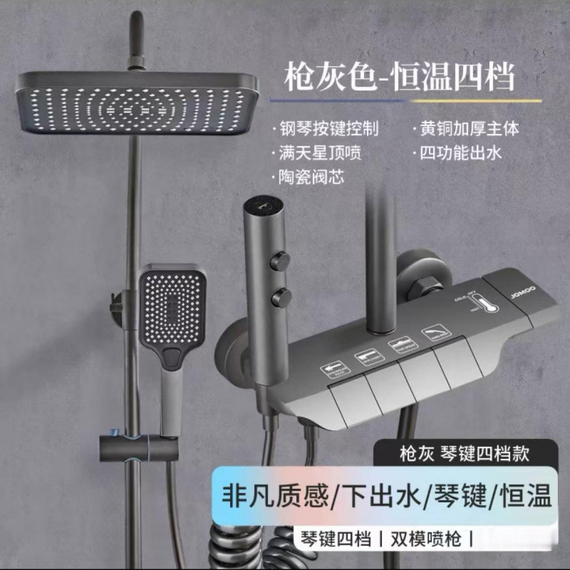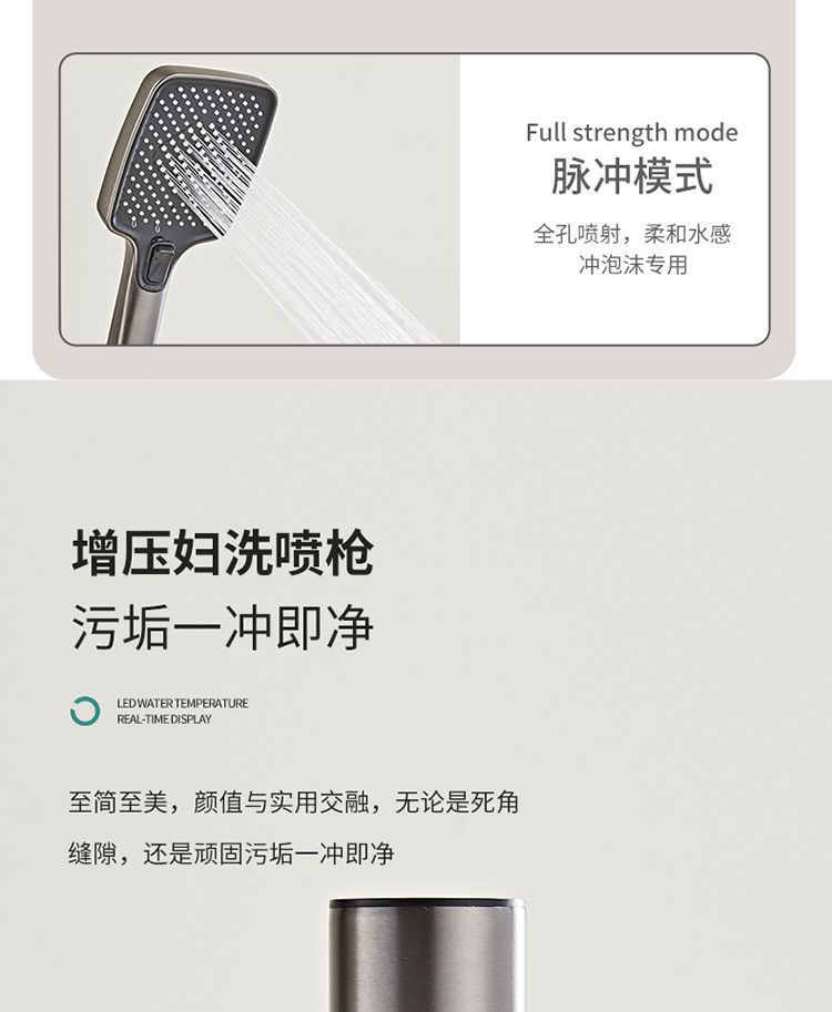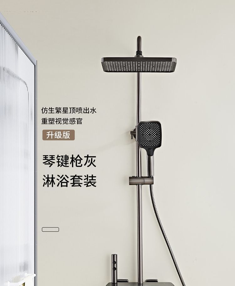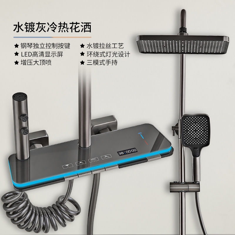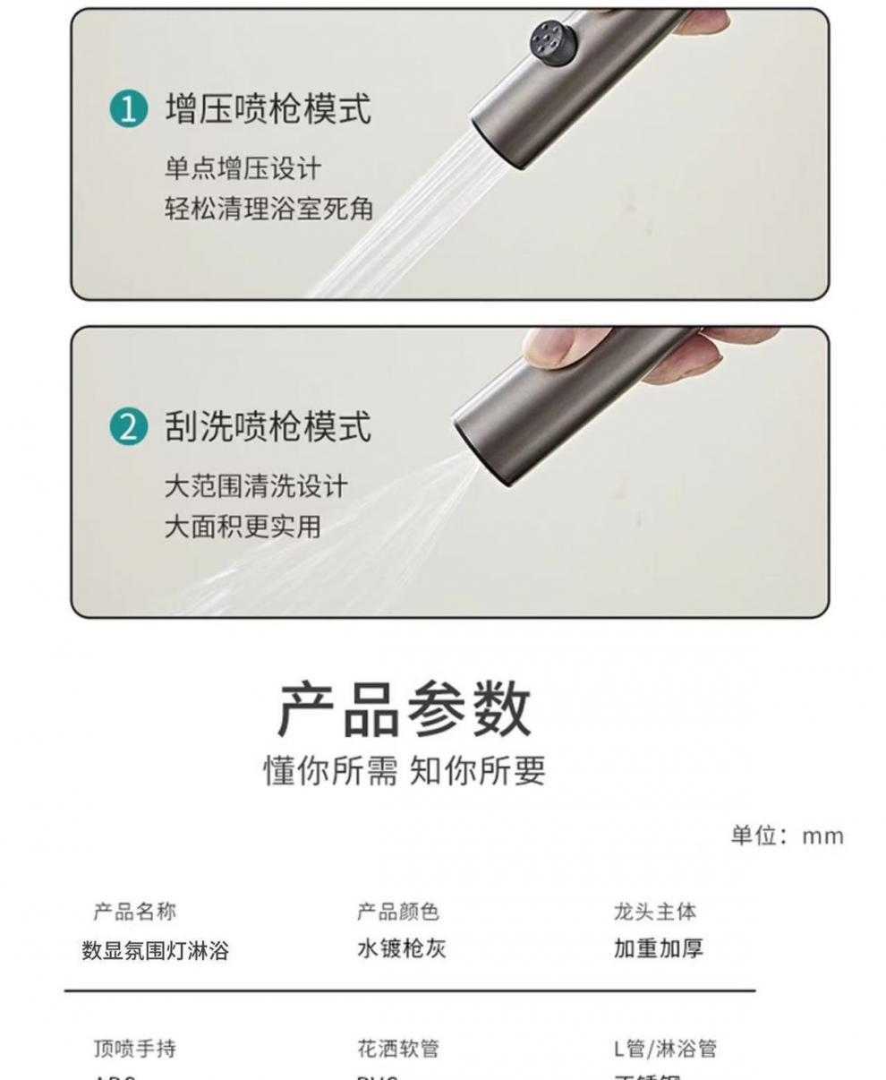 가정용 욕실 욕실 소형 샤워기용 밀키 화이트 샤워 세트, 항온 디지털 디스플레이, 가압 노즐 조절 가능