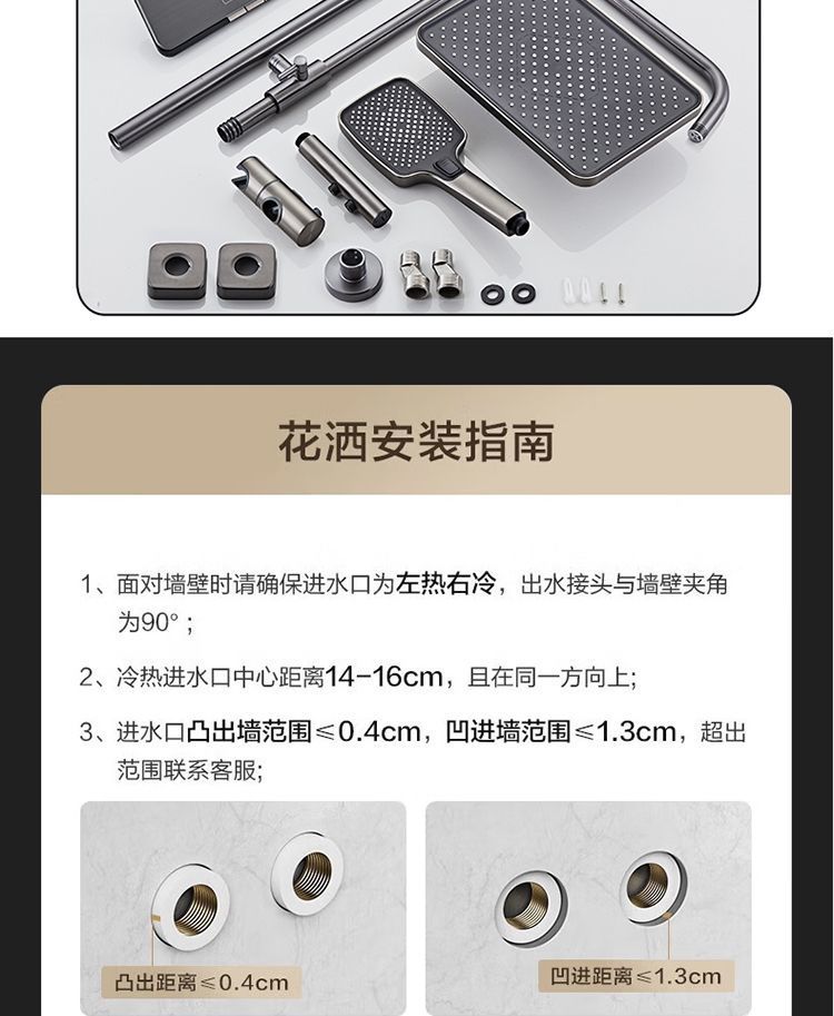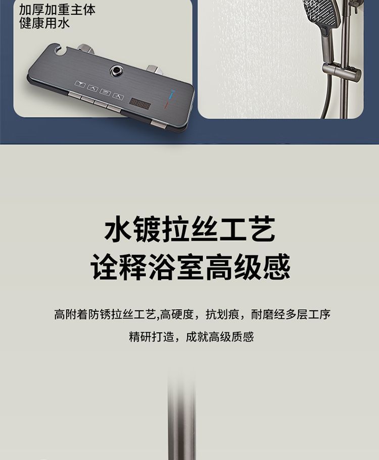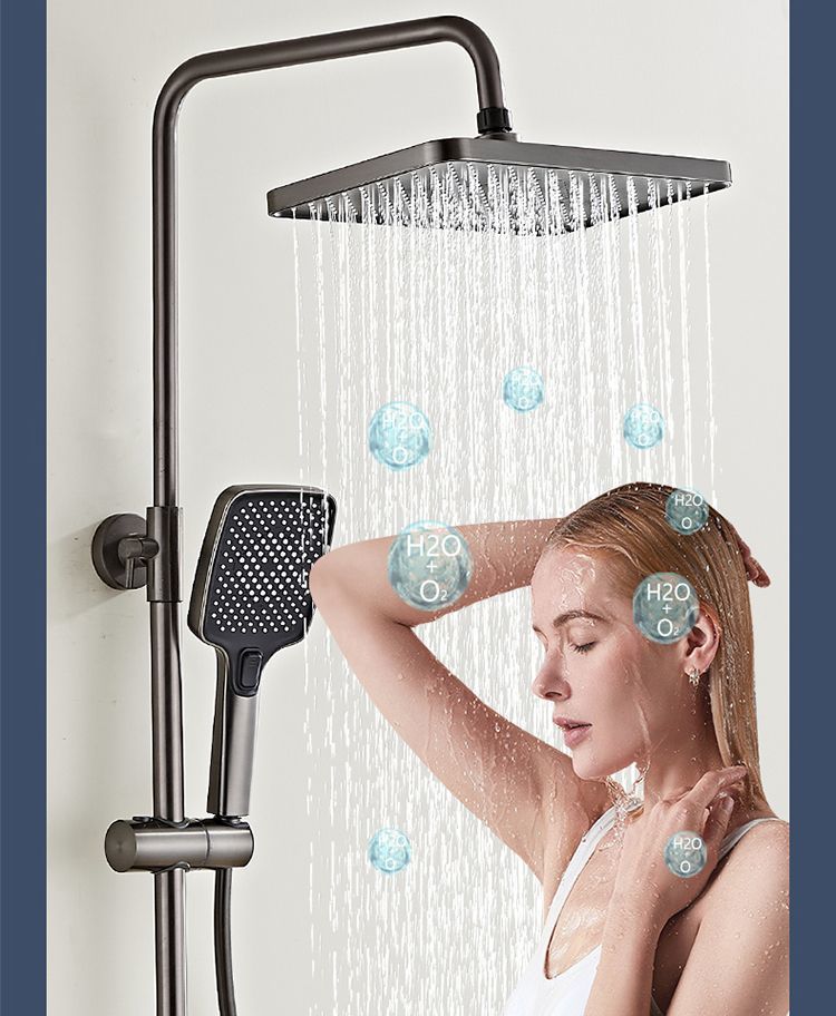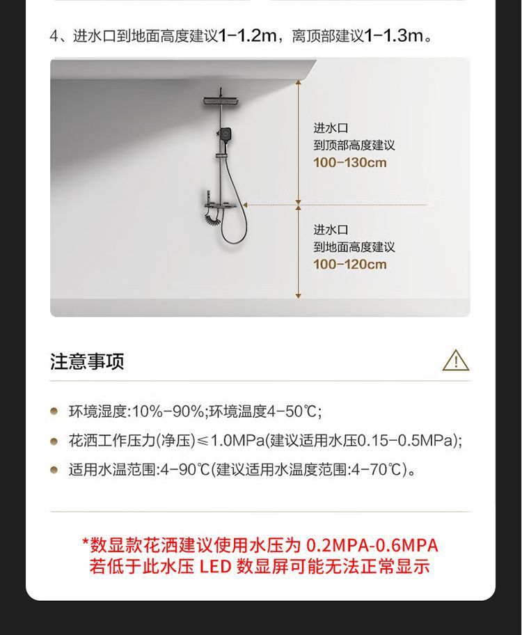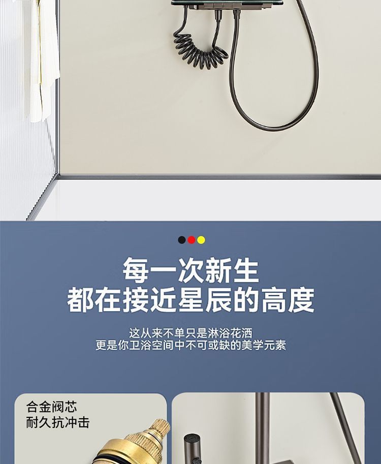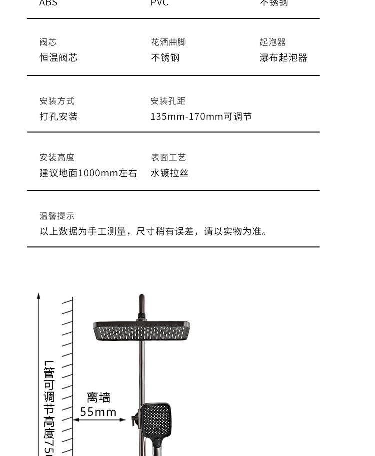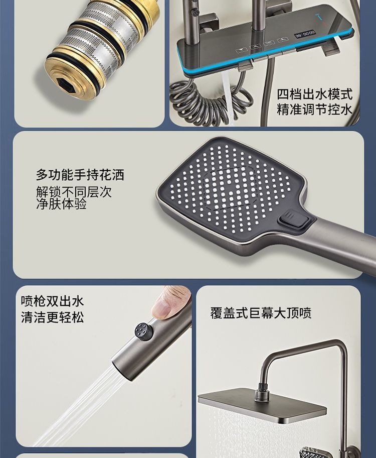 가정용 욕실 욕실 소형 샤워기용 밀키 화이트 샤워 세트, 항온 디지털 디스플레이, 가압 노즐 조절 가능