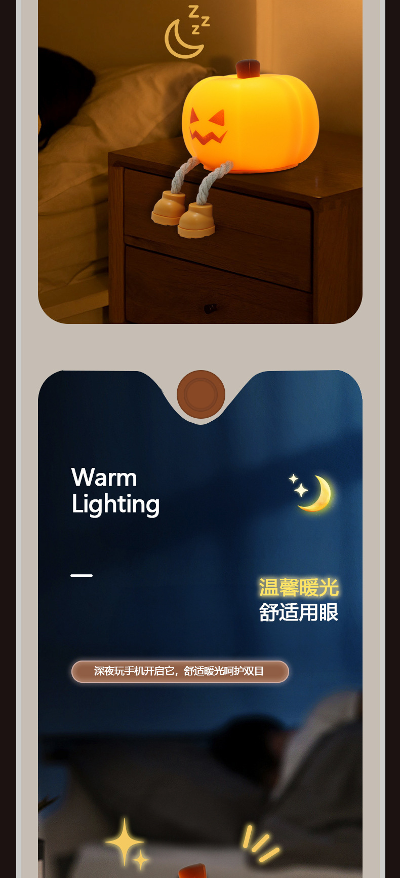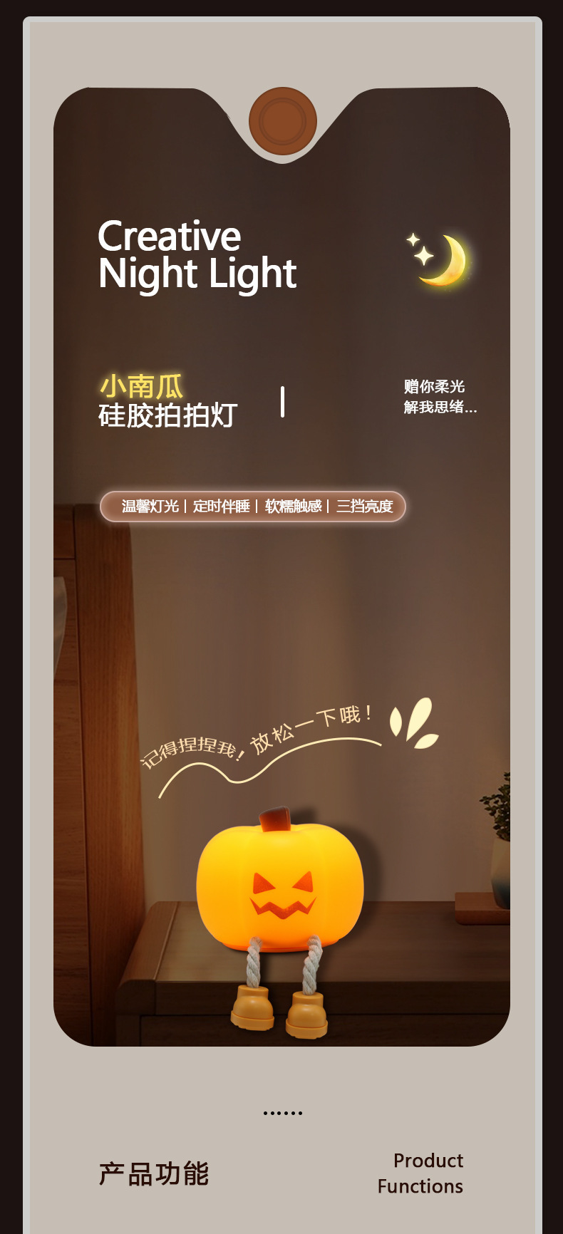 국경 간 작은 호박 팻 램프 실리콘 야간 조명 어린이와 소녀를위한 고급 분위기 조명 선물 눈 보호 작은 테이블 램프스토어 가기