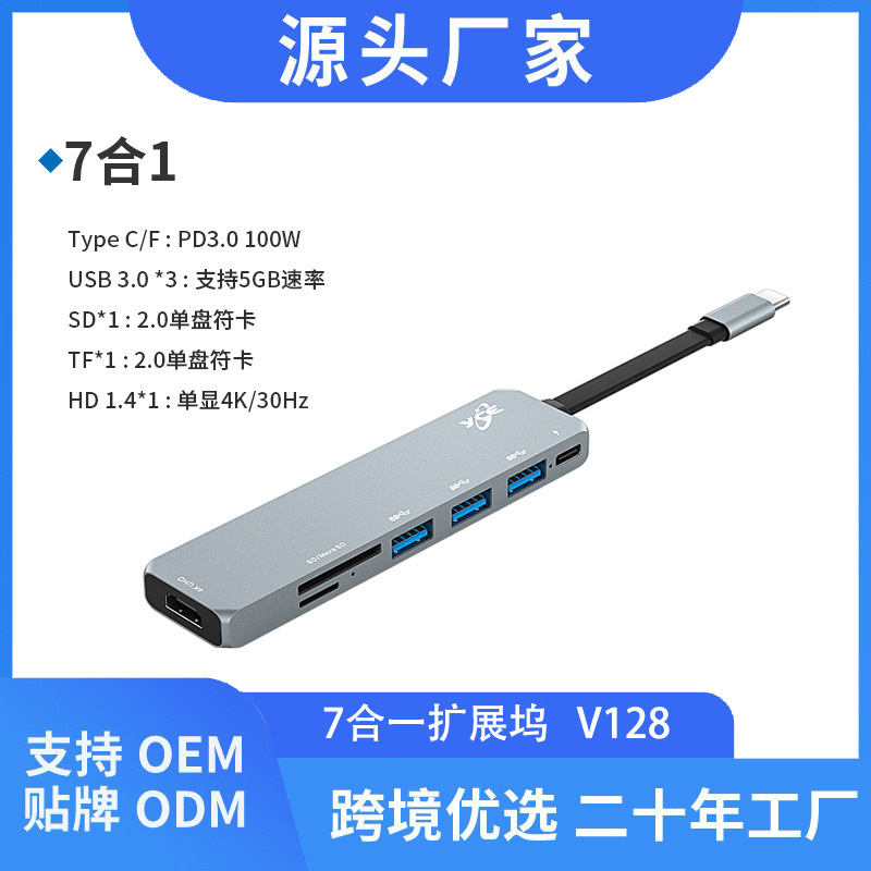 Typec 노트북 USB 확장기 플러그 멀티 인터페이스 네트워크 케이블 변환기 어댑터 7-in-one 도킹 스테이션스토어 가기