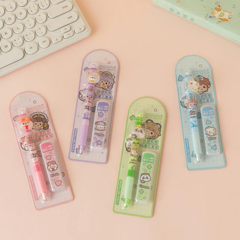 Jiandan 면 인형 자동 연필 세트, 고급스럽고 귀여운 만화 학생 쓰기 활동, 깎지 않은 연필스토어 가기