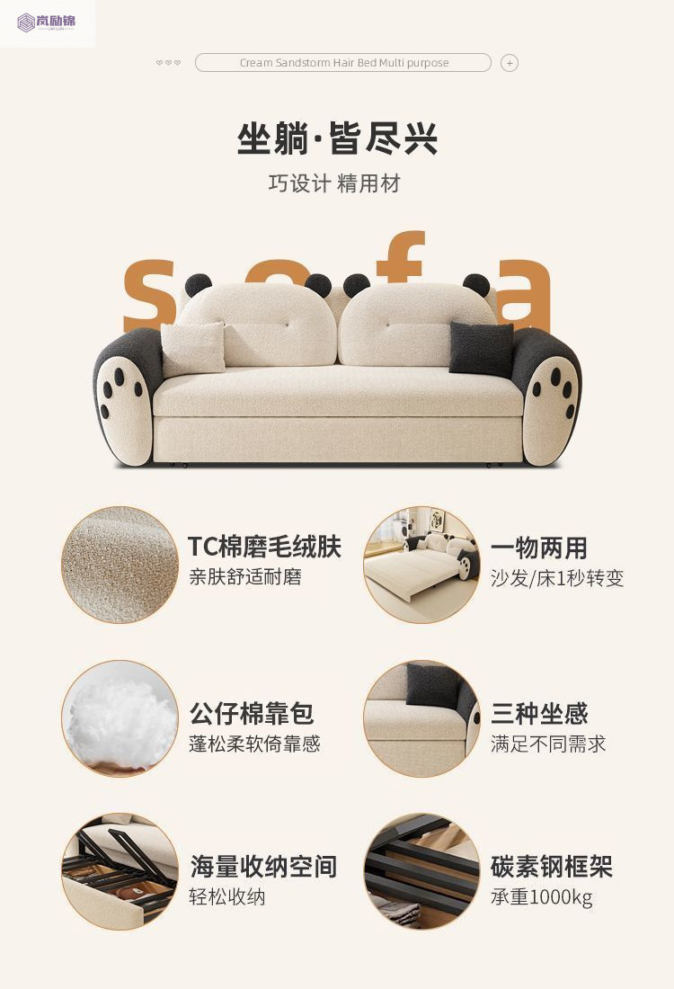 소파 베드 이중 목적 귀여운 크림 스타일 작은 거실 다기능 양털 더블 직선형 새 소파스토어 가기