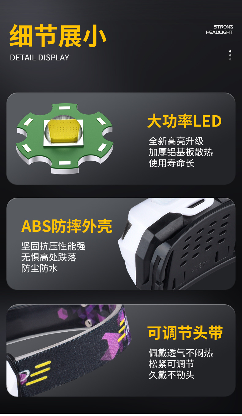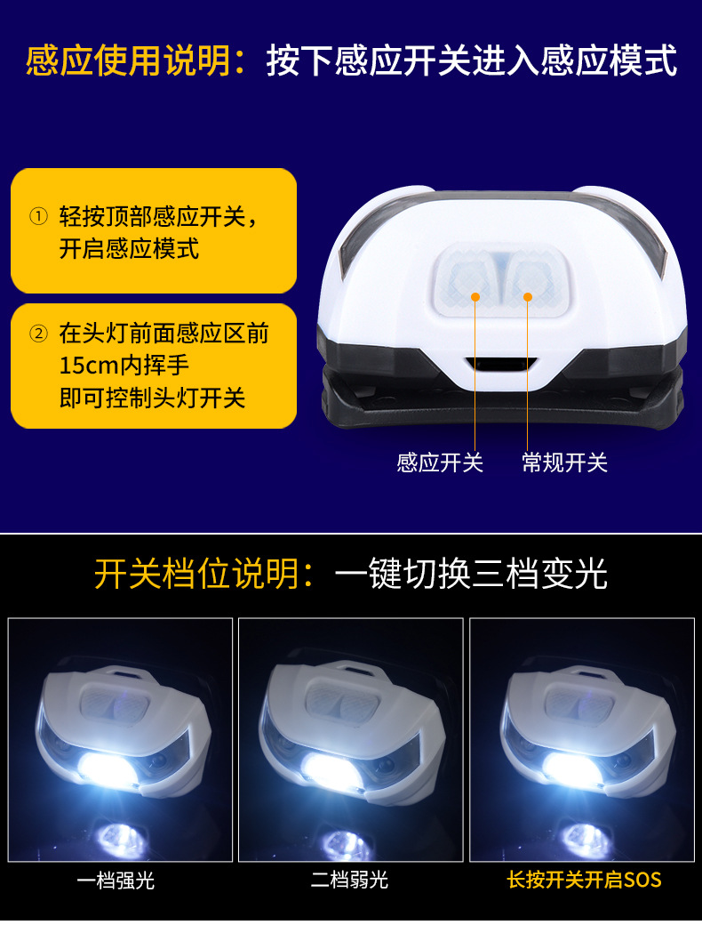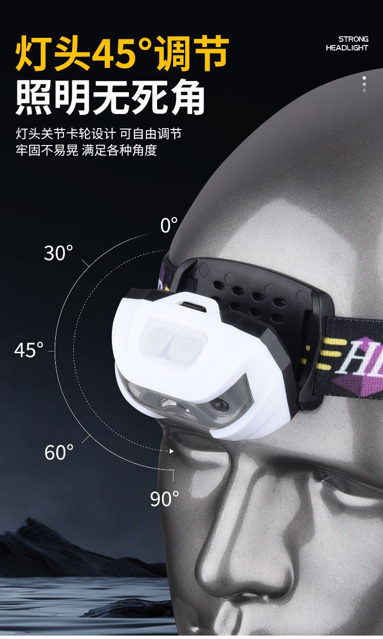 국경 간 올빼미 헤드 라이트 LED 강한 빛 유도 헤드 라이트 충전식 헤드 장착형 야생 낚시 특수 초장기 배터리 수명