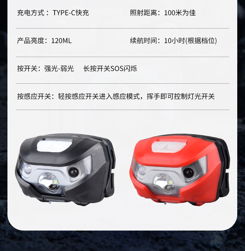 • 적색 유도 모델, 1200mAh, 강한 빛, 10시간 이상의 긴 배터리 수명, 5와트
