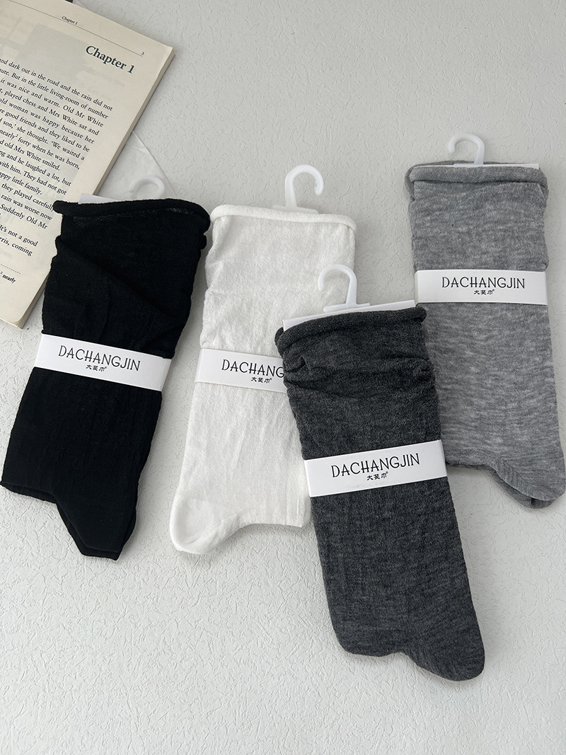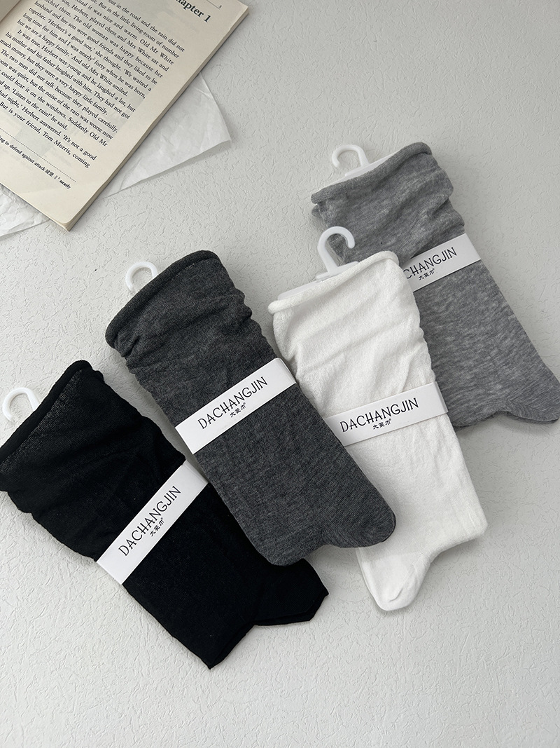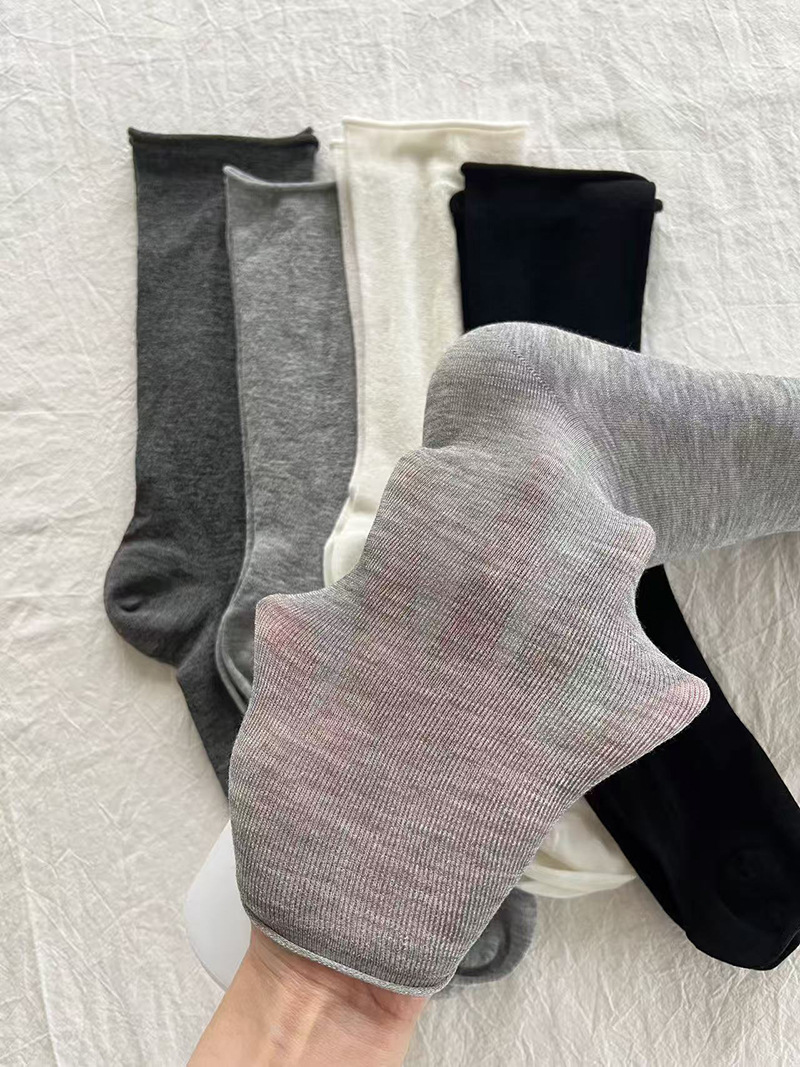 SD2508 여성용 초박형 통기성 느슨한 양말 한국 양말 흑백 회색 단색 종아리 양말 뼈없는 양말