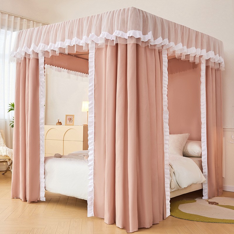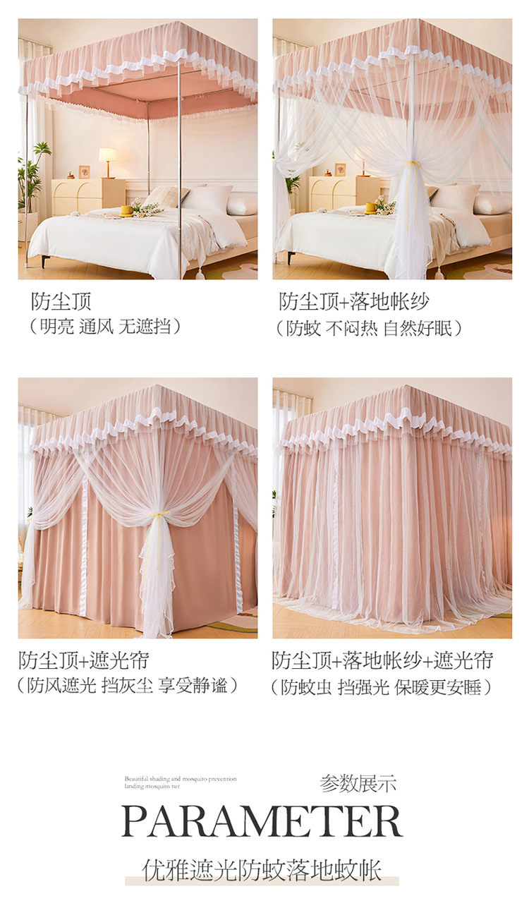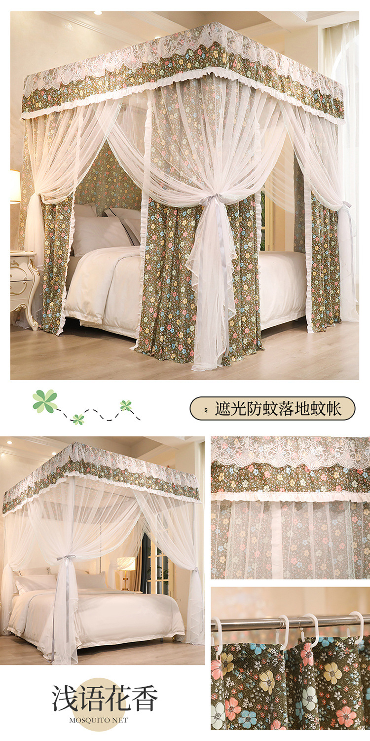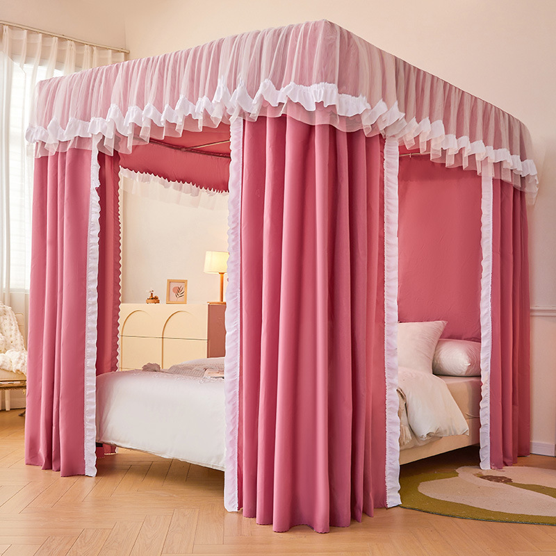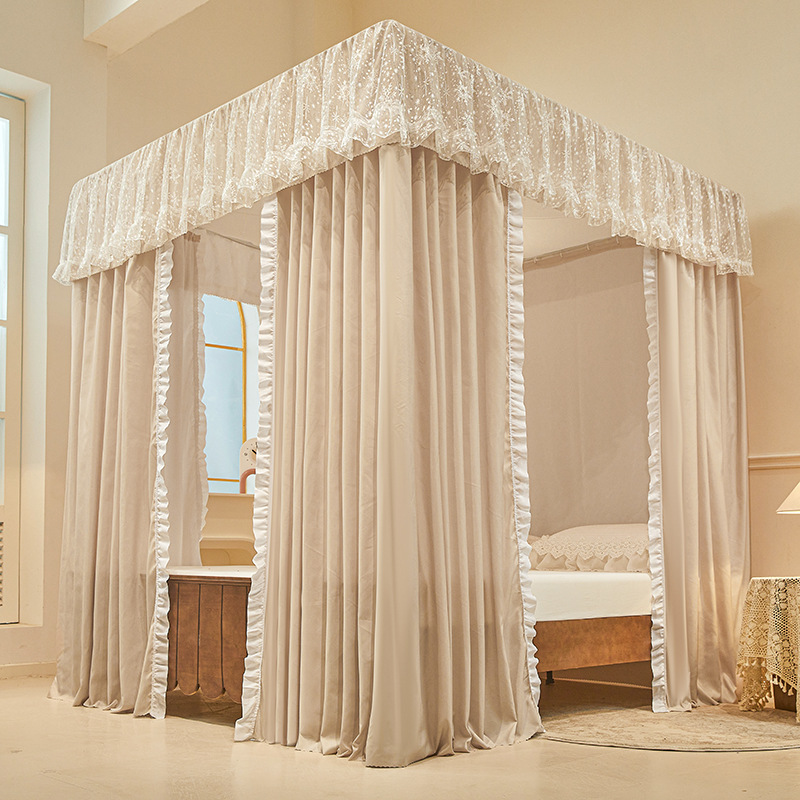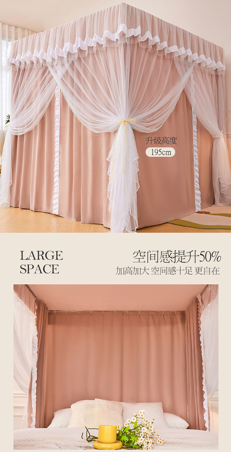 차광 궁전 모기장 침대 커튼 공주 스타일 밀폐형 일체형 방진 플로어 스탠딩 더블 침대 홈 공주스토어 가기